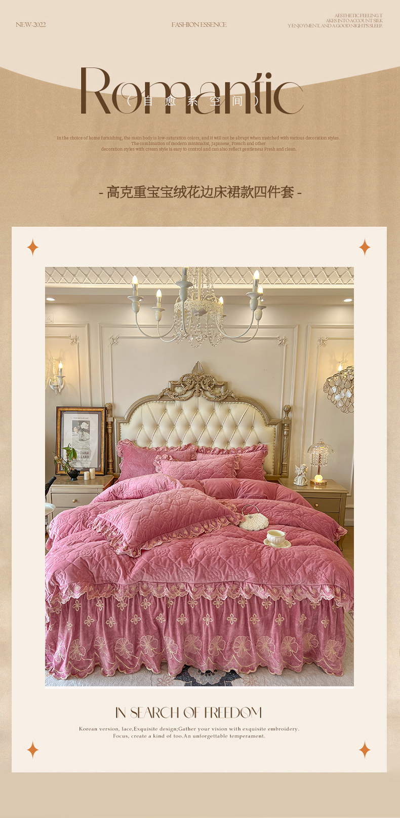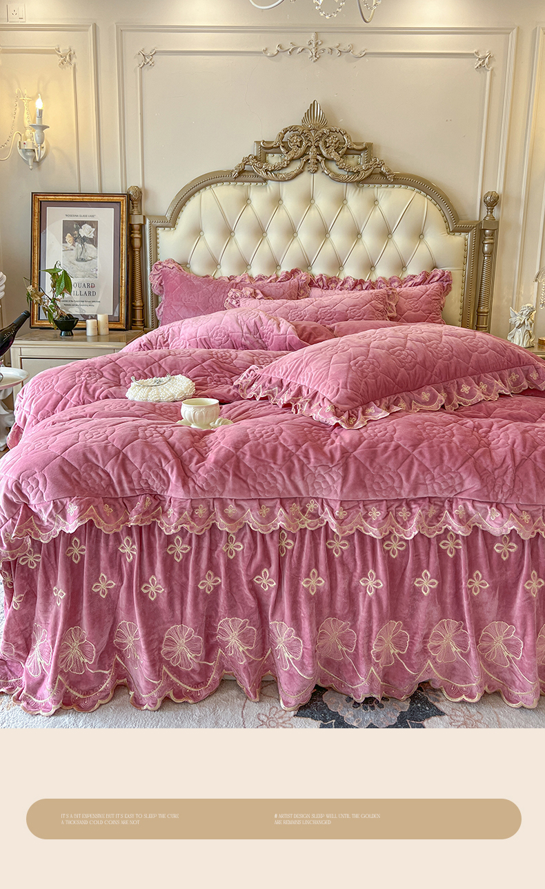 (总)网红馆(ck家纺) 2025新款亲肤舒适牛奶绒蕾丝边床裙四件套-秘密花园,秘密花园-粉色,秘密花园-卡其,秘密花园-米色,秘密花园-紫色