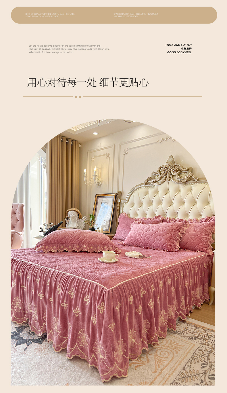 (总)网红馆(ck家纺) 2025新款高克重牛奶绒单床裙 床裙单件卡妮娜系列,卡妮娜-粉色,卡妮娜-灰色,卡妮娜-卡其,卡妮娜-绿色,卡妮娜-米色
