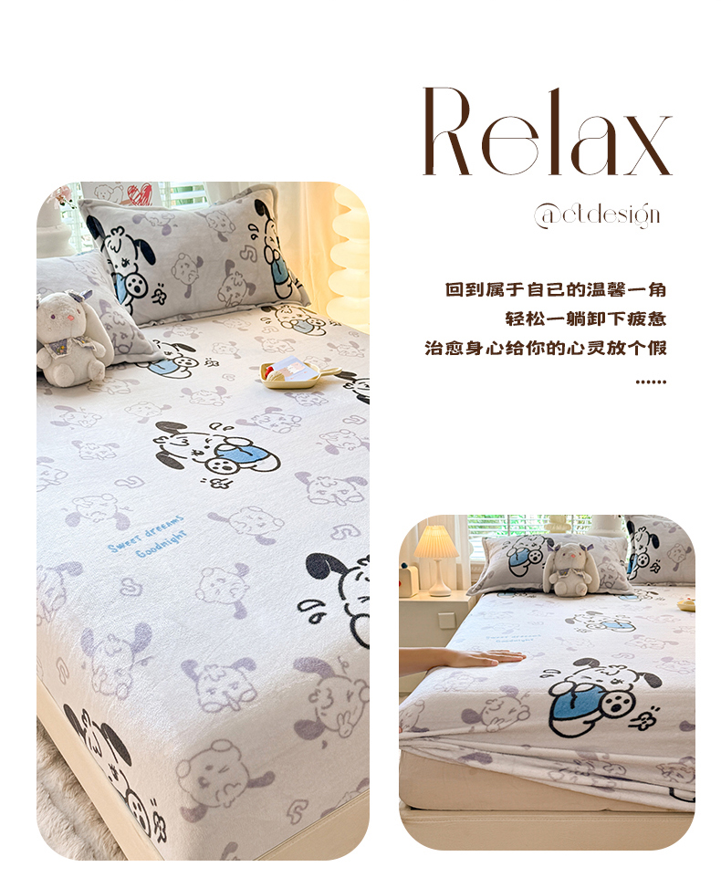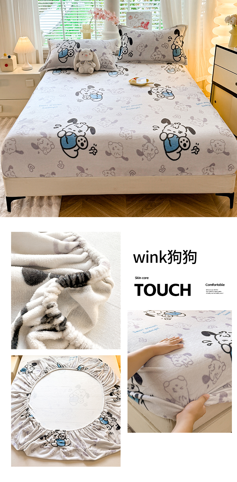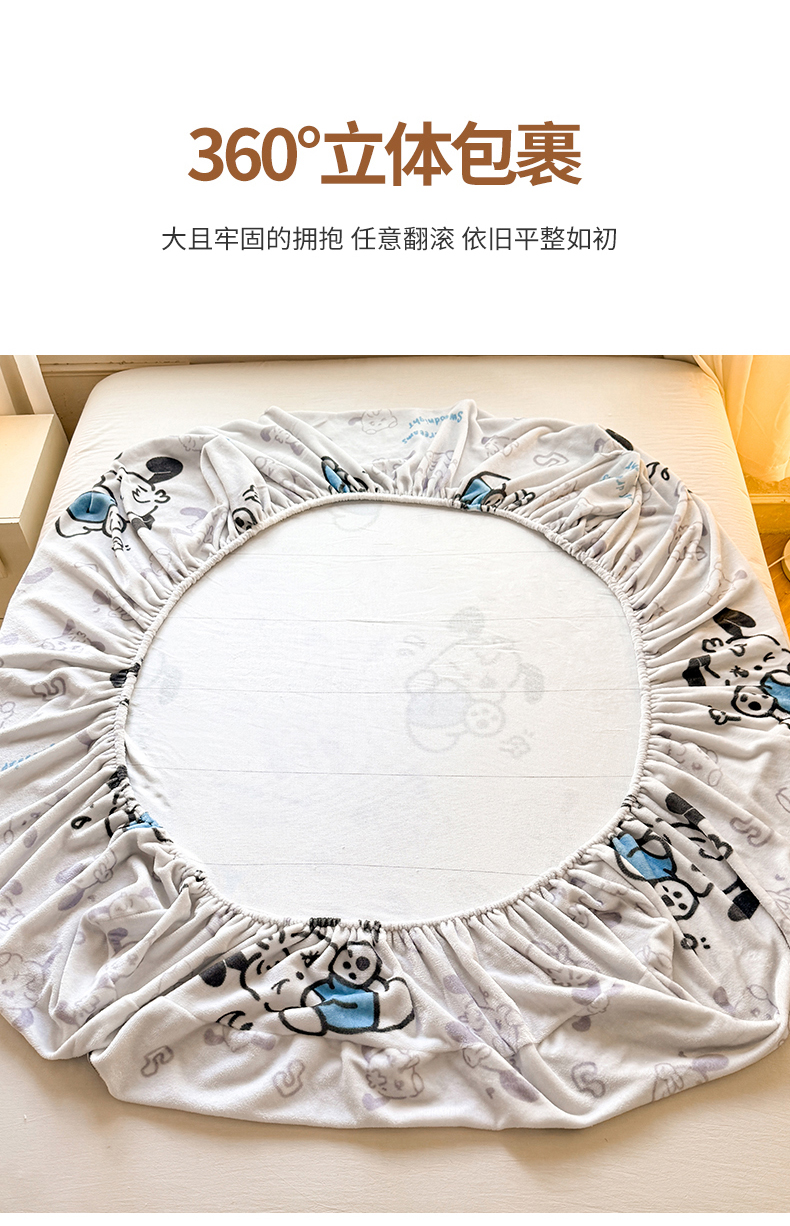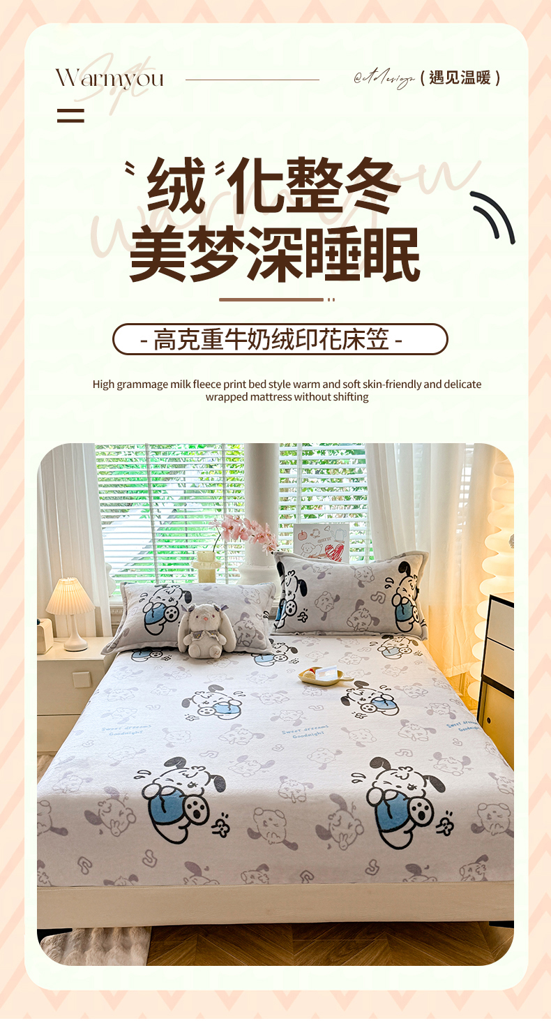 妖妖家纺 2024新款200克牛奶绒单床笠 wink狗狗