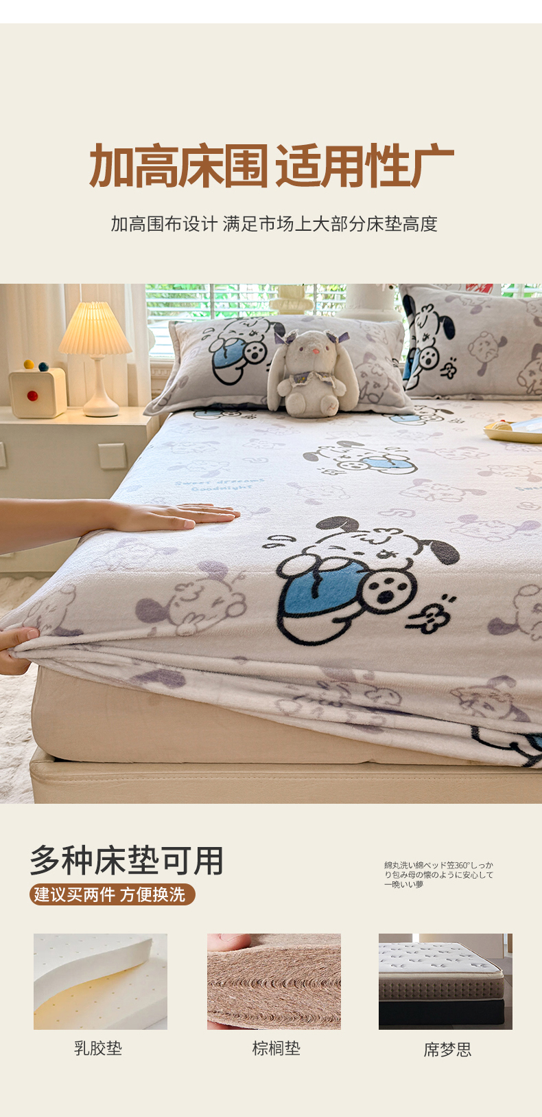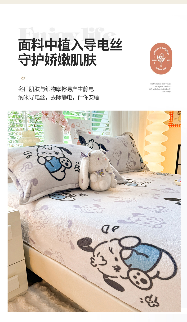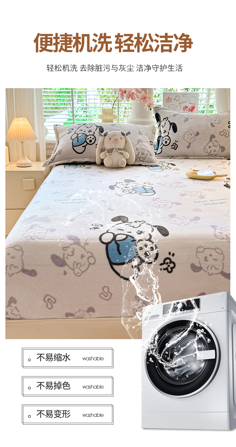 商品名称:妖妖家纺 2024新款200克牛奶绒单床笠 wink狗狗