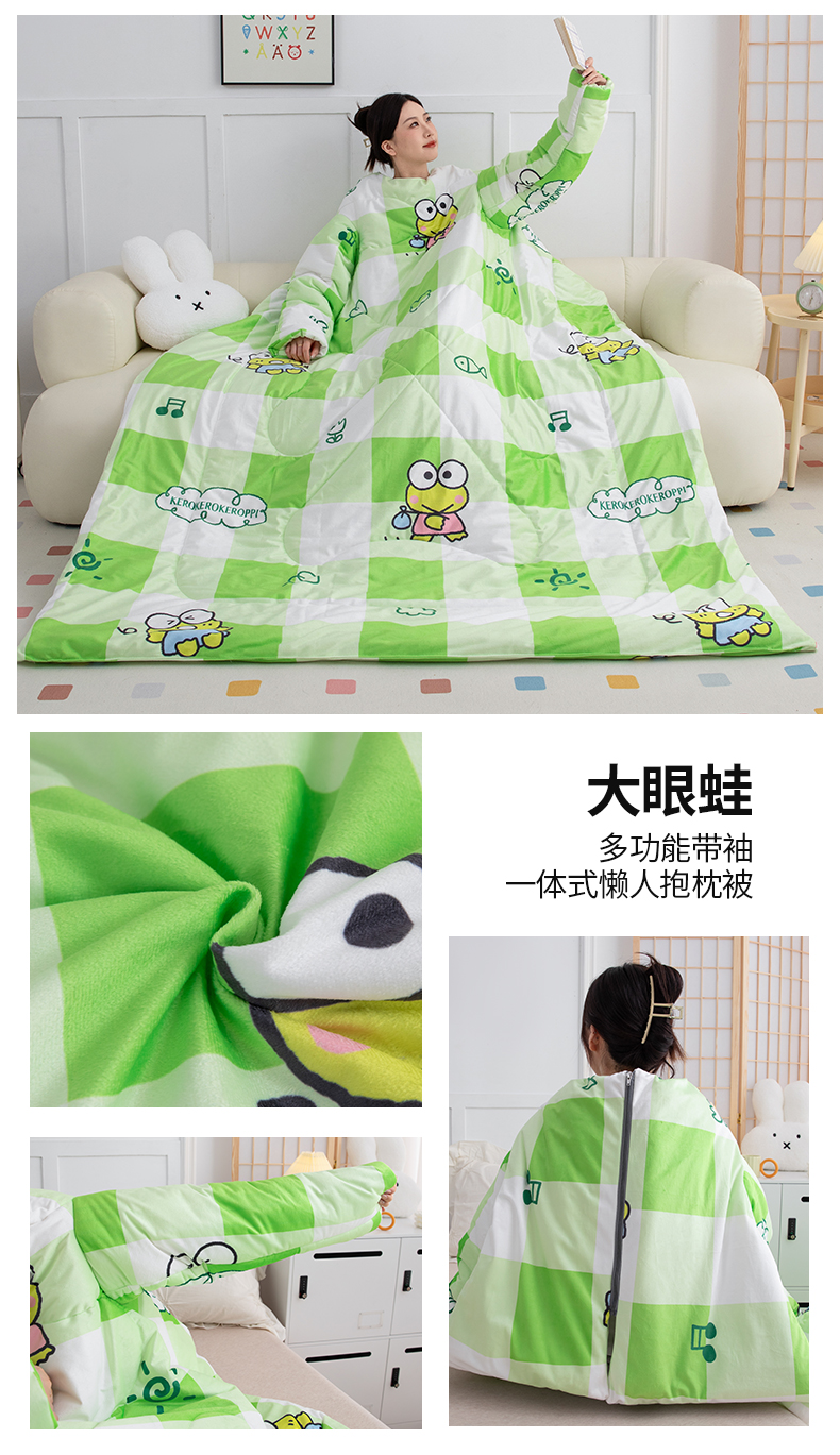 商品名称:照世家纺 2024新款卡通三丽鸥水晶绒多功能带袖一体式懒人被 大眼蛙