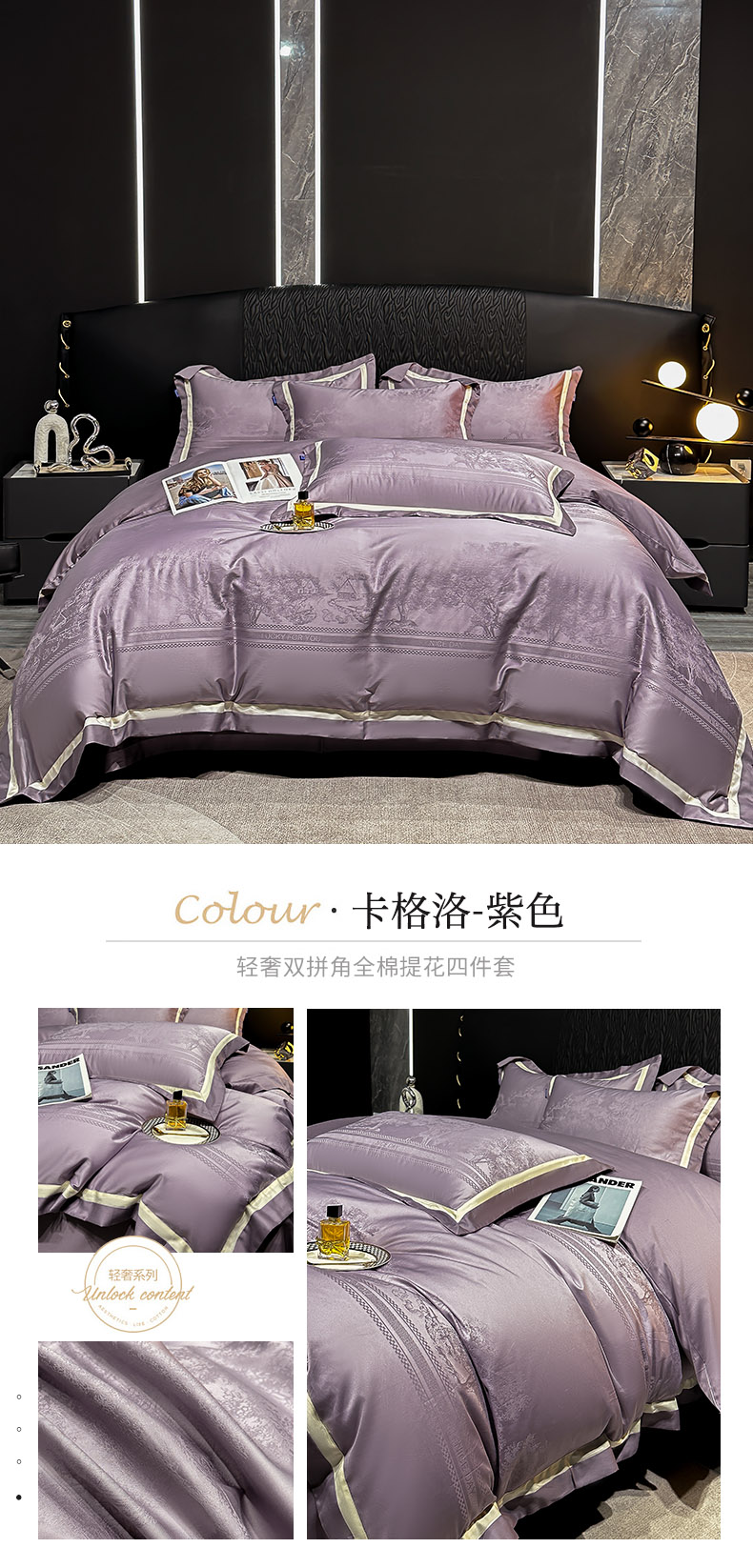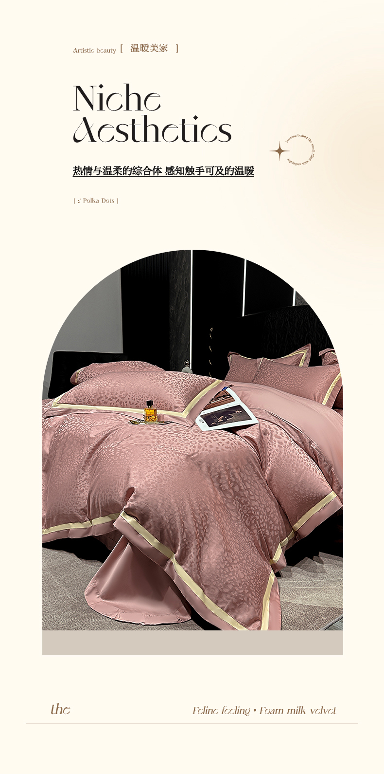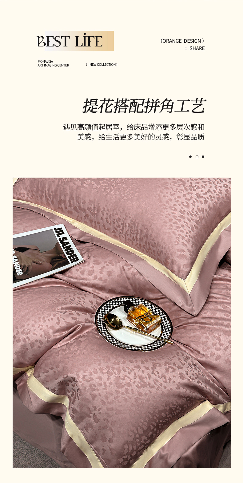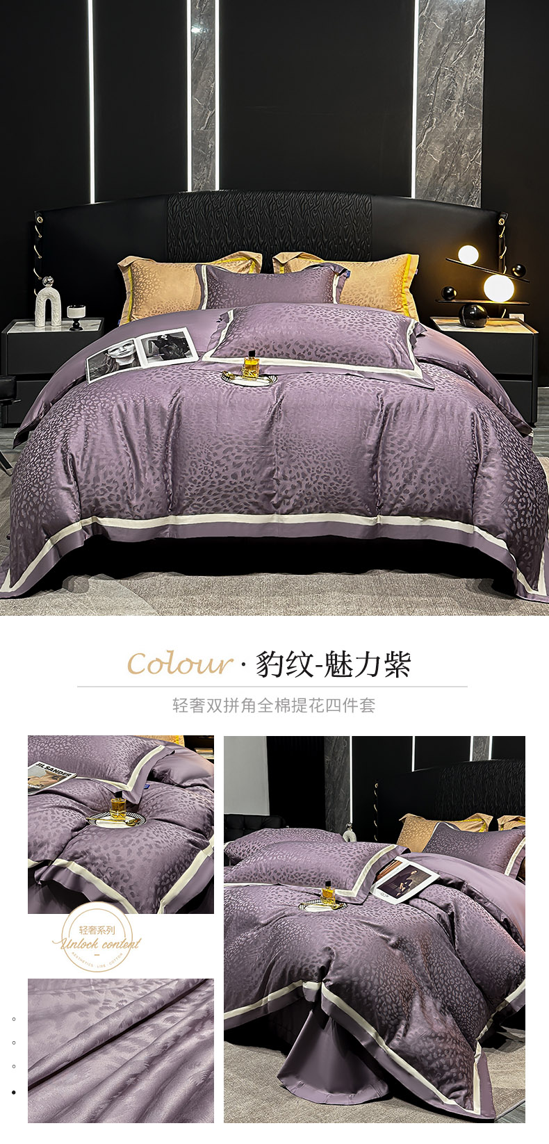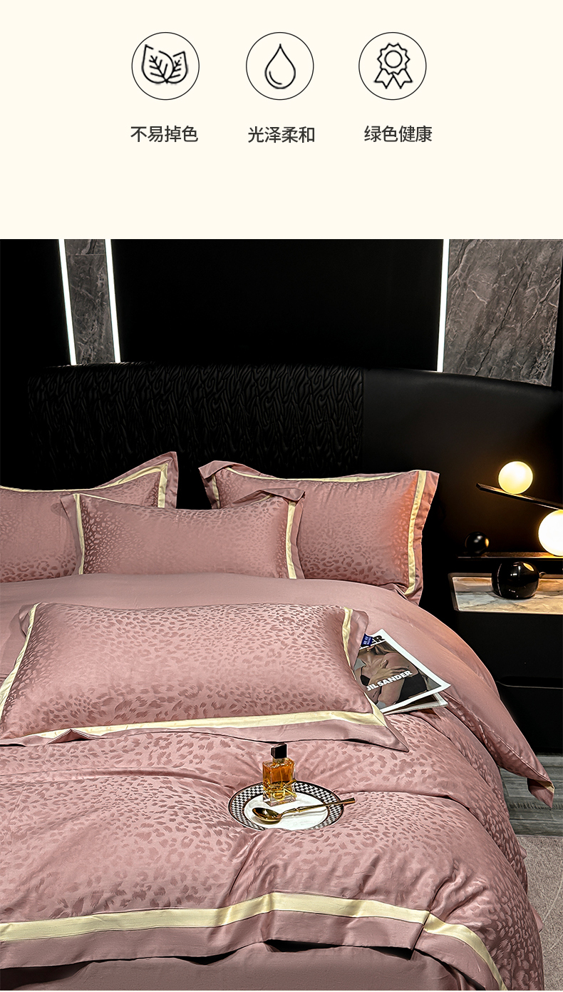 商品名称:雲归梦 2024新款轻奢双拼角全棉提花四件套 豹纹-樱花粉