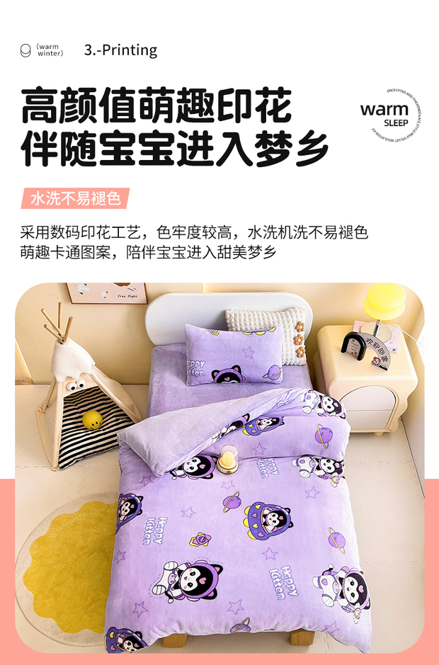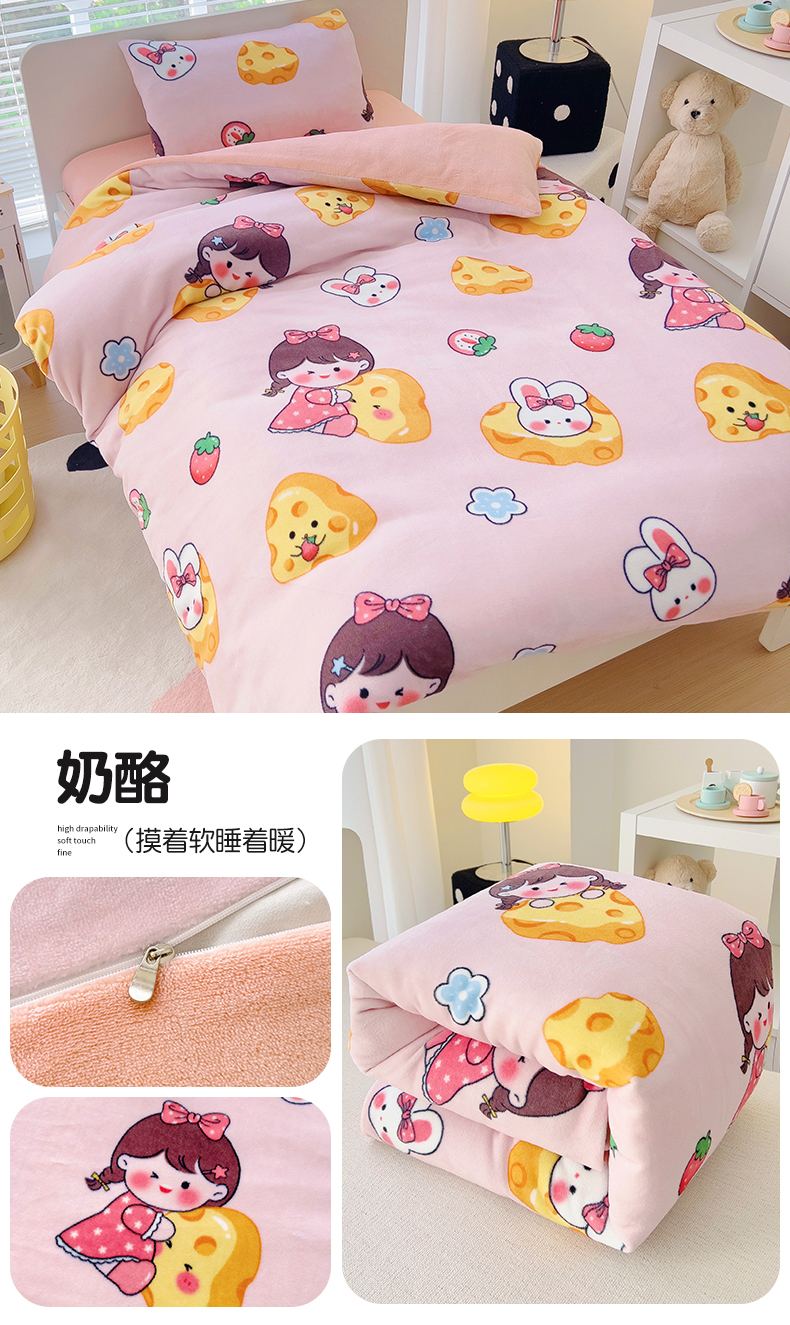 (总)鱼宝 2025新款大版牛奶绒三件套六件套多件套-彩绘系列,爱丽丝兔,卡通挖机,小巴士,小象宝宝,小熊鸭鸭,熊猫圆圆,一只企鹅,月球王子