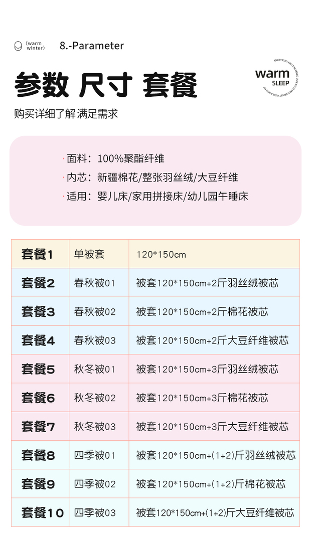 120*150被套+棉花子母被四季