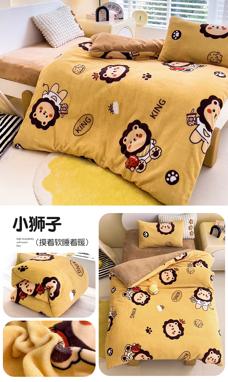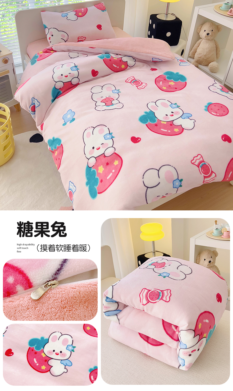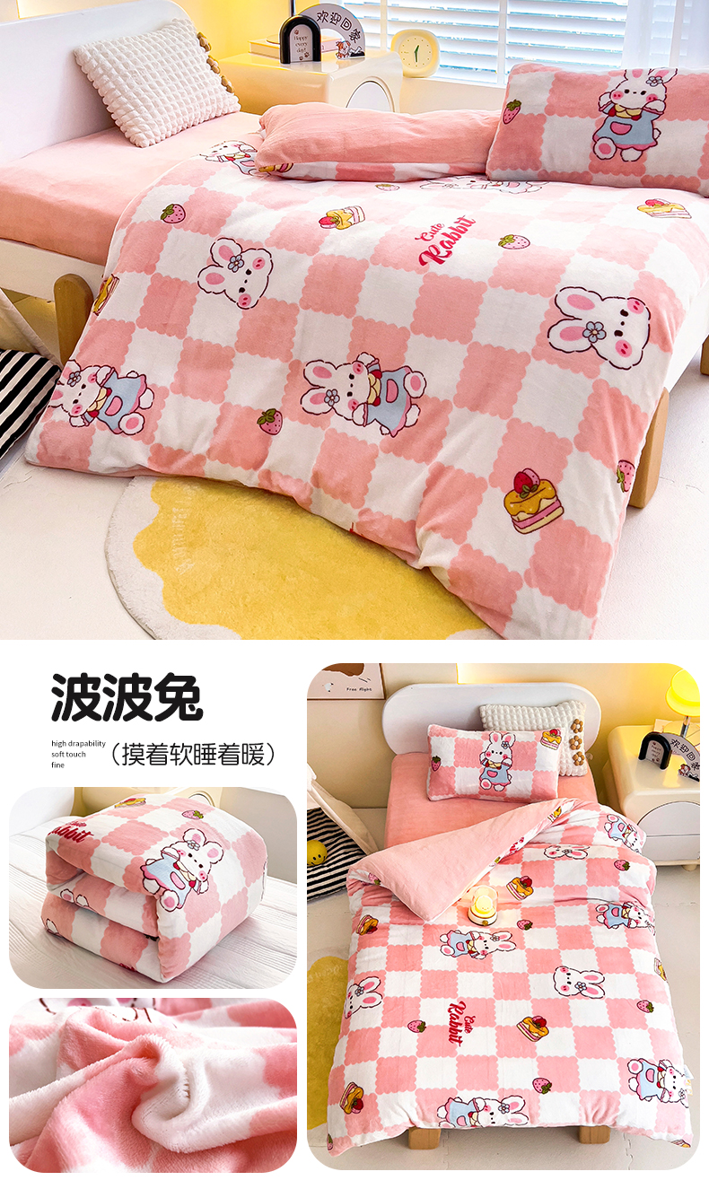 • 91家纺网 家纺一手货源 找家纺 (总)鱼宝 2025新款大版牛奶绒三件套六件套多件套-彩绘系列,爱丽丝兔,卡通挖机,小巴士,小象宝宝,小熊鸭鸭,熊猫圆圆,一只企鹅,月球王子