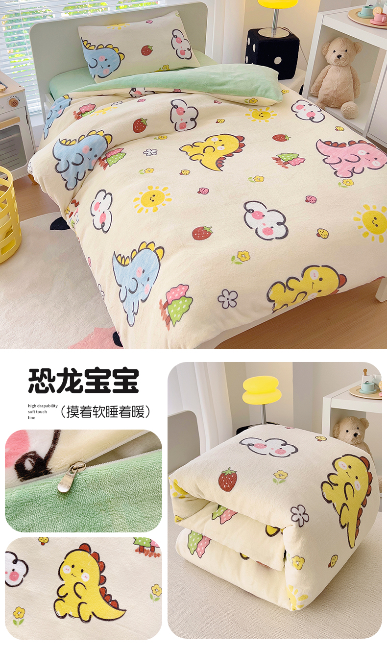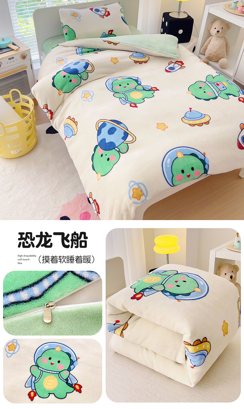 • 91家纺网 家纺一手货源 找家纺 (总)鱼宝 2025新款毛巾绣牛奶绒被套被芯套件,飞行梦,卡米拉,糖糖猫,淘气恐龙,小魔仙,小奶龙,游乐园