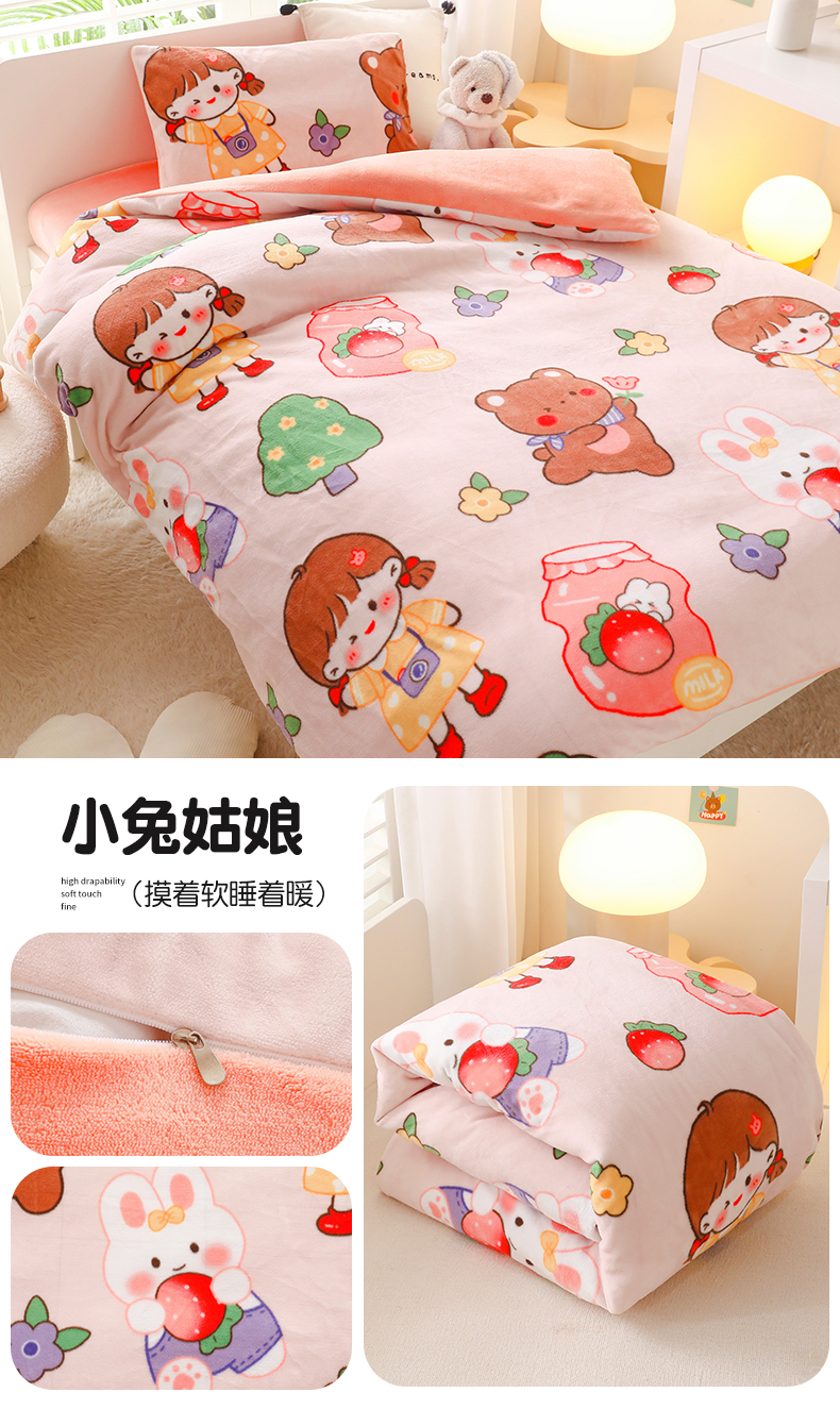 • 91家纺网 家纺一手货源 找家纺 (总)鱼宝 2025新款大版牛奶绒三件套六件套多件套-彩绘系列,爱丽丝兔,卡通挖机,小巴士,小象宝宝,小熊鸭鸭,熊猫圆圆,一只企鹅,月球王子