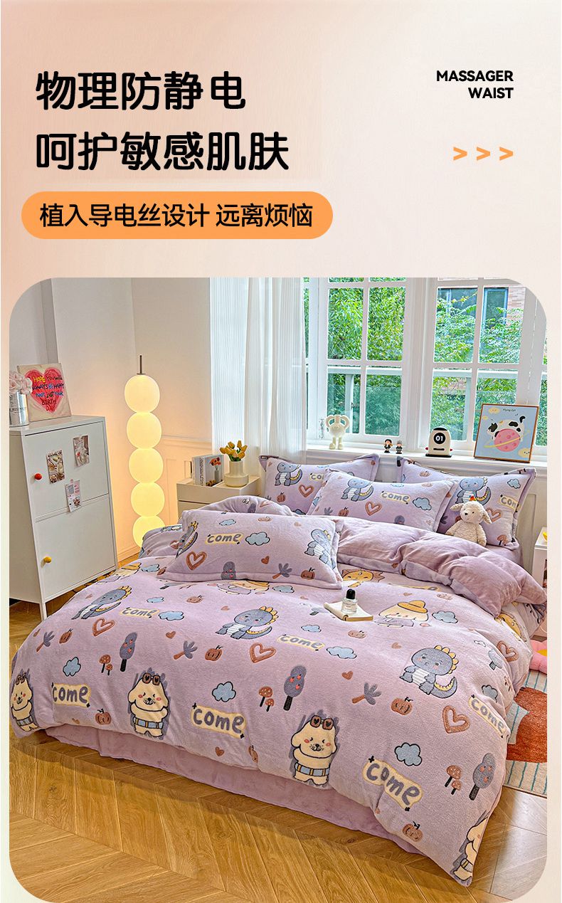 当前位置: 91家纺网 > 商品网购 > 床品套件 > 四件套 > 牛奶绒四件套 > 韩巢家纺 2024新款加厚雪花绒牛奶绒珊瑚绒四件套-新品(提供卖家秀) 童趣乐园