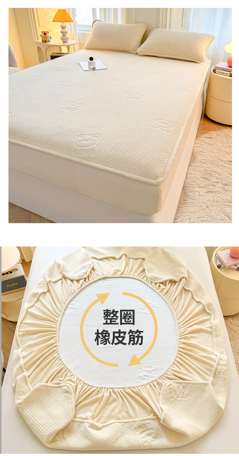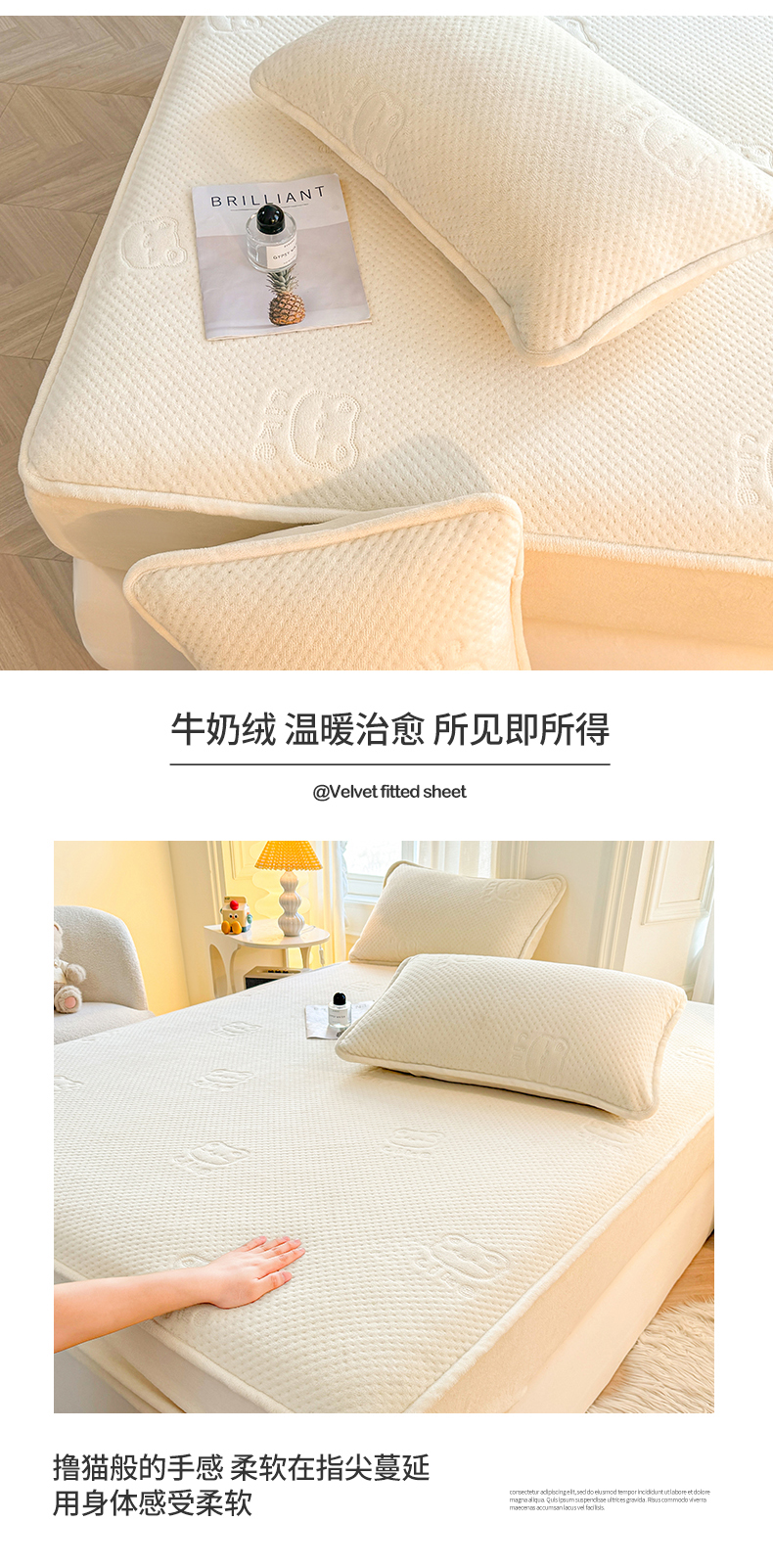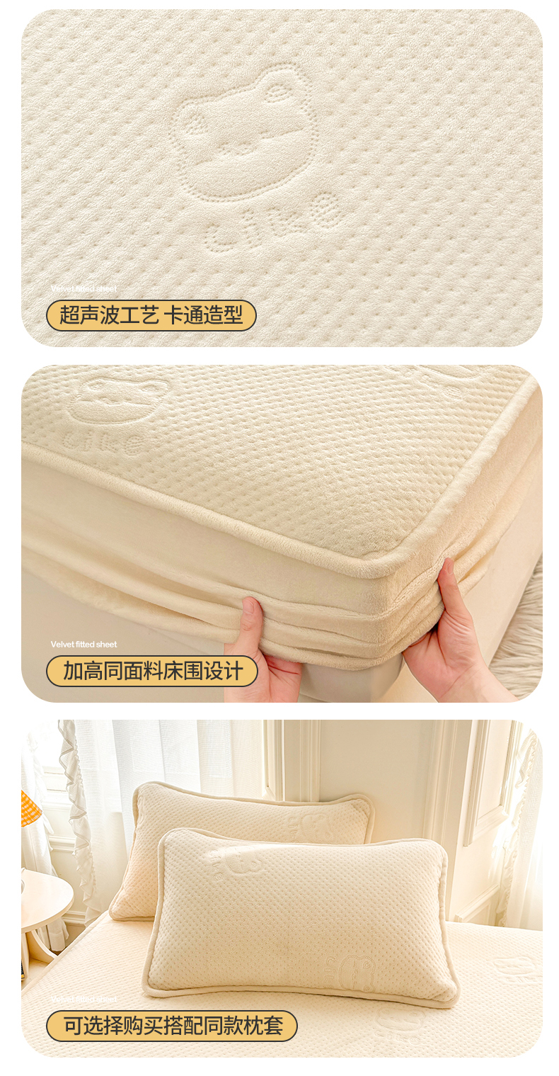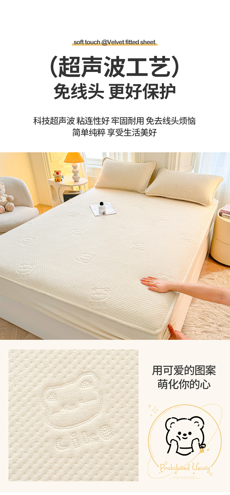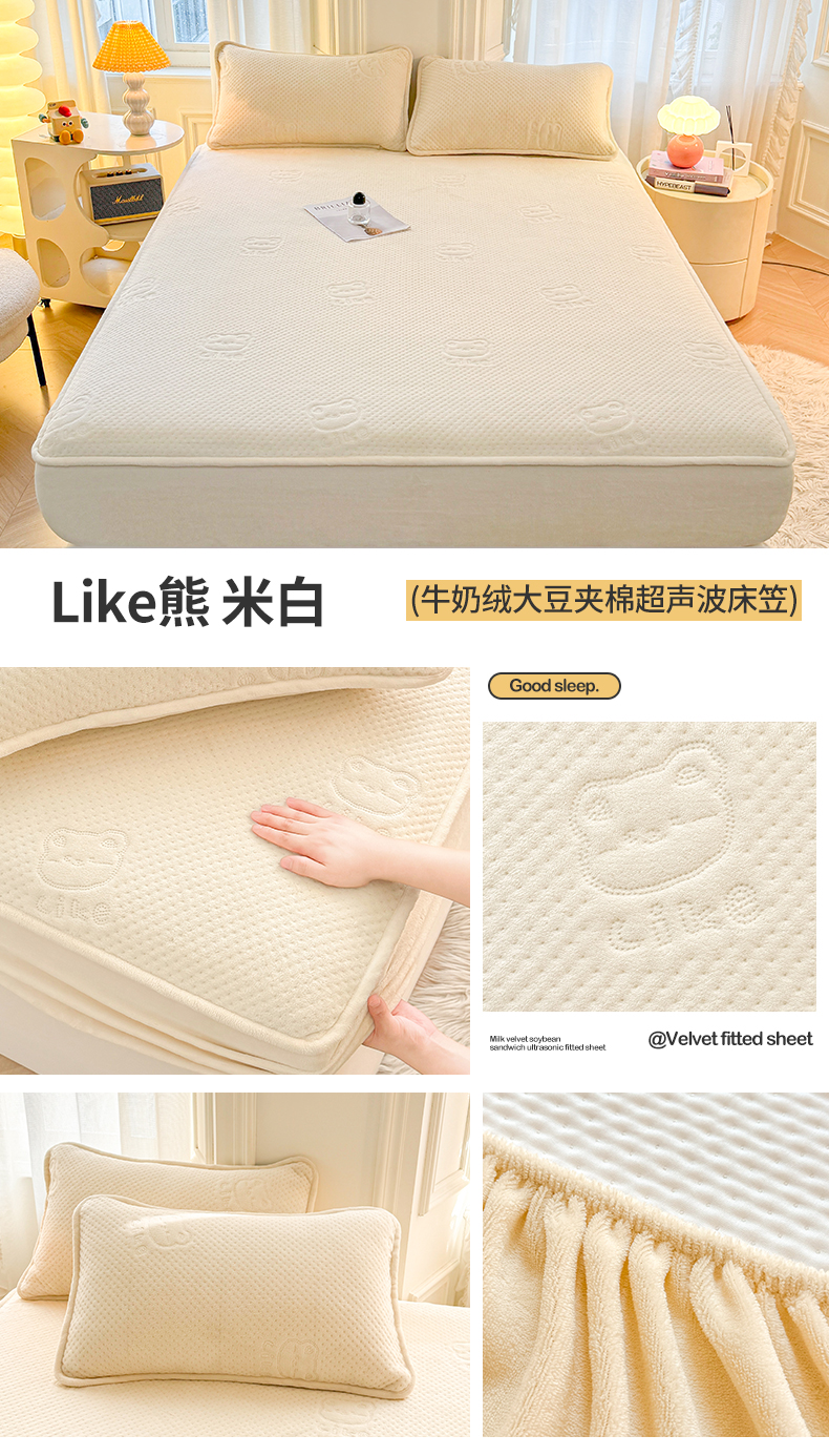 商品名称:居眠 2024新款牛奶绒超声波like小熊夹棉大豆床笠 Like熊-米白