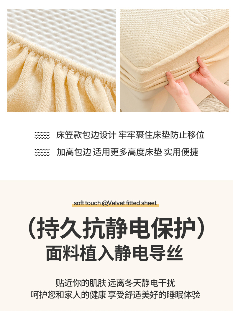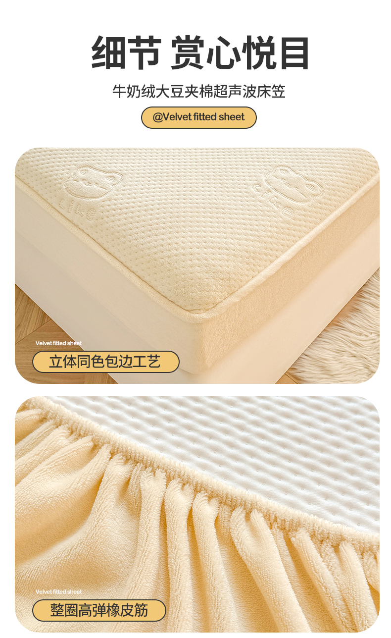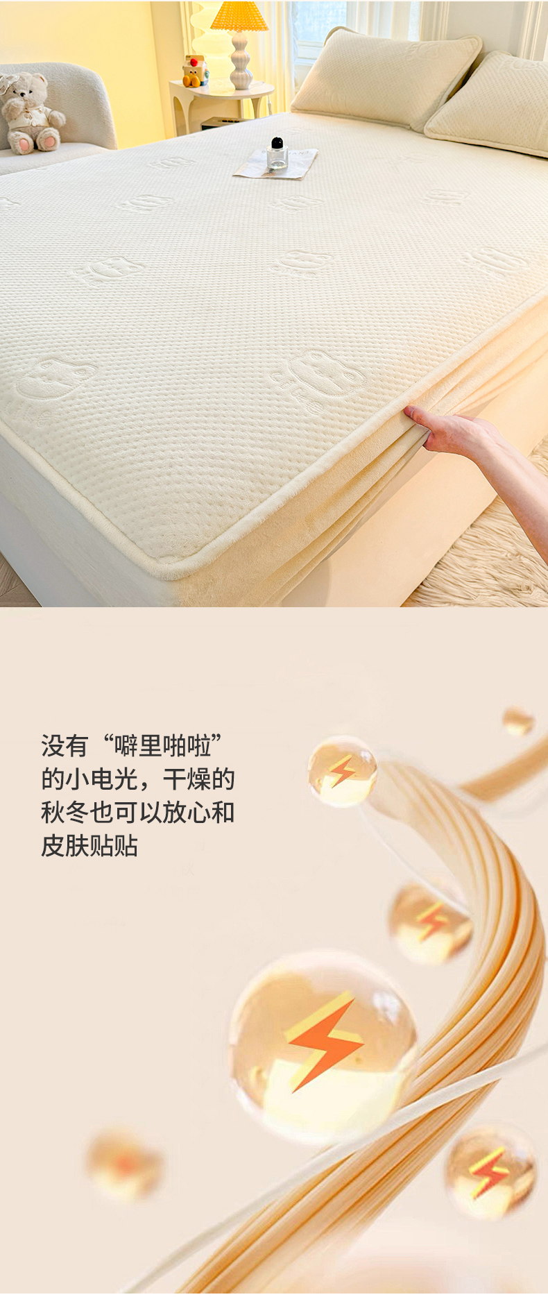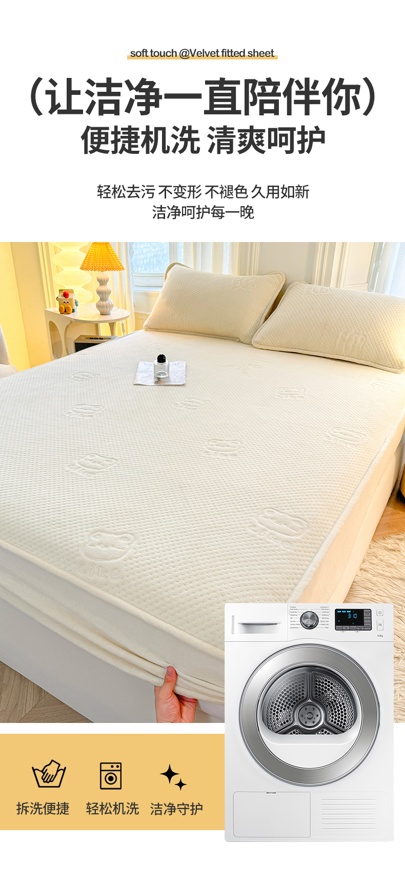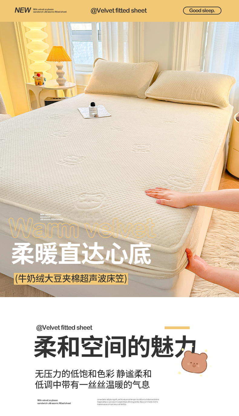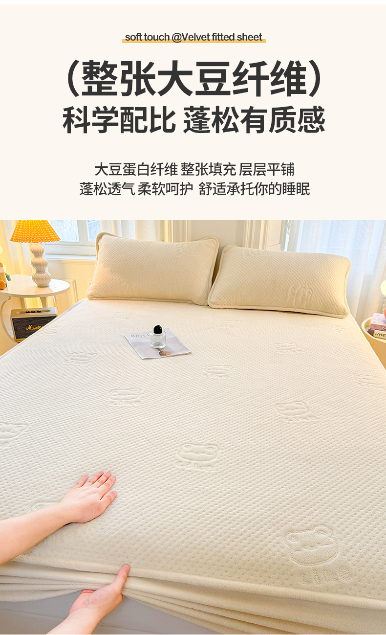 商品名称:居眠 2024新款牛奶绒超声波like小熊夹棉大豆床笠 Like熊-米白