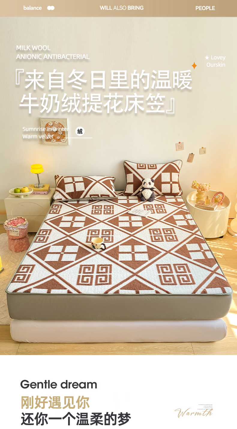 好眠好梦 2024新款240g提花牛奶绒床笠 格调人生