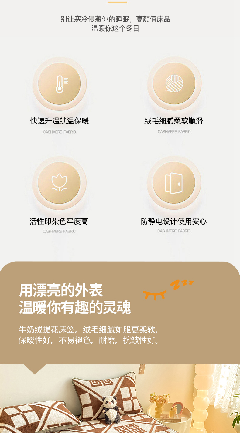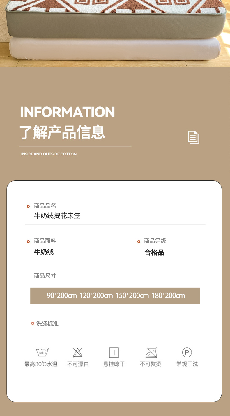 商品名称:好眠好梦 2024新款240g提花牛奶绒床笠 格调人生