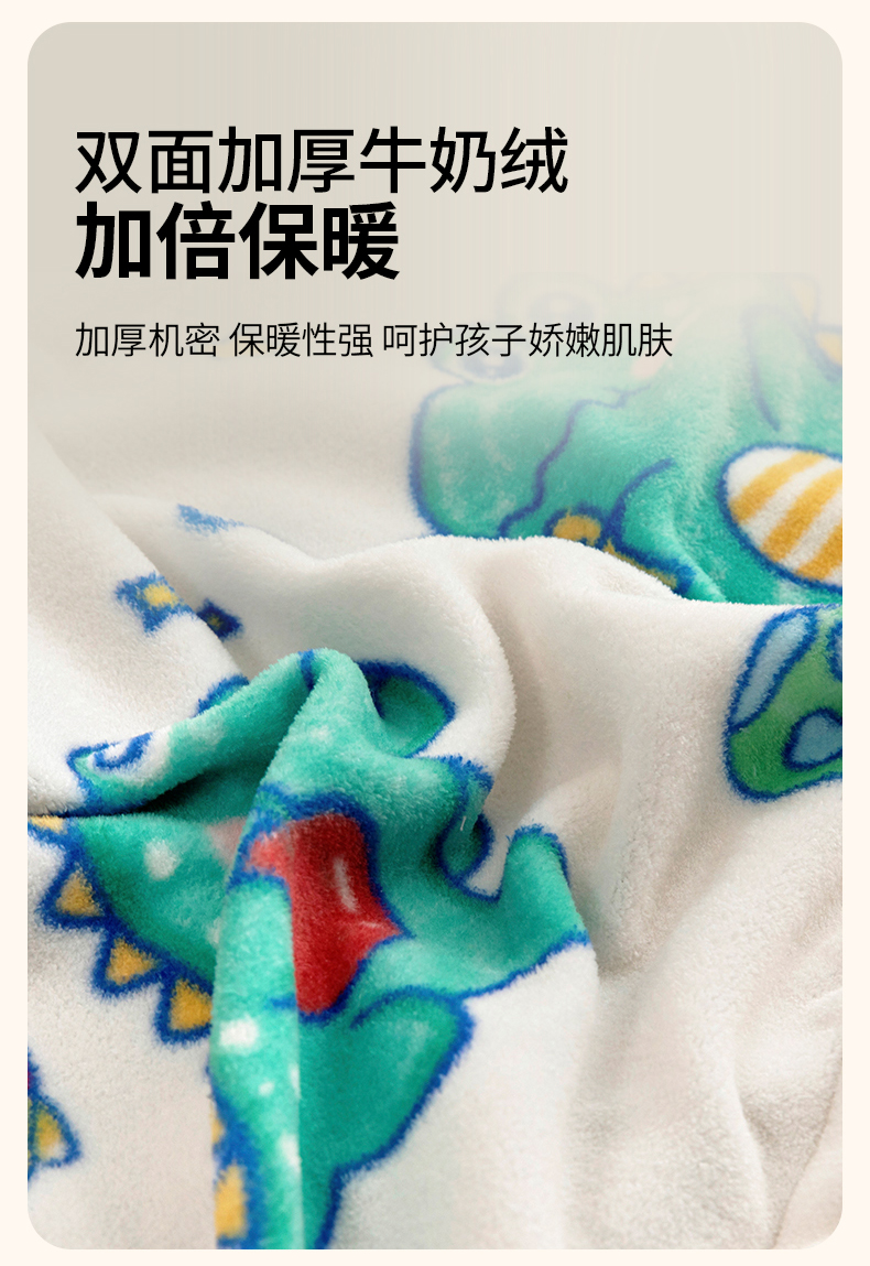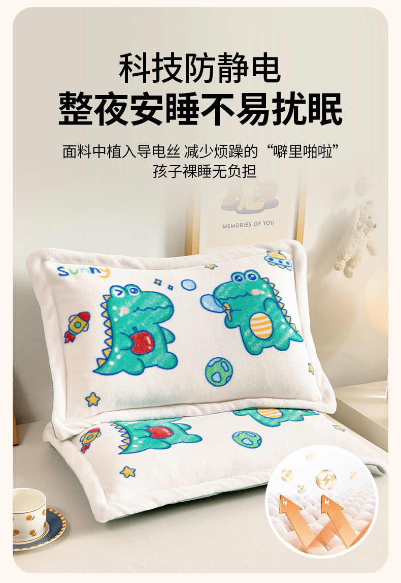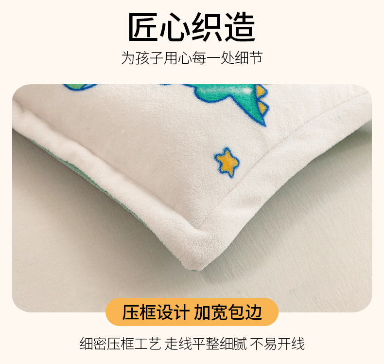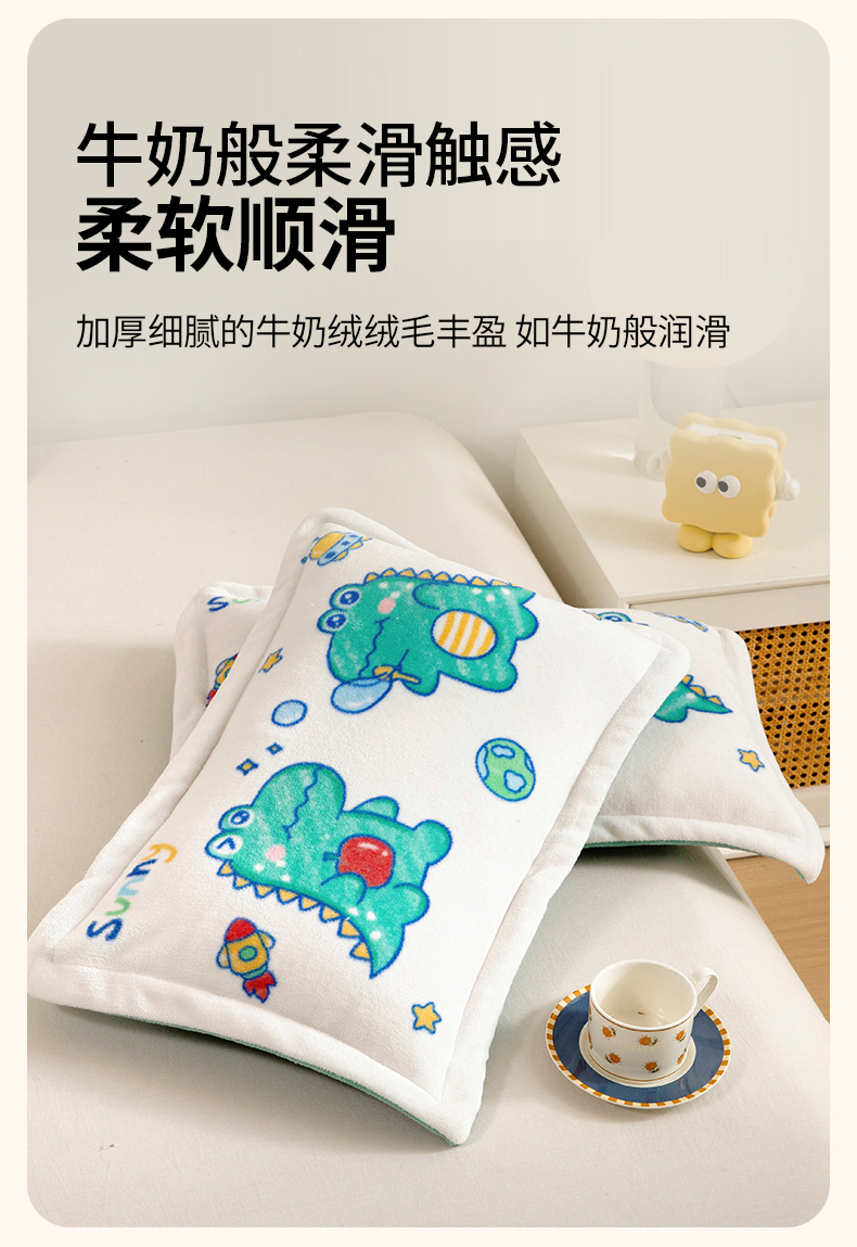 吉咪兔家纺 25年新款大版定位图案儿童卡通牛奶绒枕套加厚秋冬季宝宝枕头套幼儿园枕芯套 小恐龙