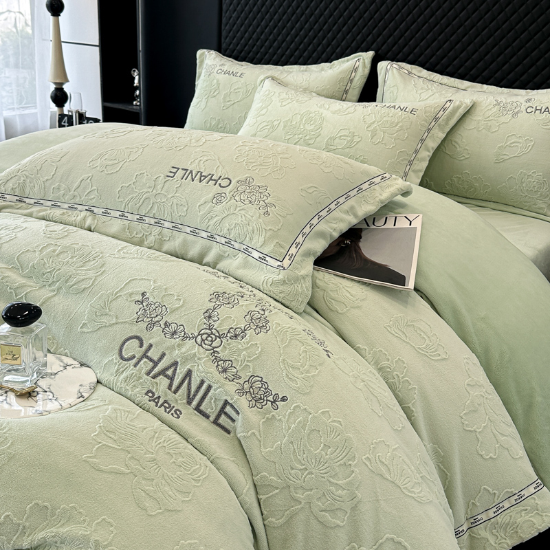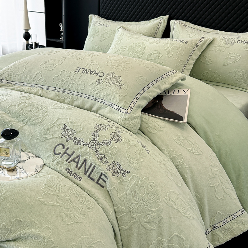 (总)宅家居 2025新款230克全消光雕花绒轻奢风立体烂花牛奶绒提花加厚保暖四件套-苏蜜绒,苏蜜绒-高贵灰,苏蜜绒-莫松绿,苏蜜绒-雪桃粉