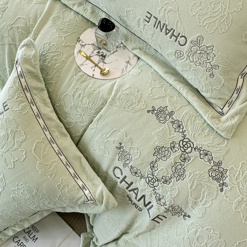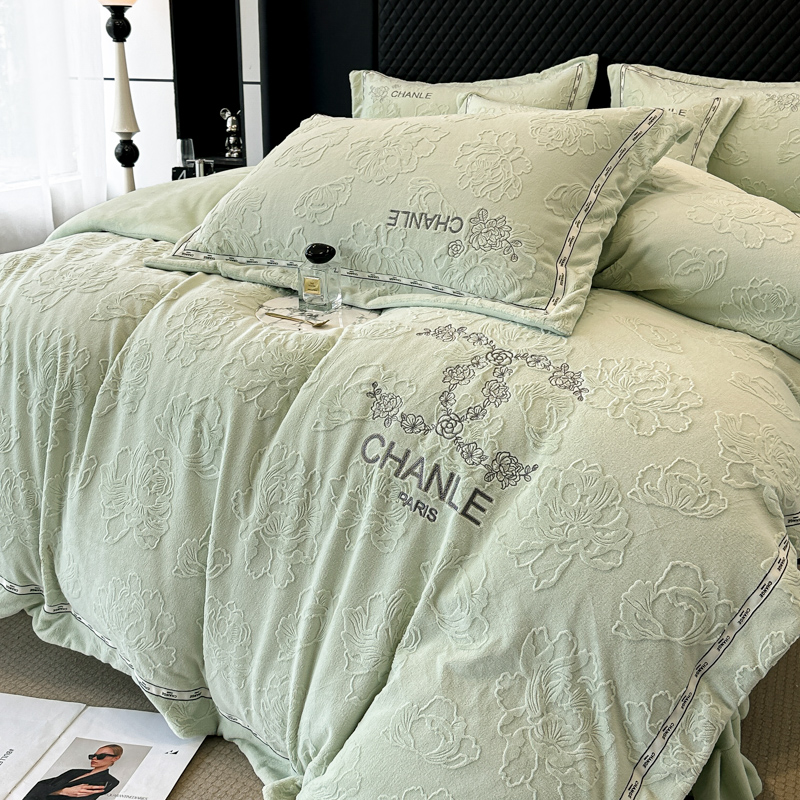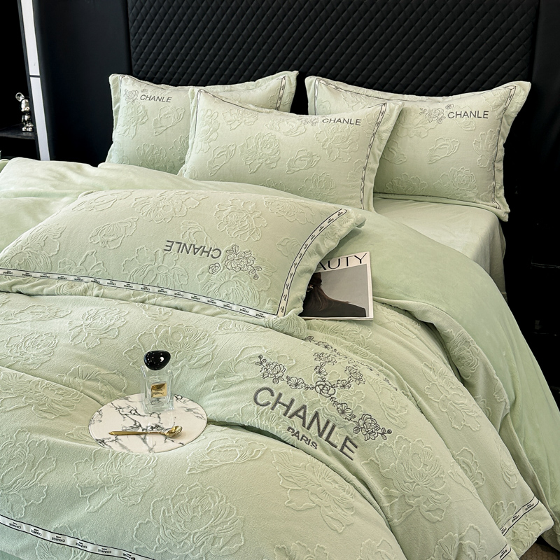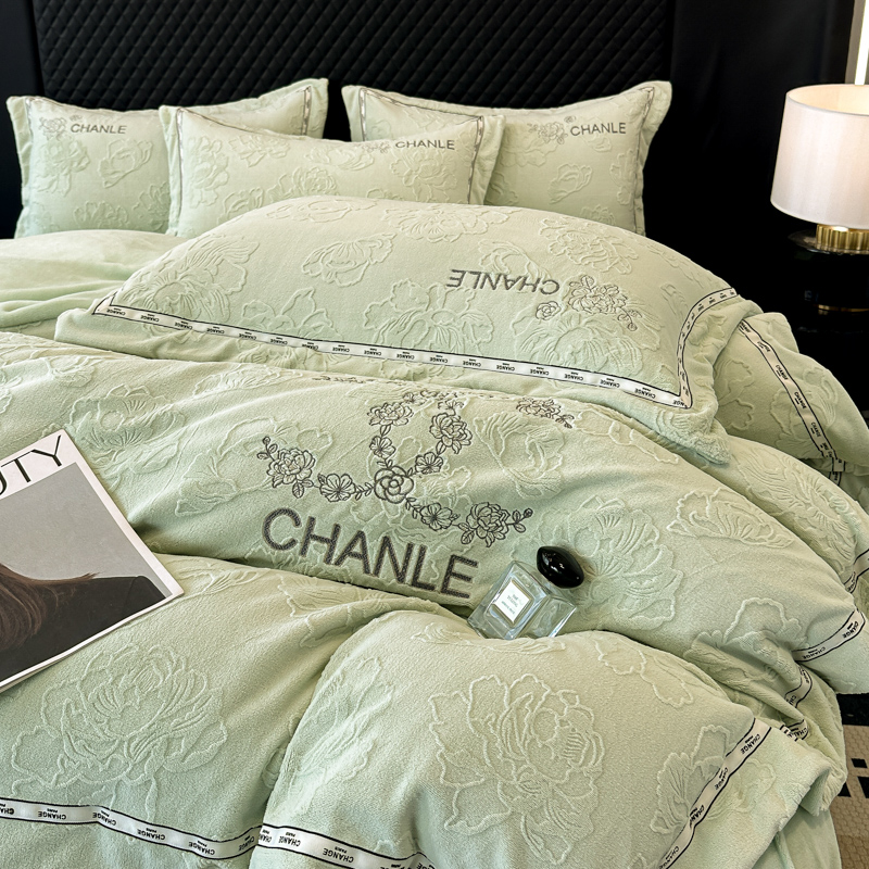 宅家居 2025新款轻奢小香风雕花刺绣全消光A类高克重牛奶绒四件套-小香牡丹 小香牡丹-果绿