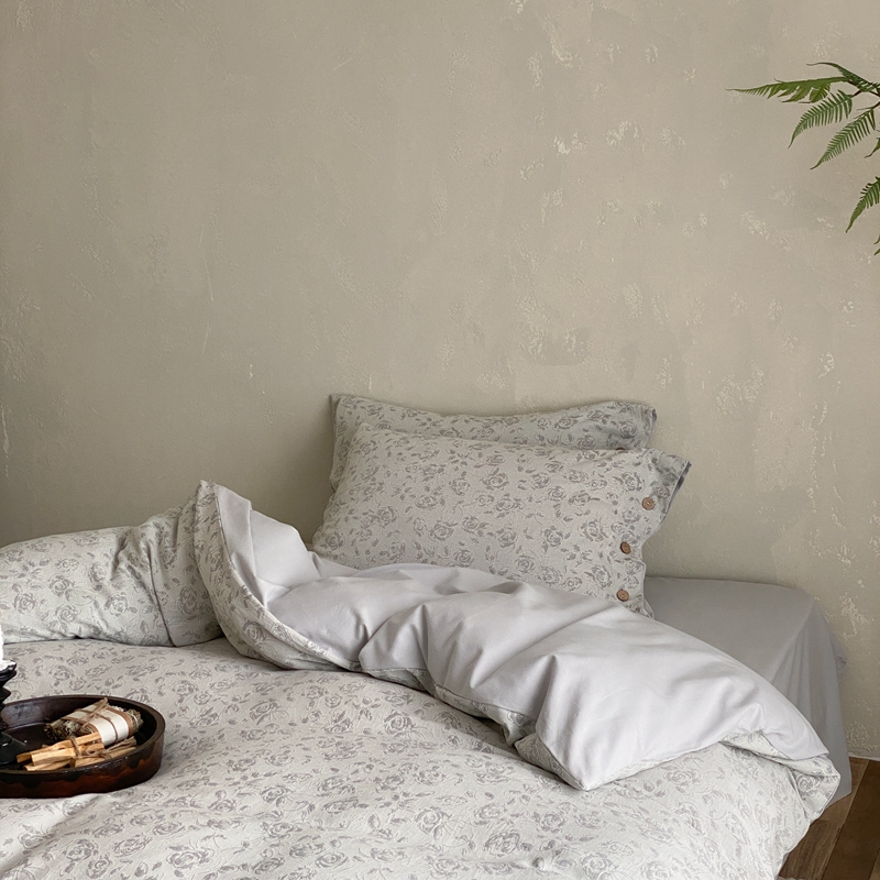 (总)旷野 2025新款空气层提花皱皱纱碎花边工艺款四件套-竹梦,竹梦
