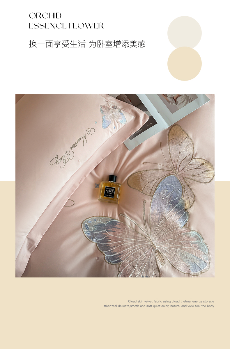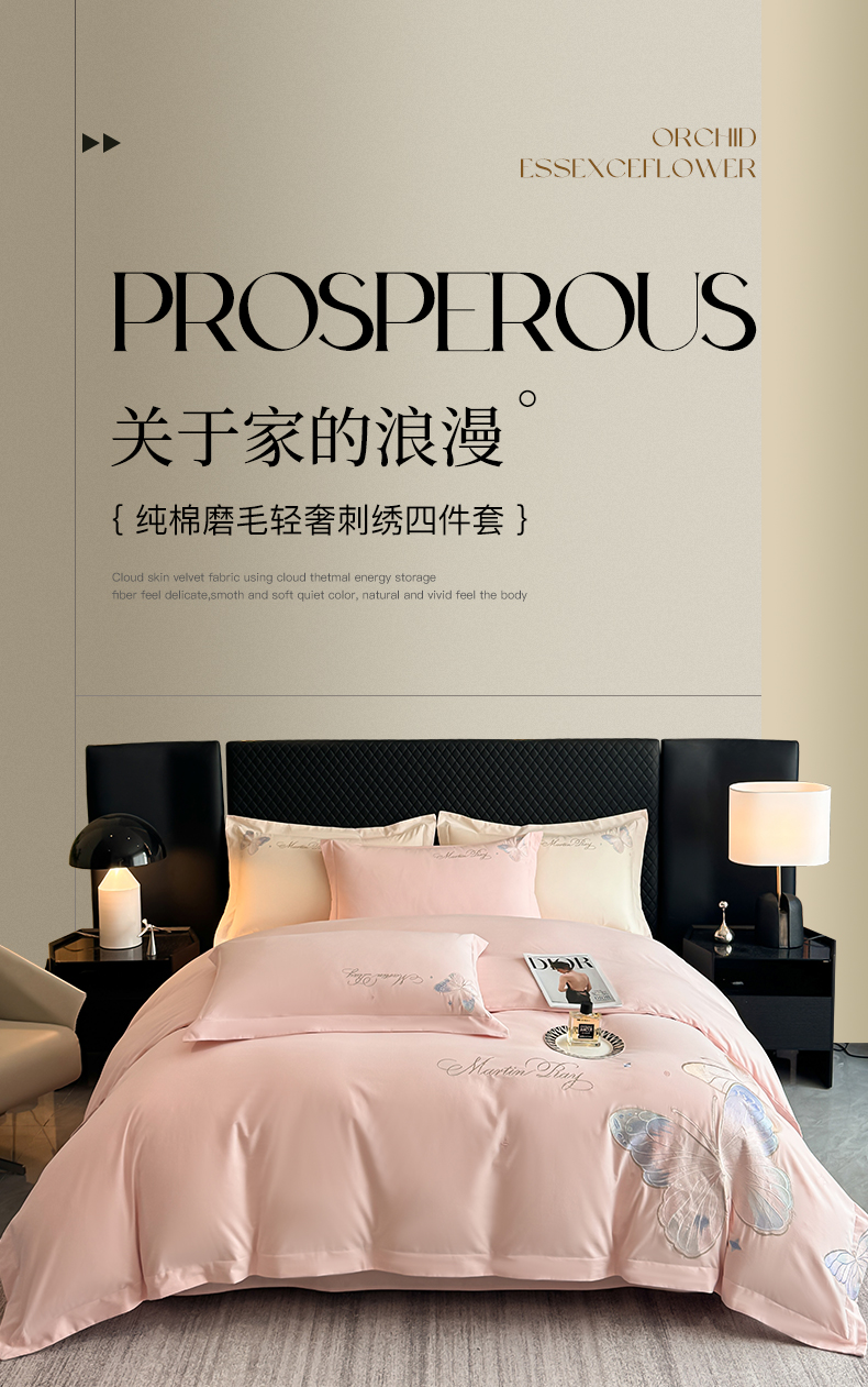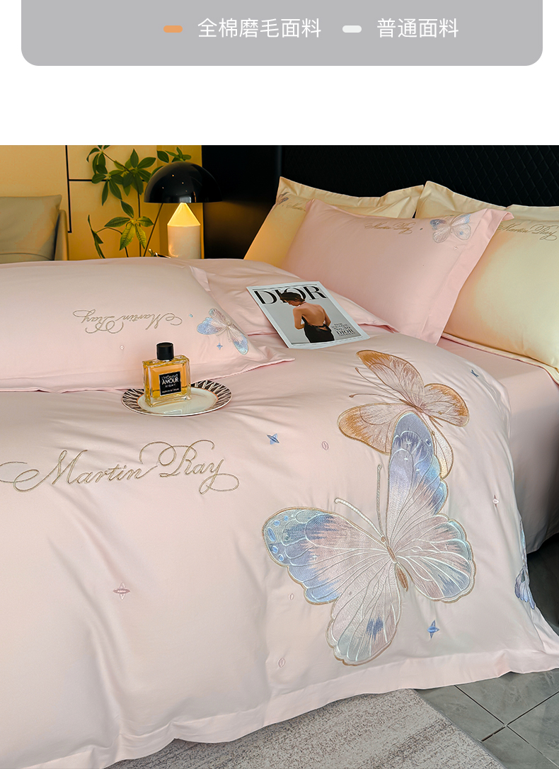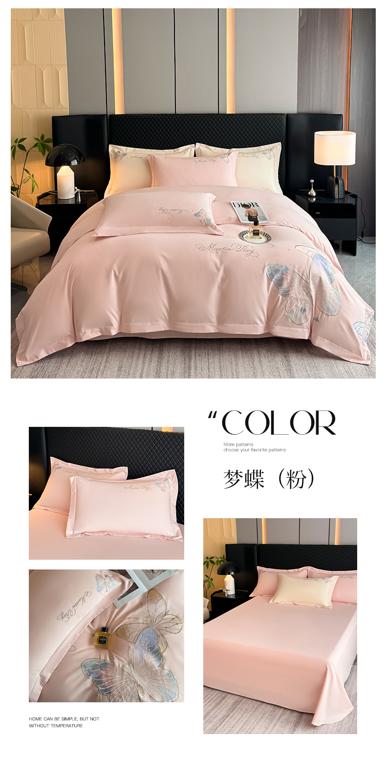 商品名称:理想家家纺 2024新款纯棉磨毛刺绣四件套-梦蝶 梦蝶-粉