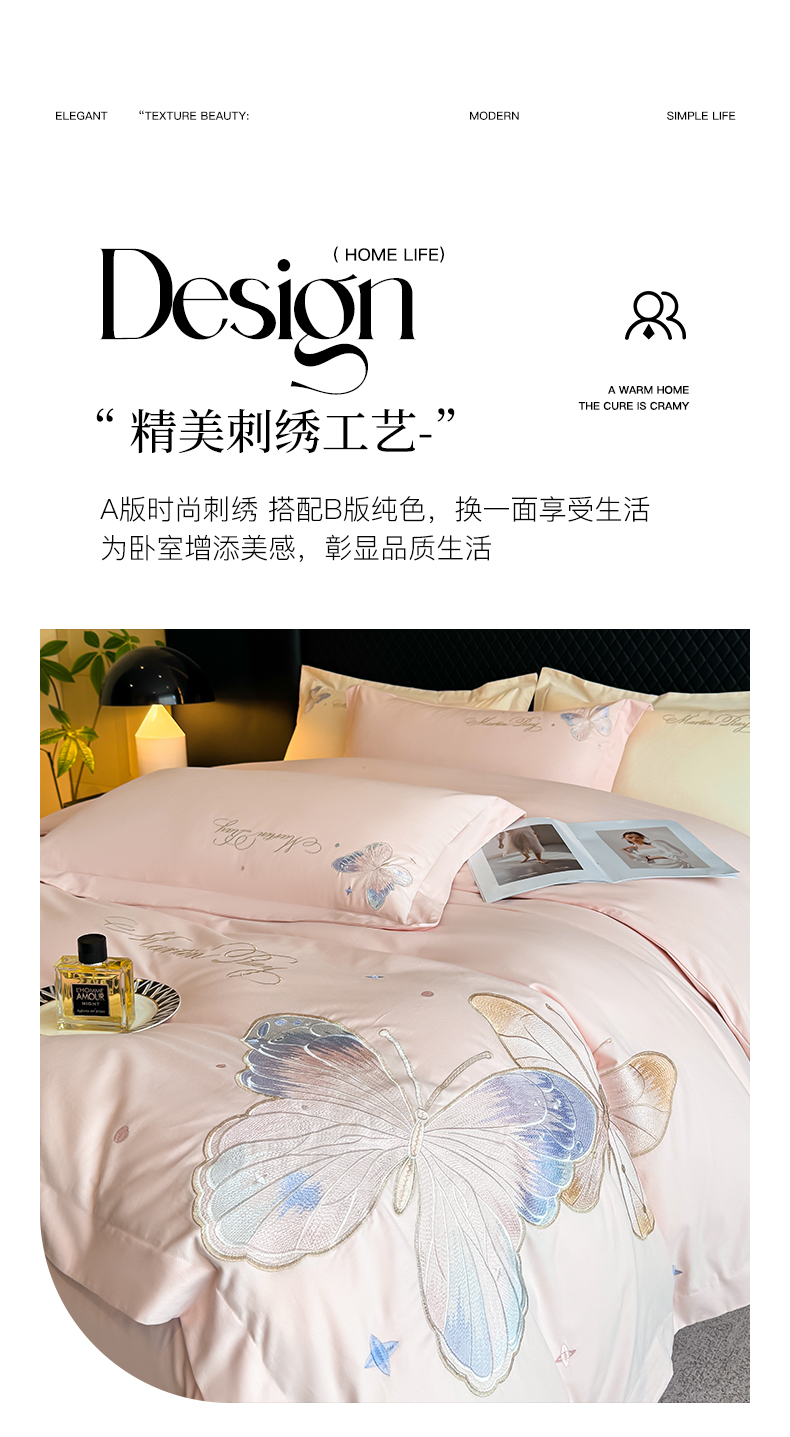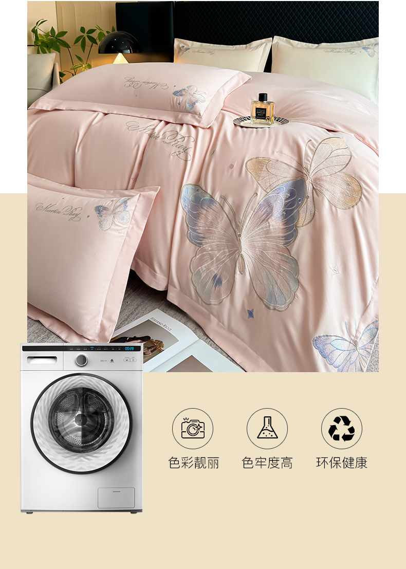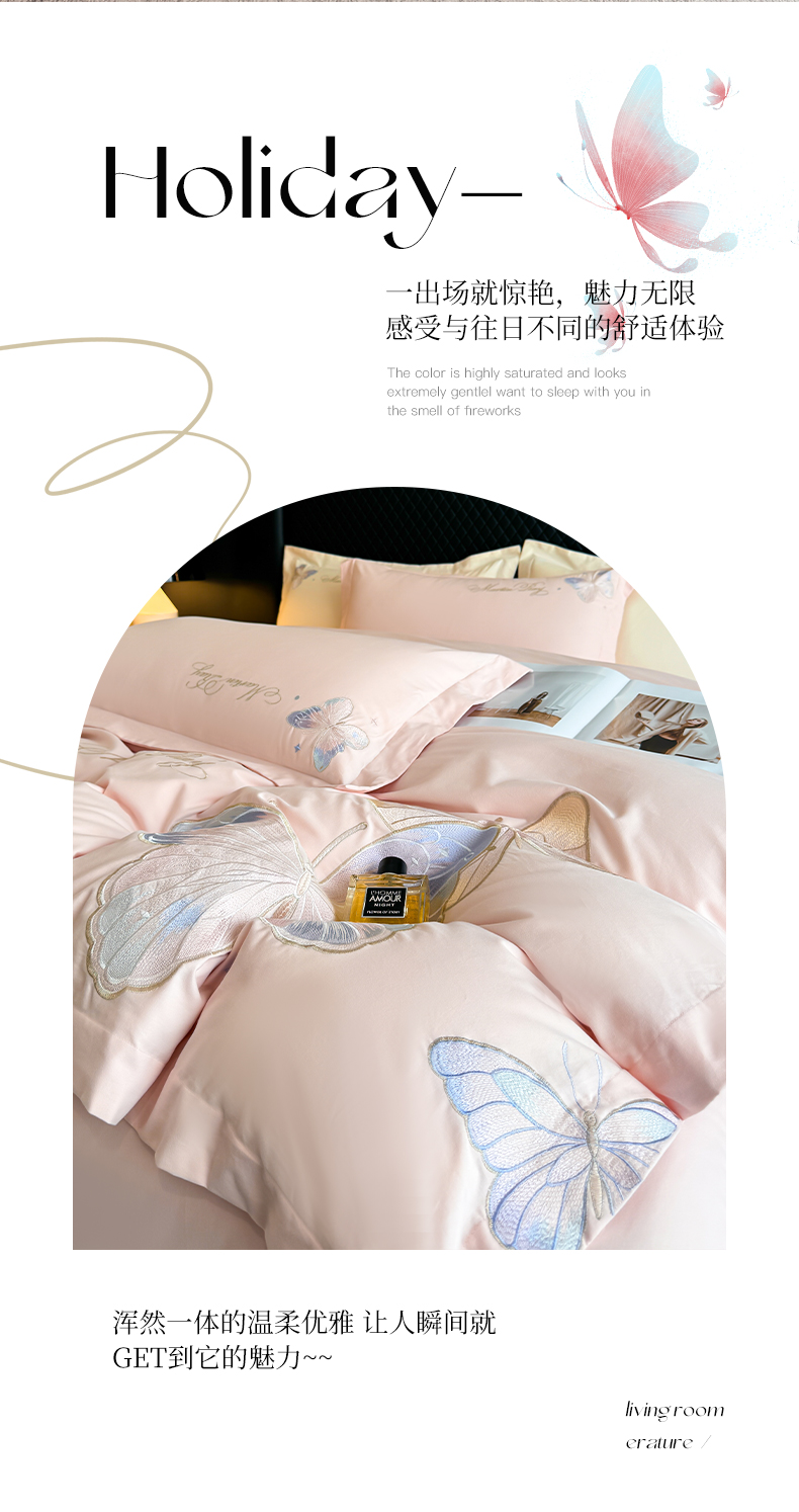 商品名称:理想家家纺 2024新款纯棉磨毛刺绣四件套-梦蝶 梦蝶-粉