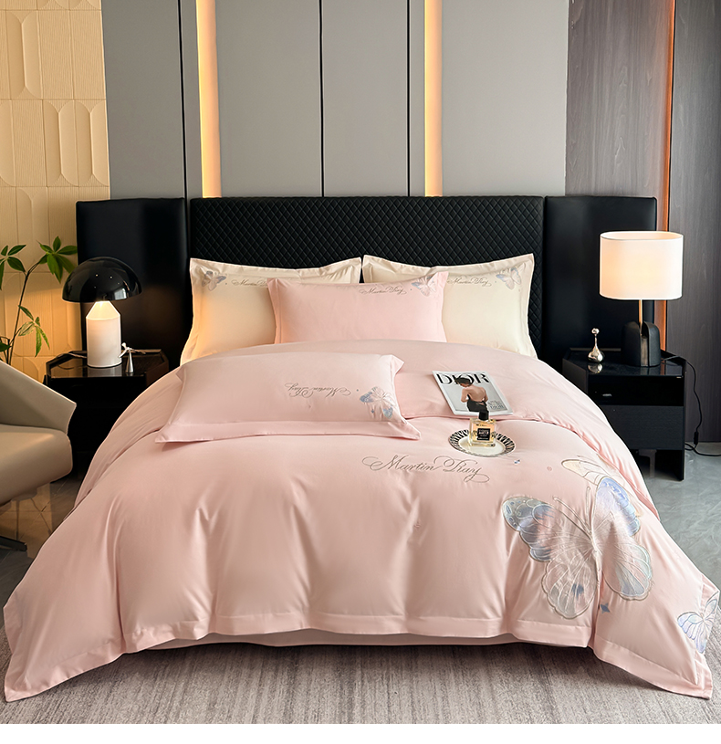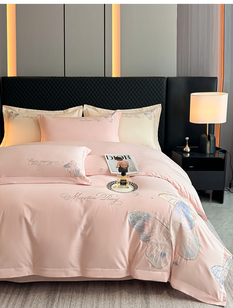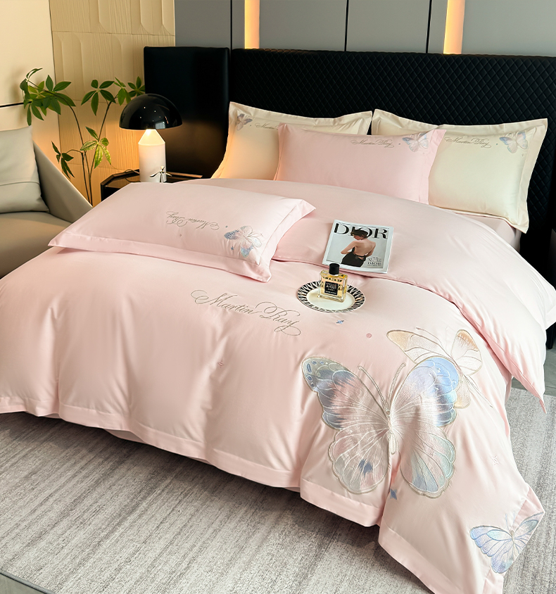 理想家家纺 2024新款纯棉磨毛刺绣四件套-梦蝶 梦蝶-粉