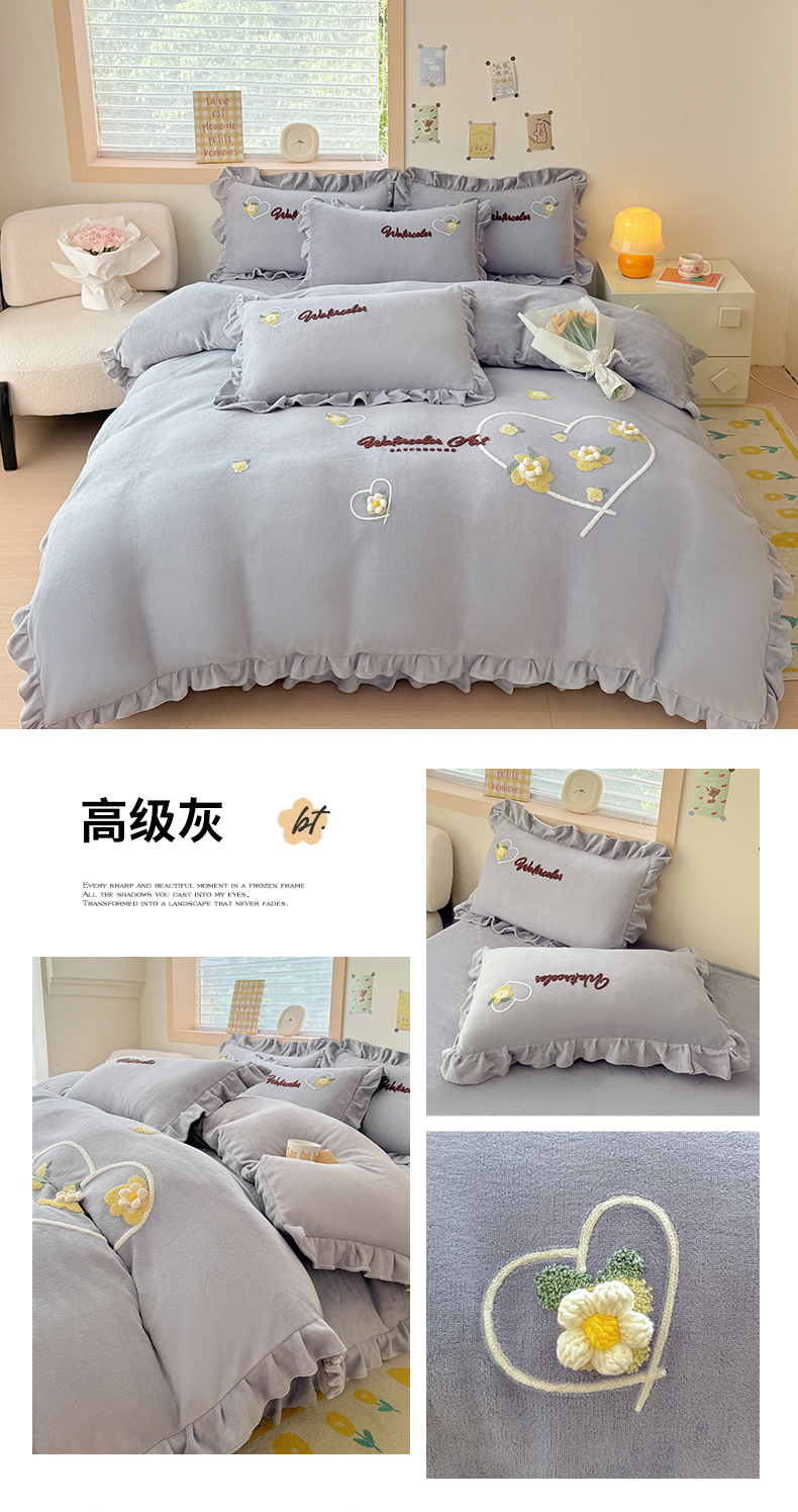 商品名称:金米诺 2024新款牛奶绒毛巾绣四件套 高级灰