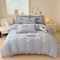 金米诺 新款韩版花边水洗棉泡泡纱四件套公主条四件套 褶皱-浅蓝,褶皱-浅蓝