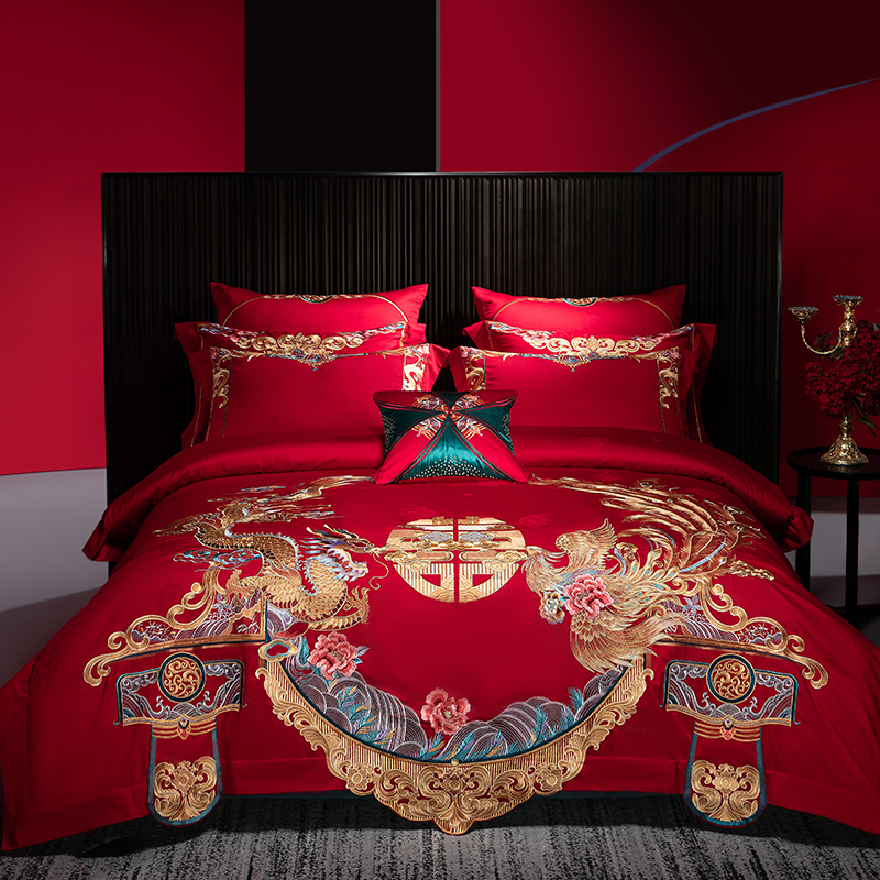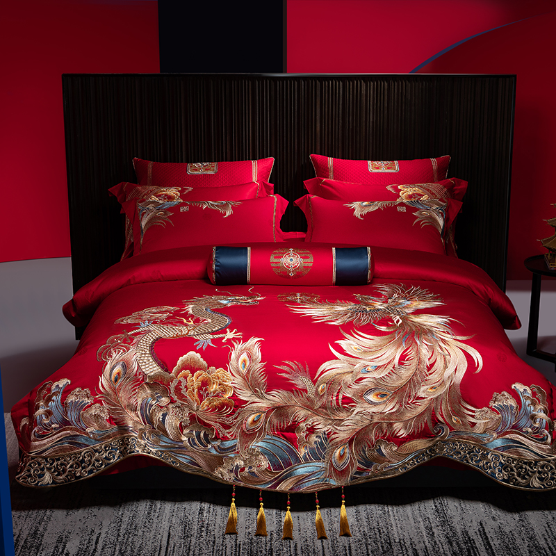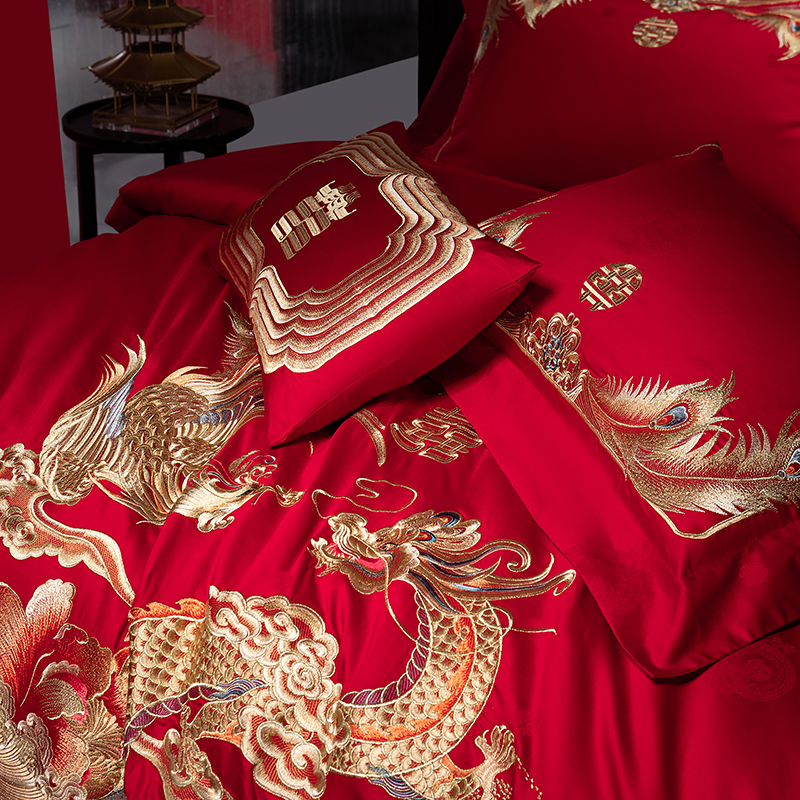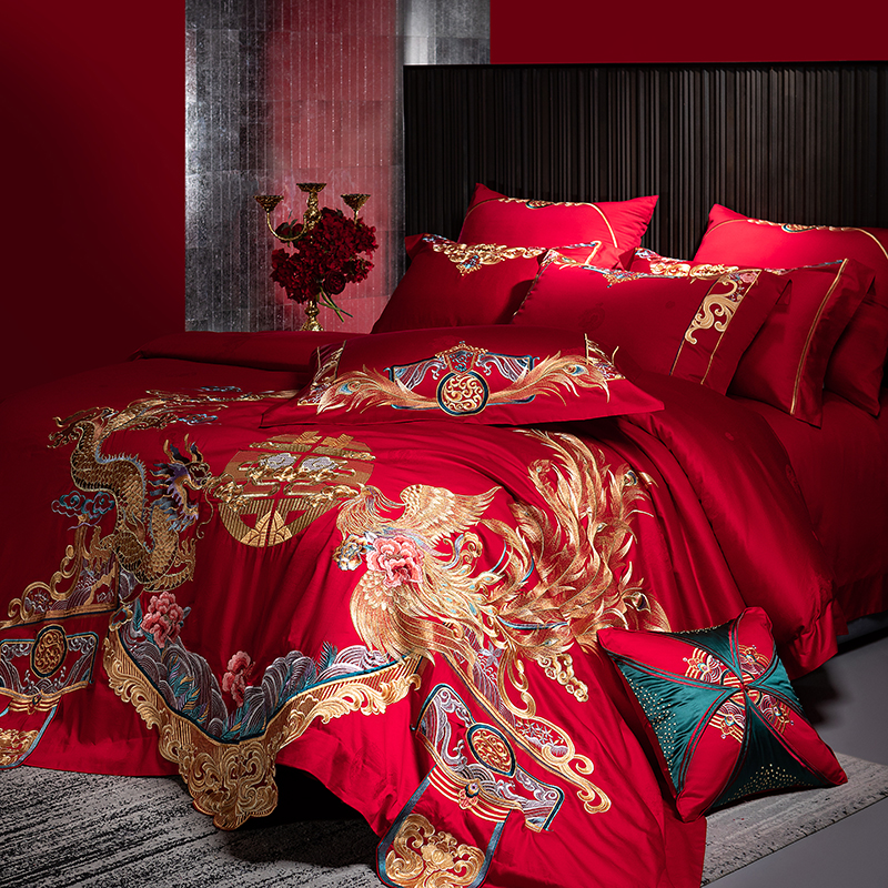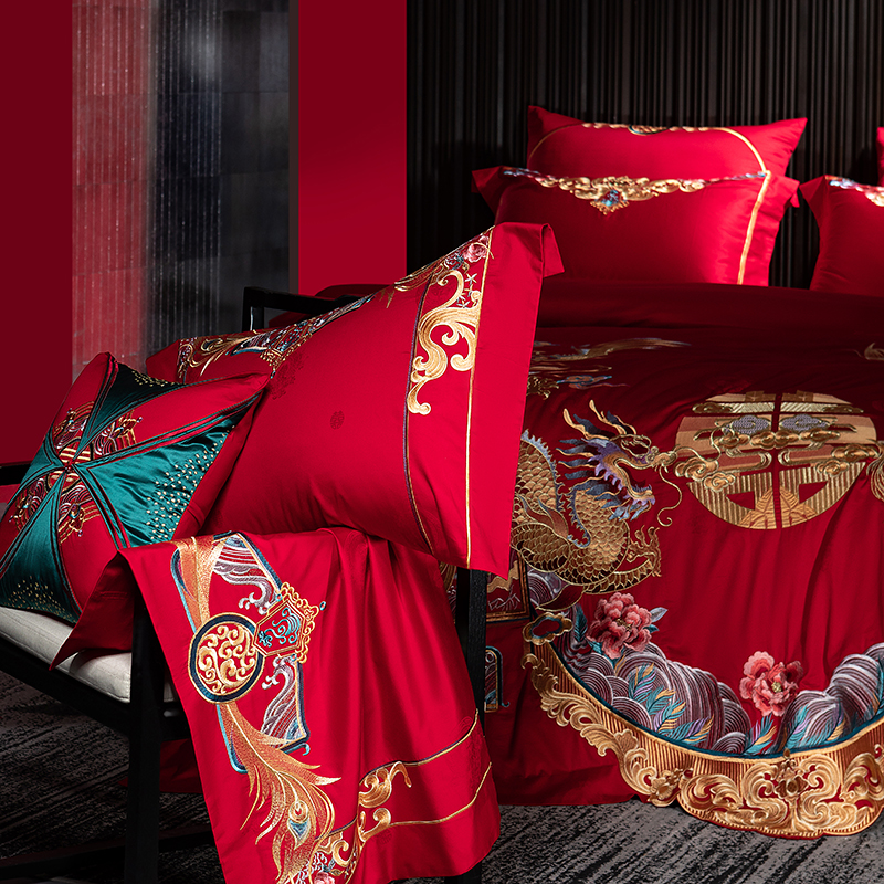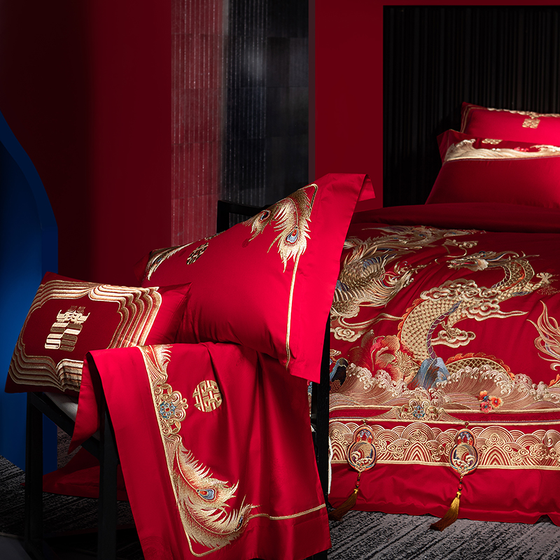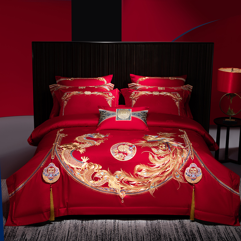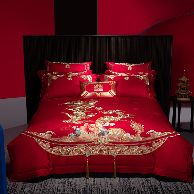 当前位置: 91家纺网 > 商品网购 > 床品套件 > 四件套 > 婚庆四件套 > 佳汐蓝家纺 2024新款全棉100支贡缎提花婚庆四件套系列 龙凤祥和