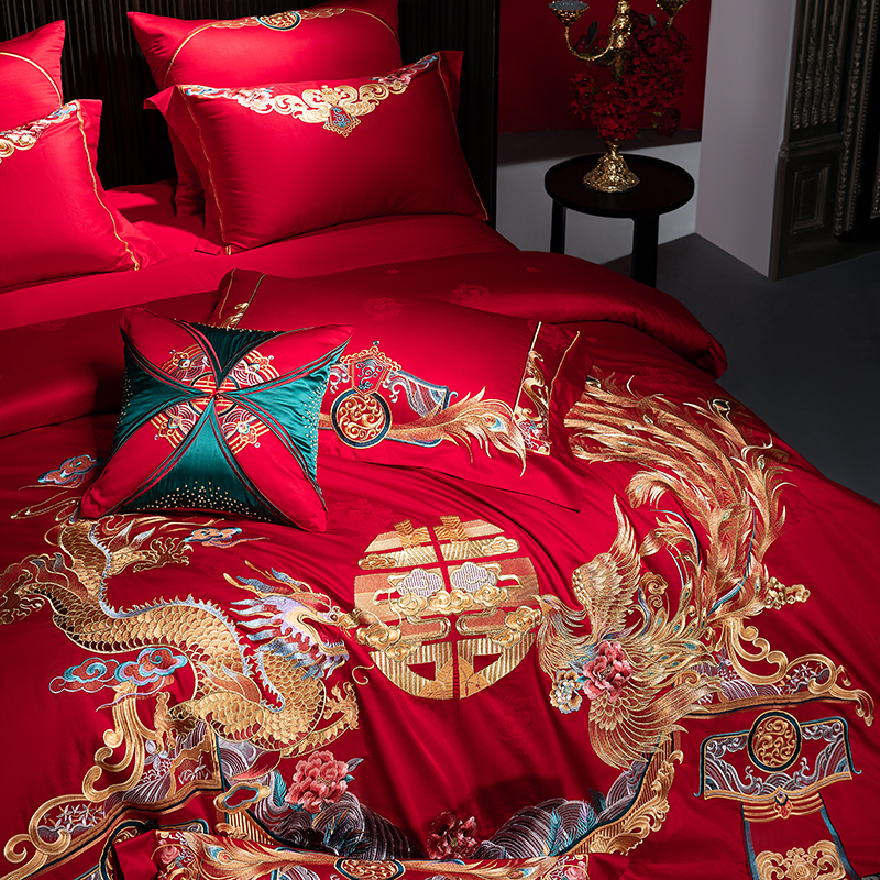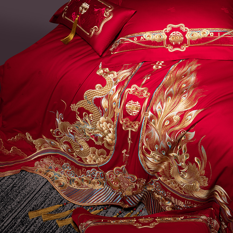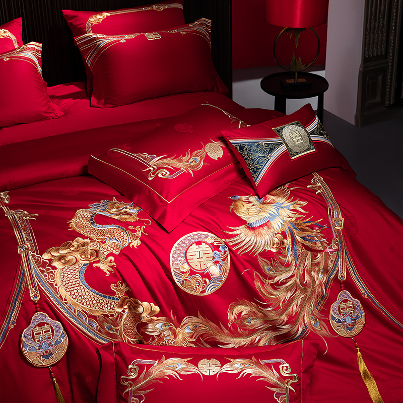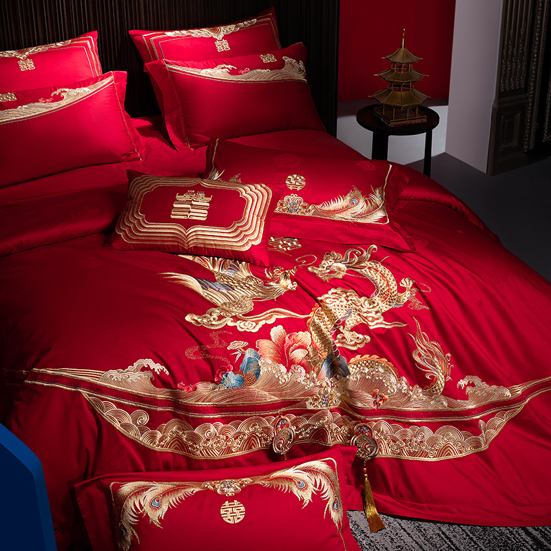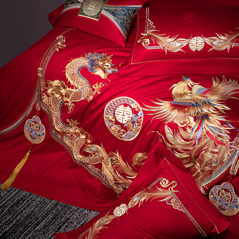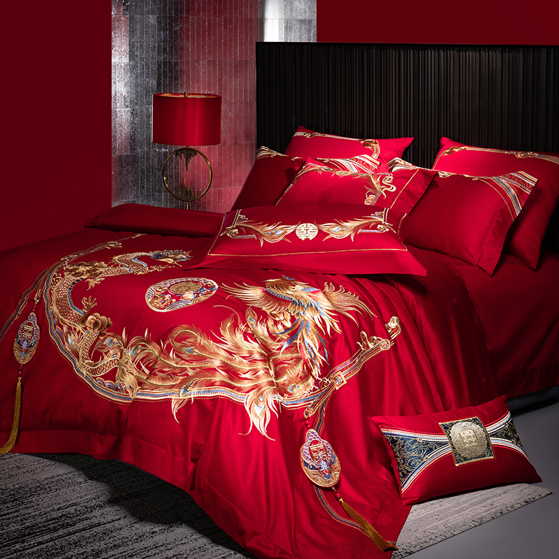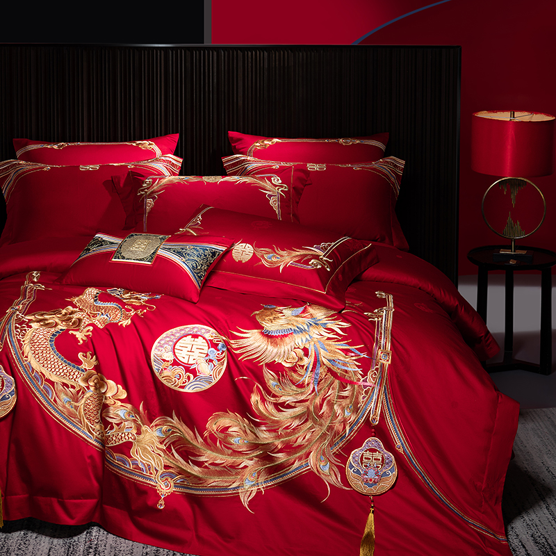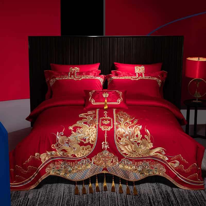 当前位置: 91家纺网 > 商品网购 > 床品套件 > 四件套 > 婚庆四件套 > 佳汐蓝家纺 2024新款全棉100支贡缎提花婚庆四件套系列 龙凤祥和