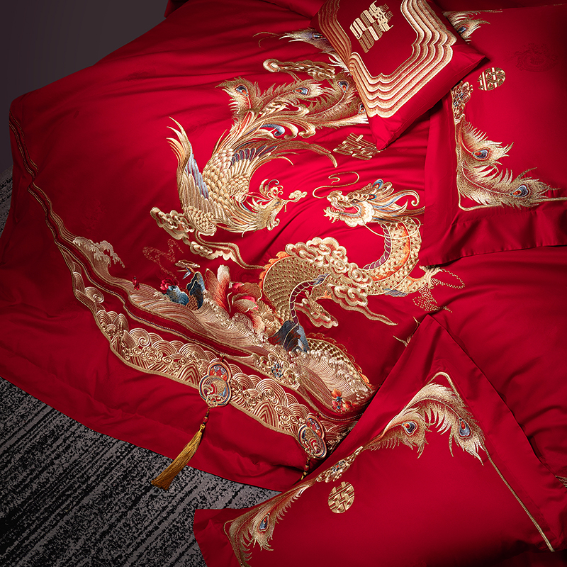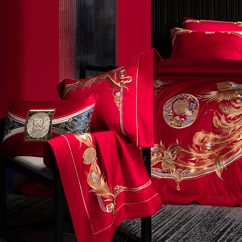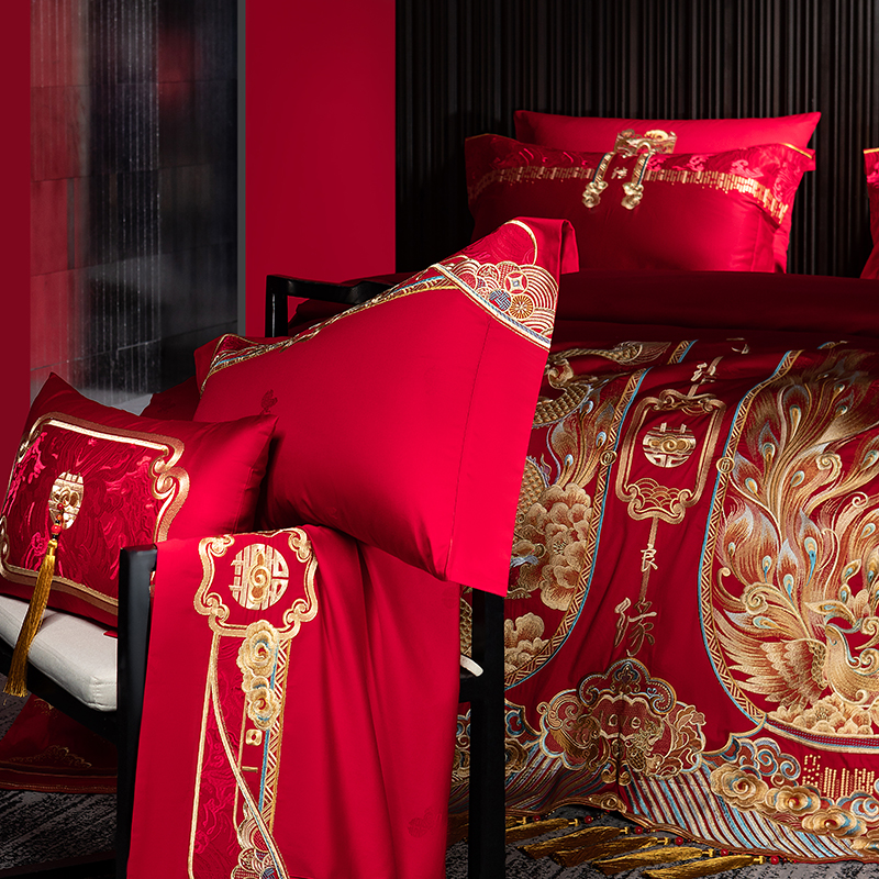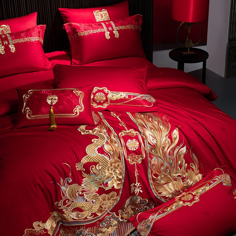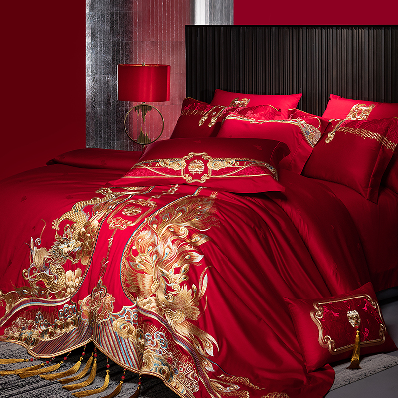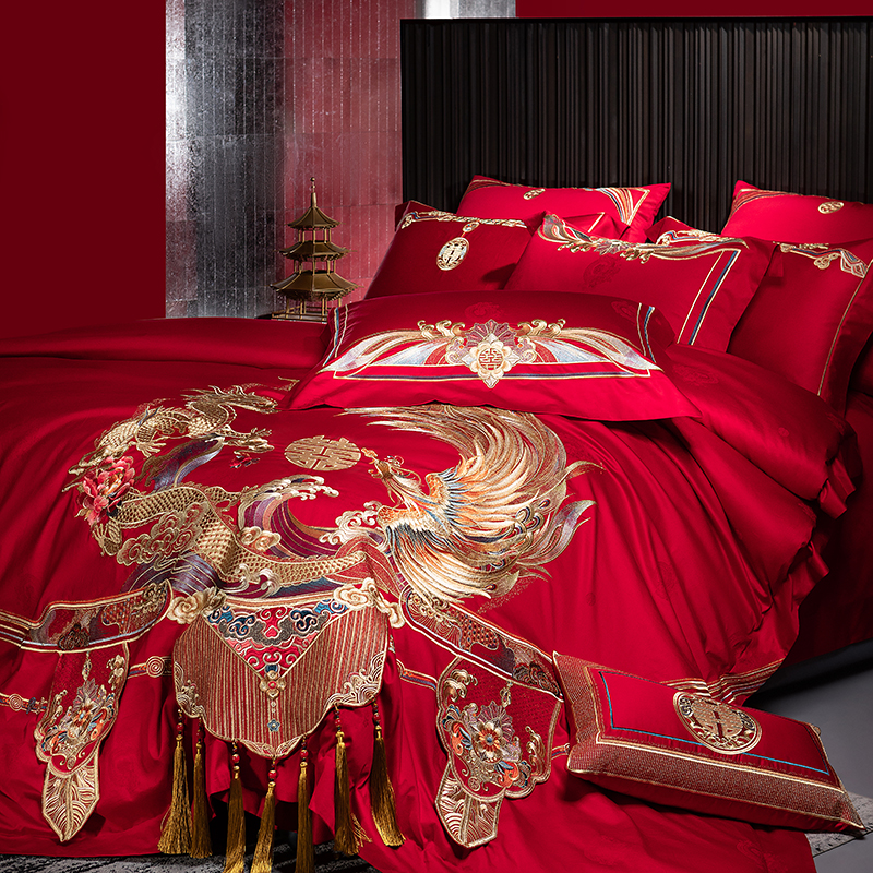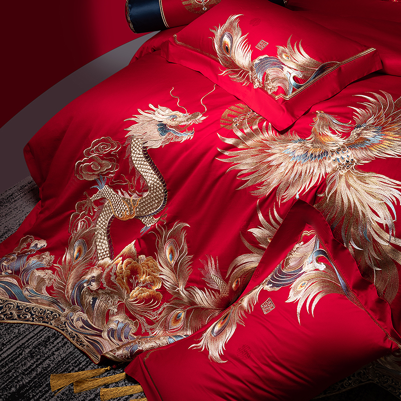 当前位置: 91家纺网 > 商品网购 > 床品套件 > 四件套 > 婚庆四件套 > 佳汐蓝家纺 2024新款全棉100支贡缎提花婚庆四件套系列 龙凤祥和