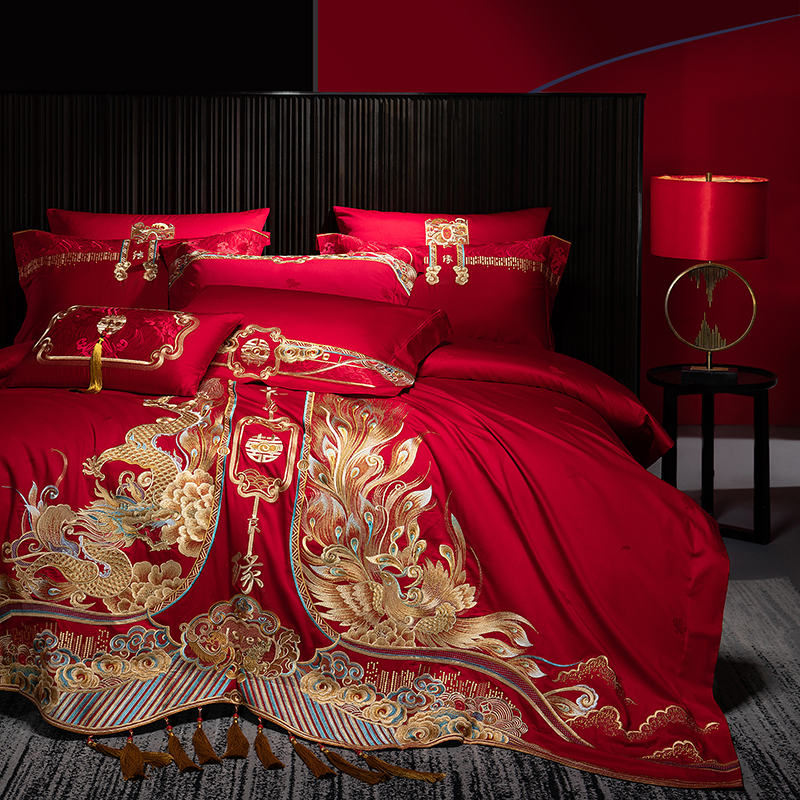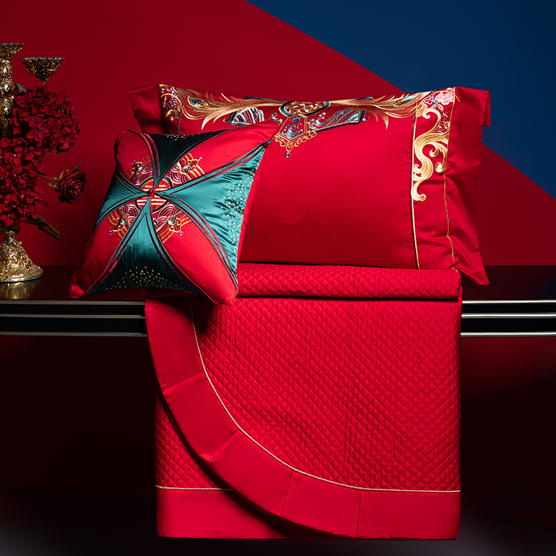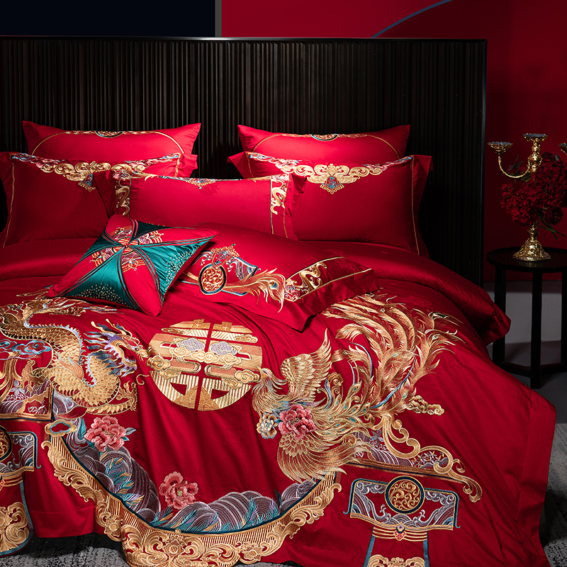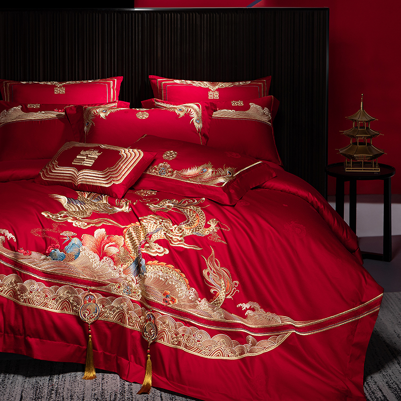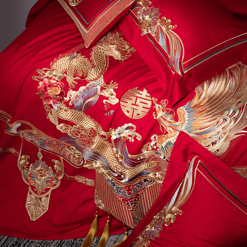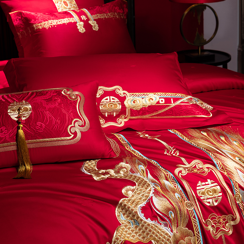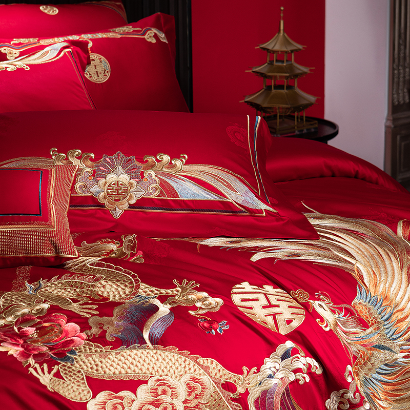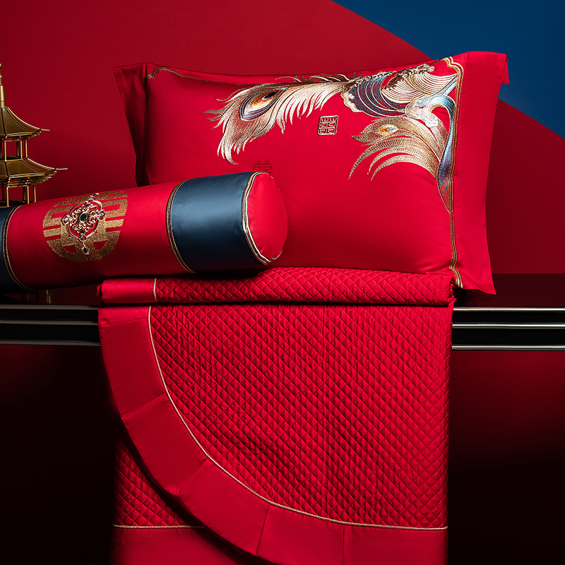 当前位置: 91家纺网 > 商品网购 > 床品套件 > 四件套 > 婚庆四件套 > 佳汐蓝家纺 2024新款全棉100支贡缎提花婚庆四件套系列 龙凤祥和