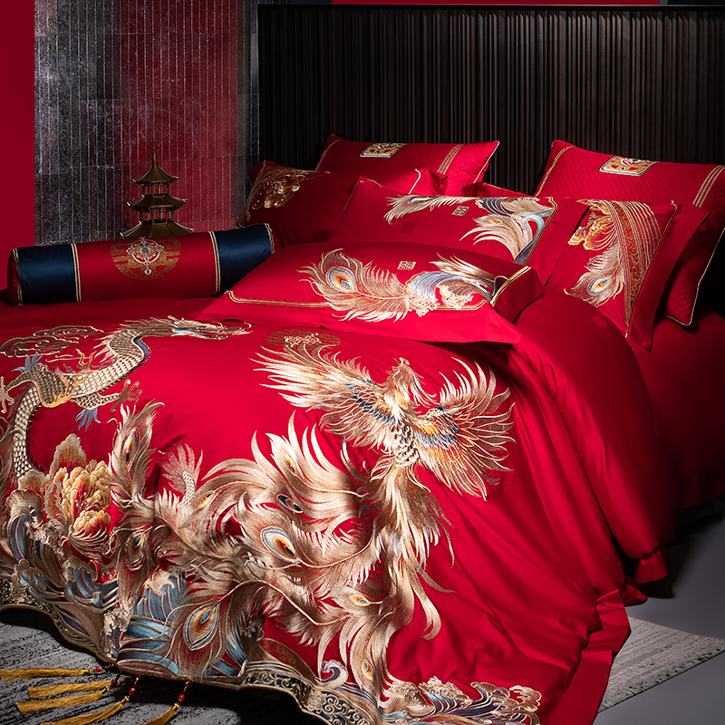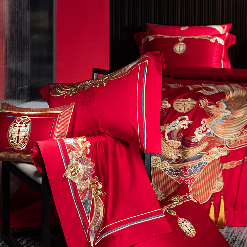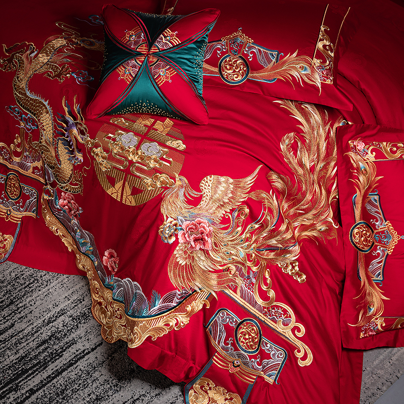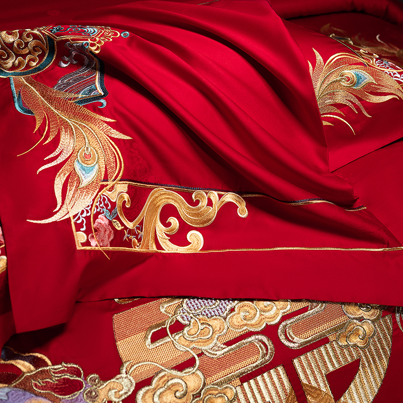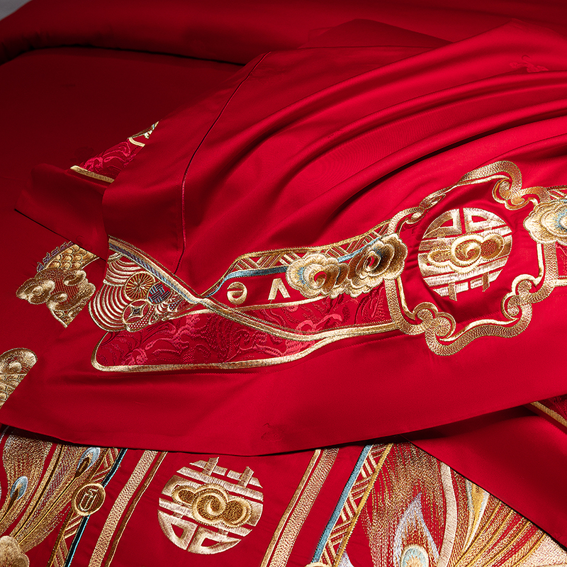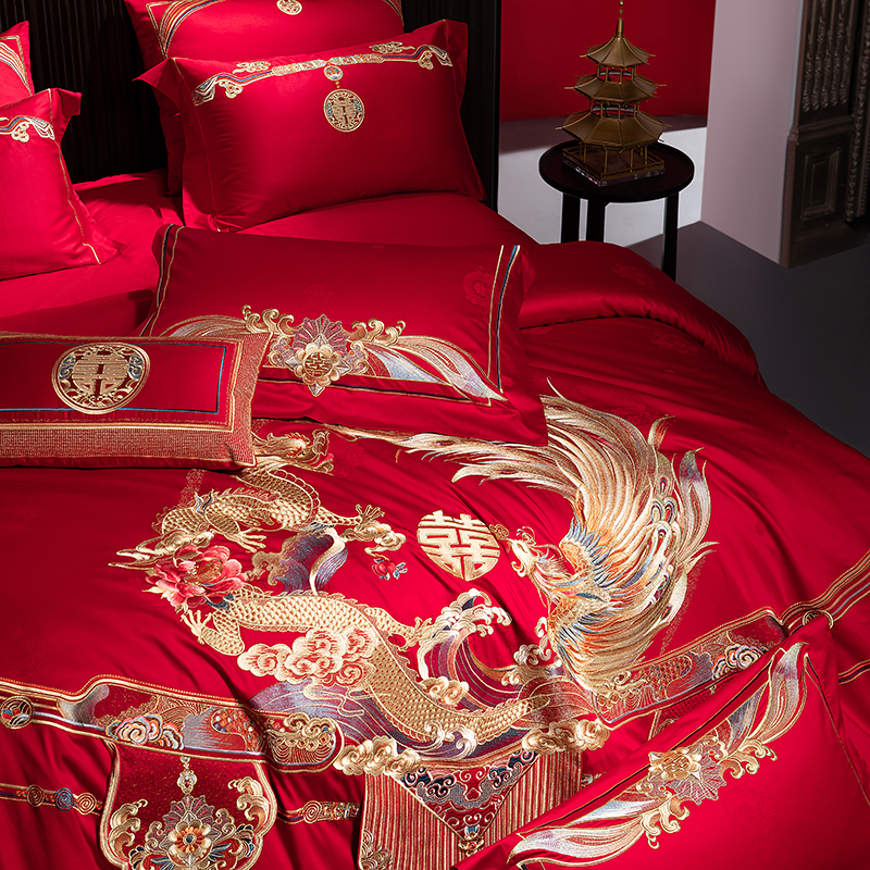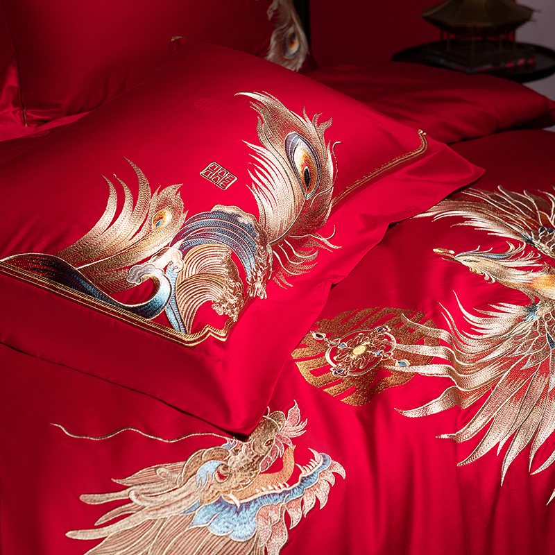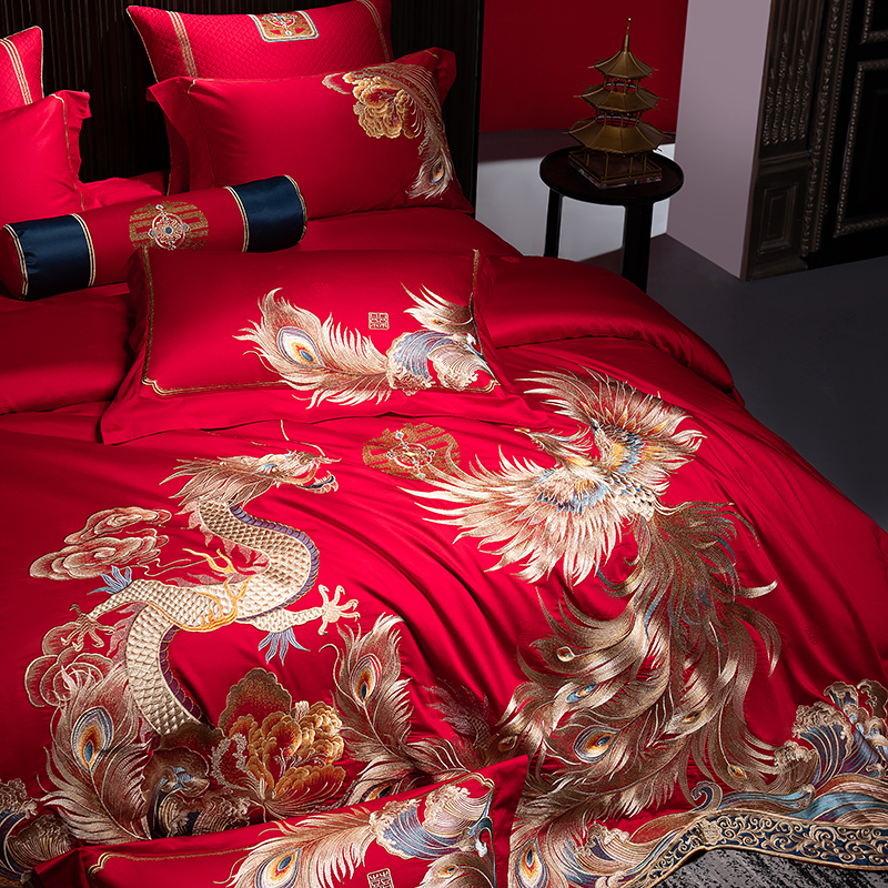 当前位置: 91家纺网 > 商品网购 > 床品套件 > 四件套 > 婚庆四件套 > 佳汐蓝家纺 2024新款全棉100支贡缎提花婚庆四件套系列 龙凤祥和