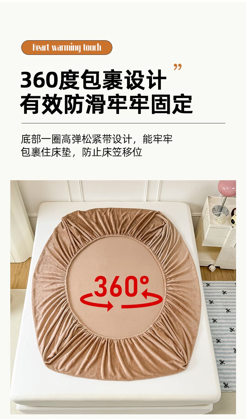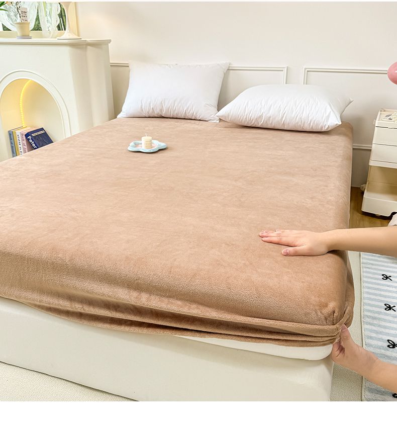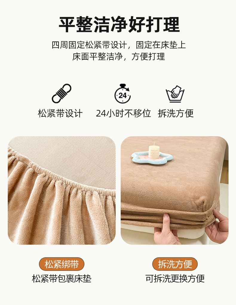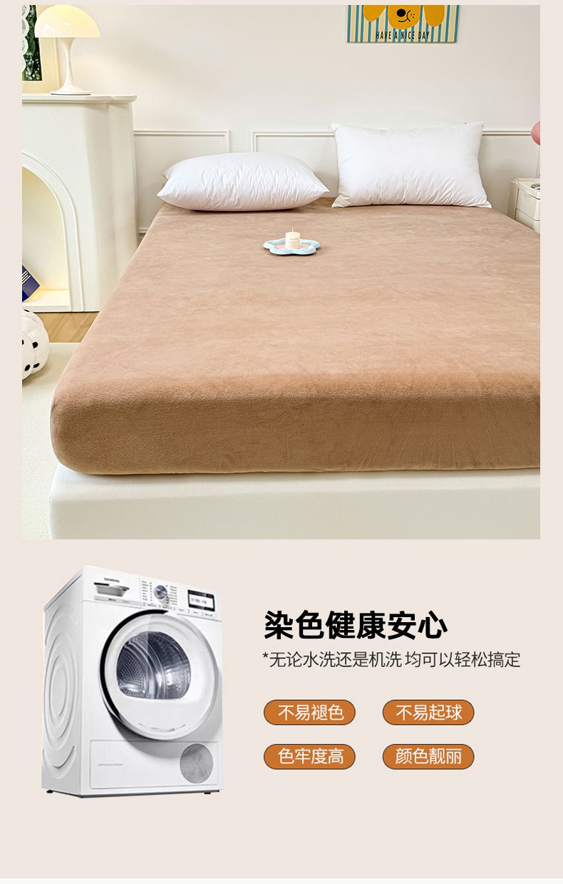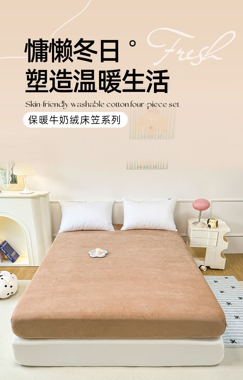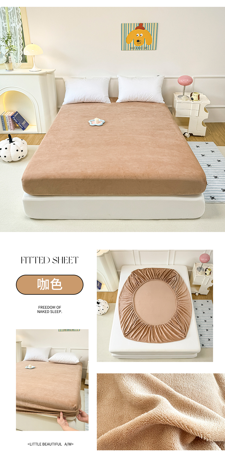 商品名称:觅妮家纺 2025新款全消光200g保暖牛奶绒纯色简约款床笠 咖色
