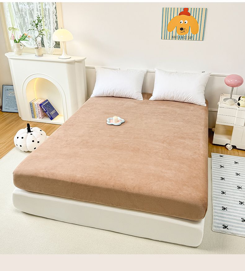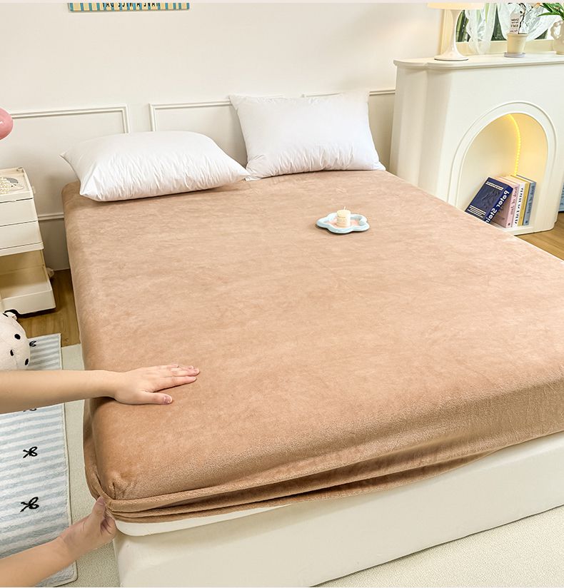 觅妮家纺 2025新款全消光200g保暖牛奶绒纯色简约款床笠 咖色