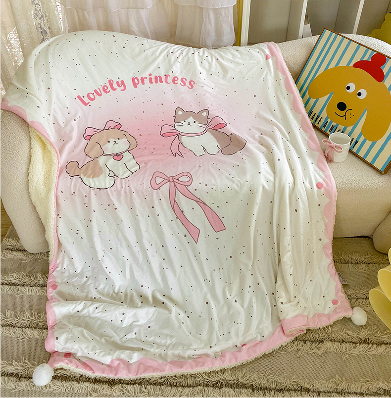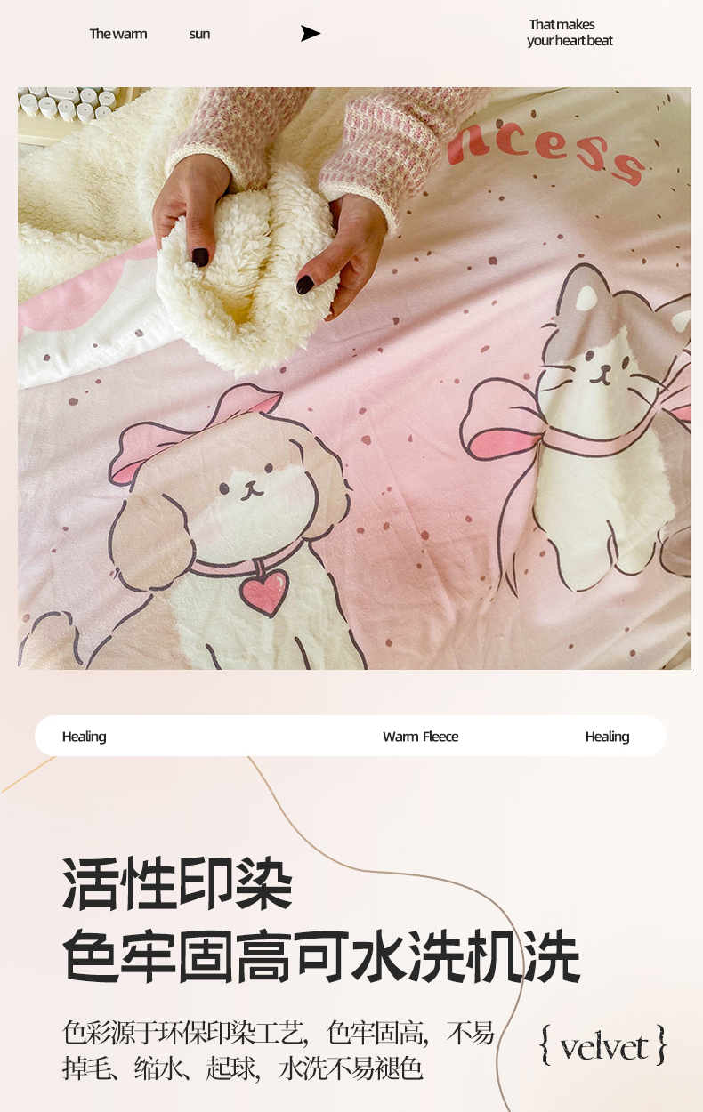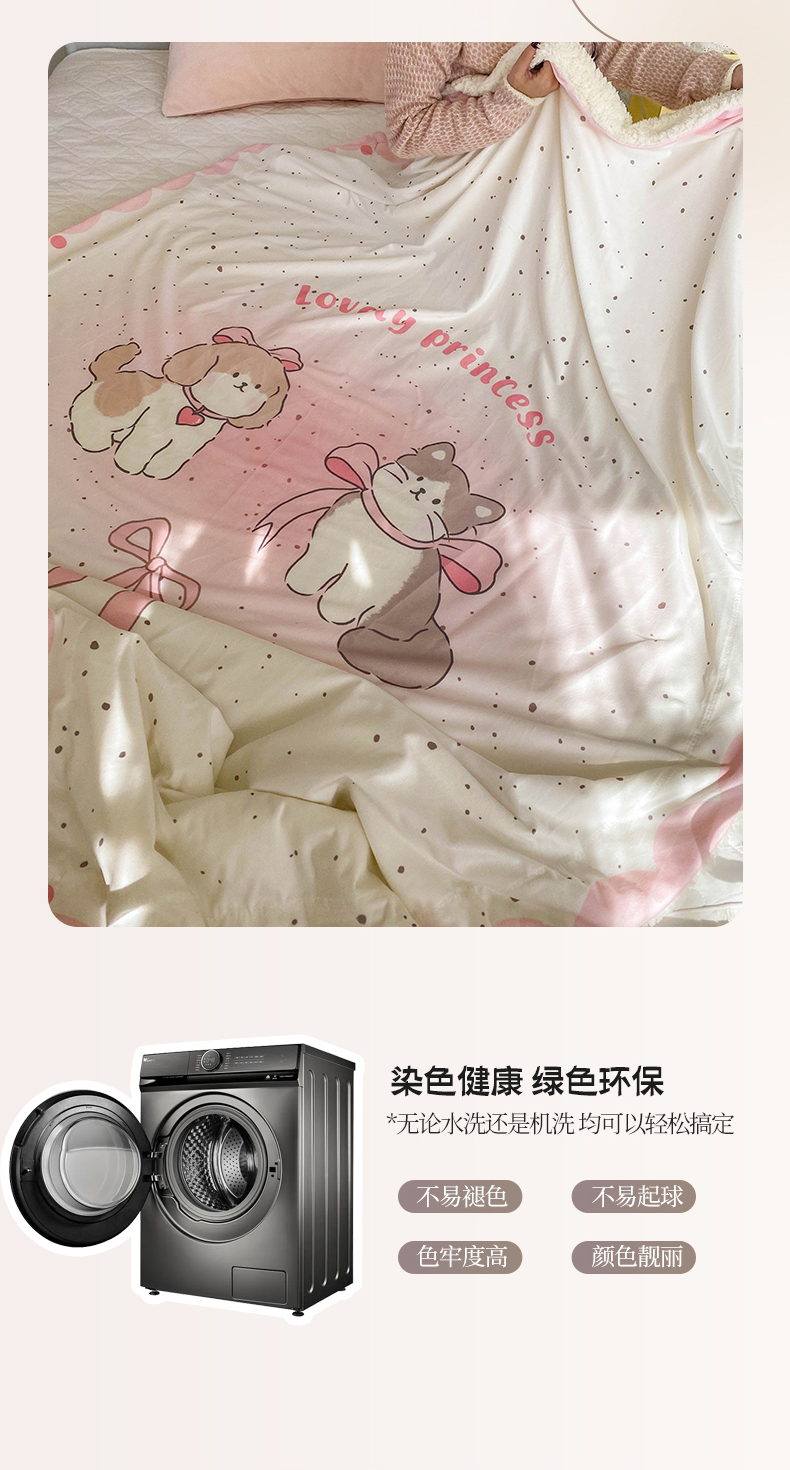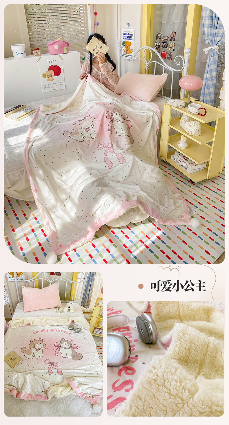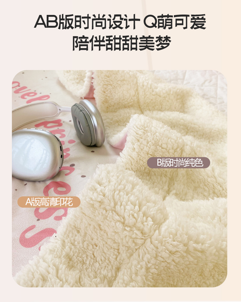 商品名称:潮邦创意家居 2025新款印花大版羊羔绒球-BIBY KELY系列羊绒绒毯 可爱小公主