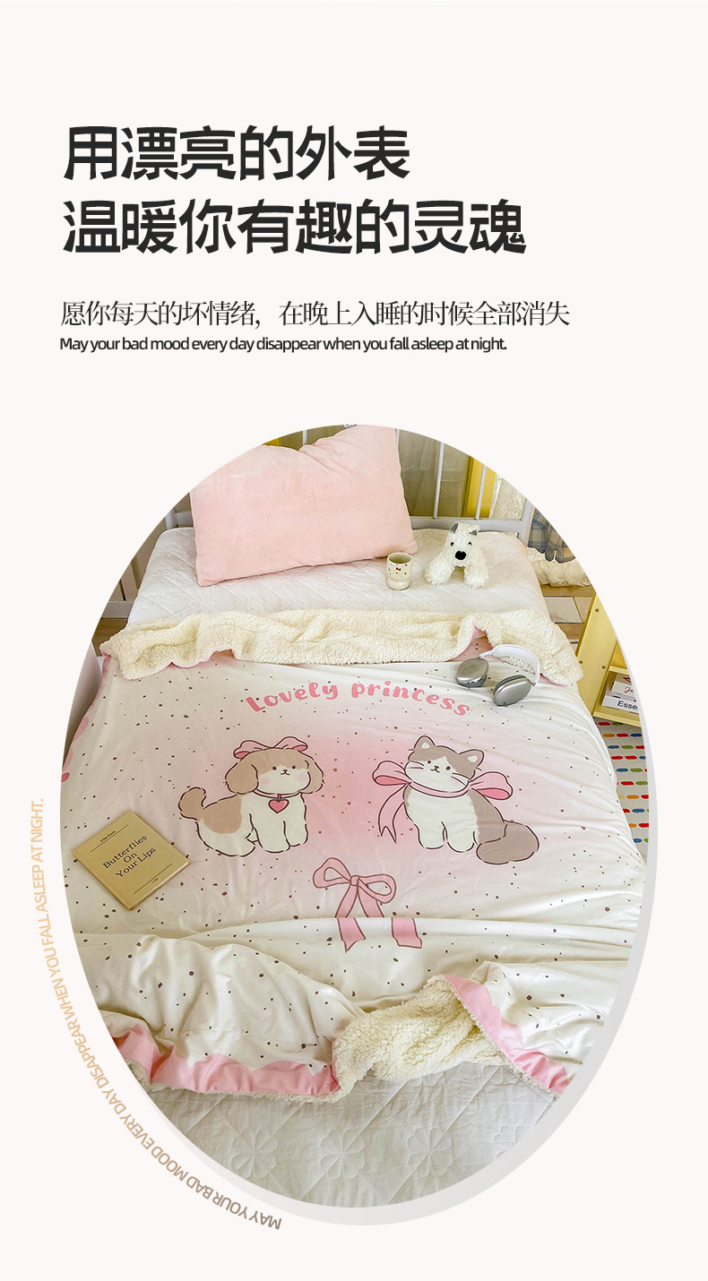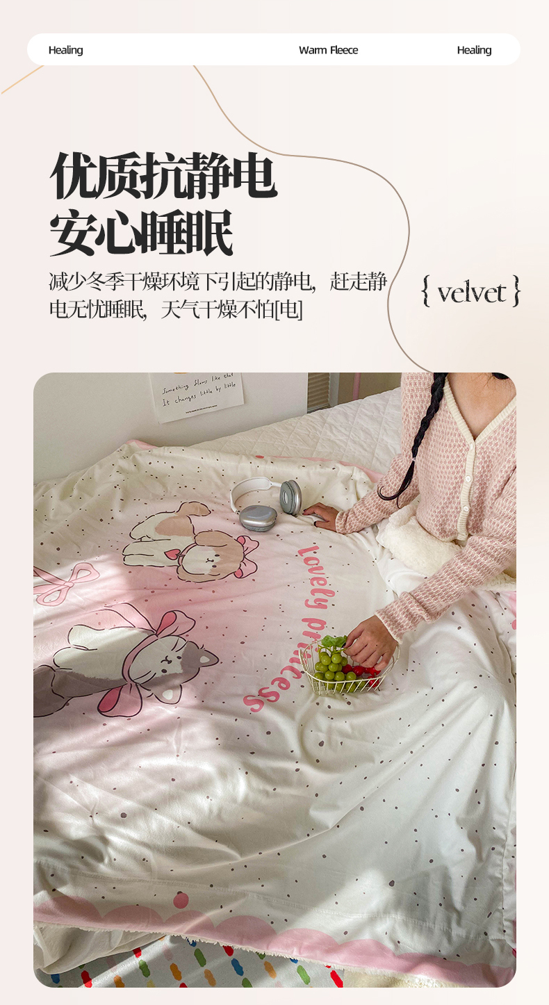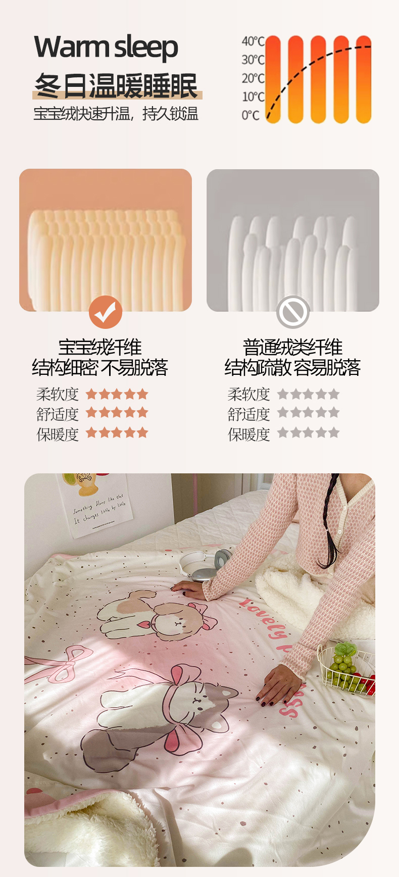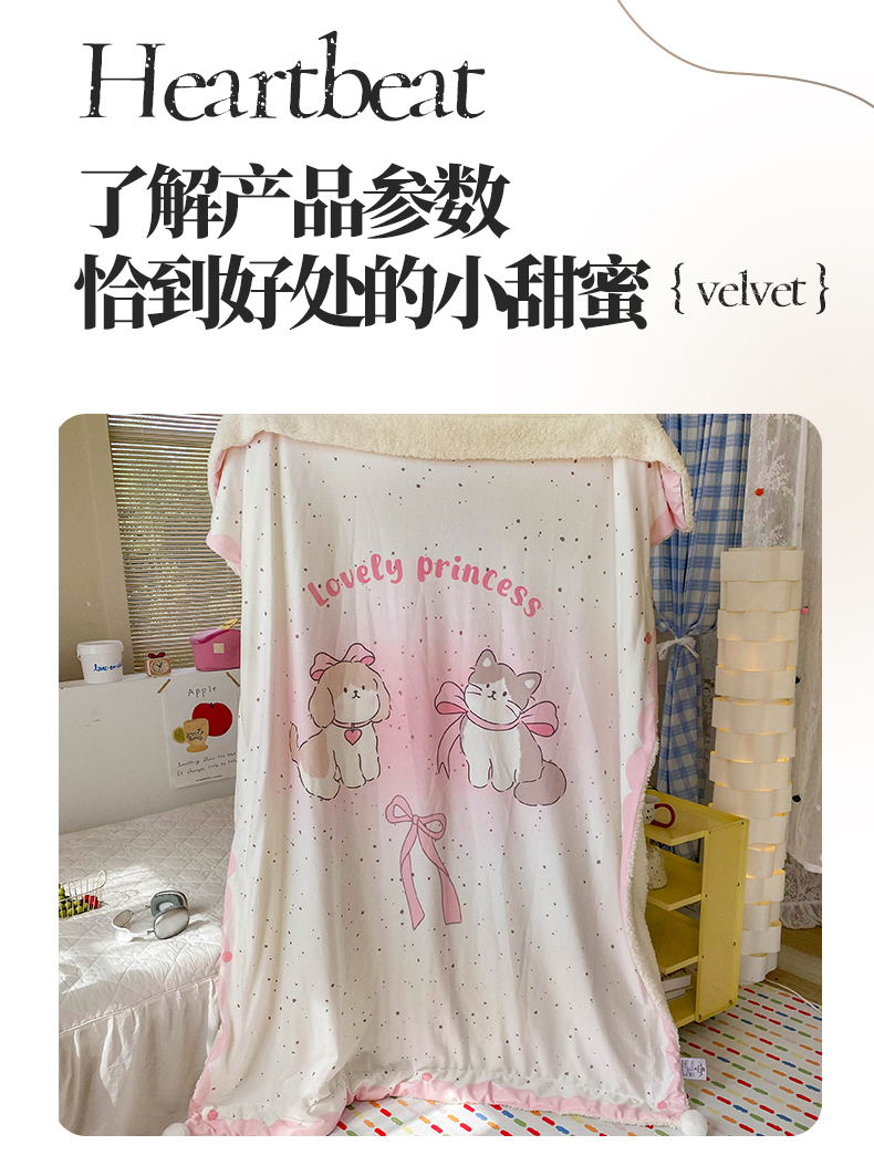 商品名称:潮邦创意家居 2025新款印花大版羊羔绒球-BIBY KELY系列羊绒绒毯 可爱小公主