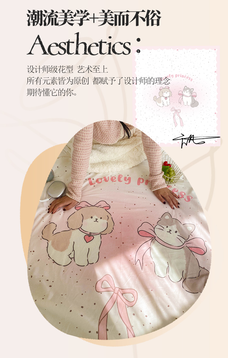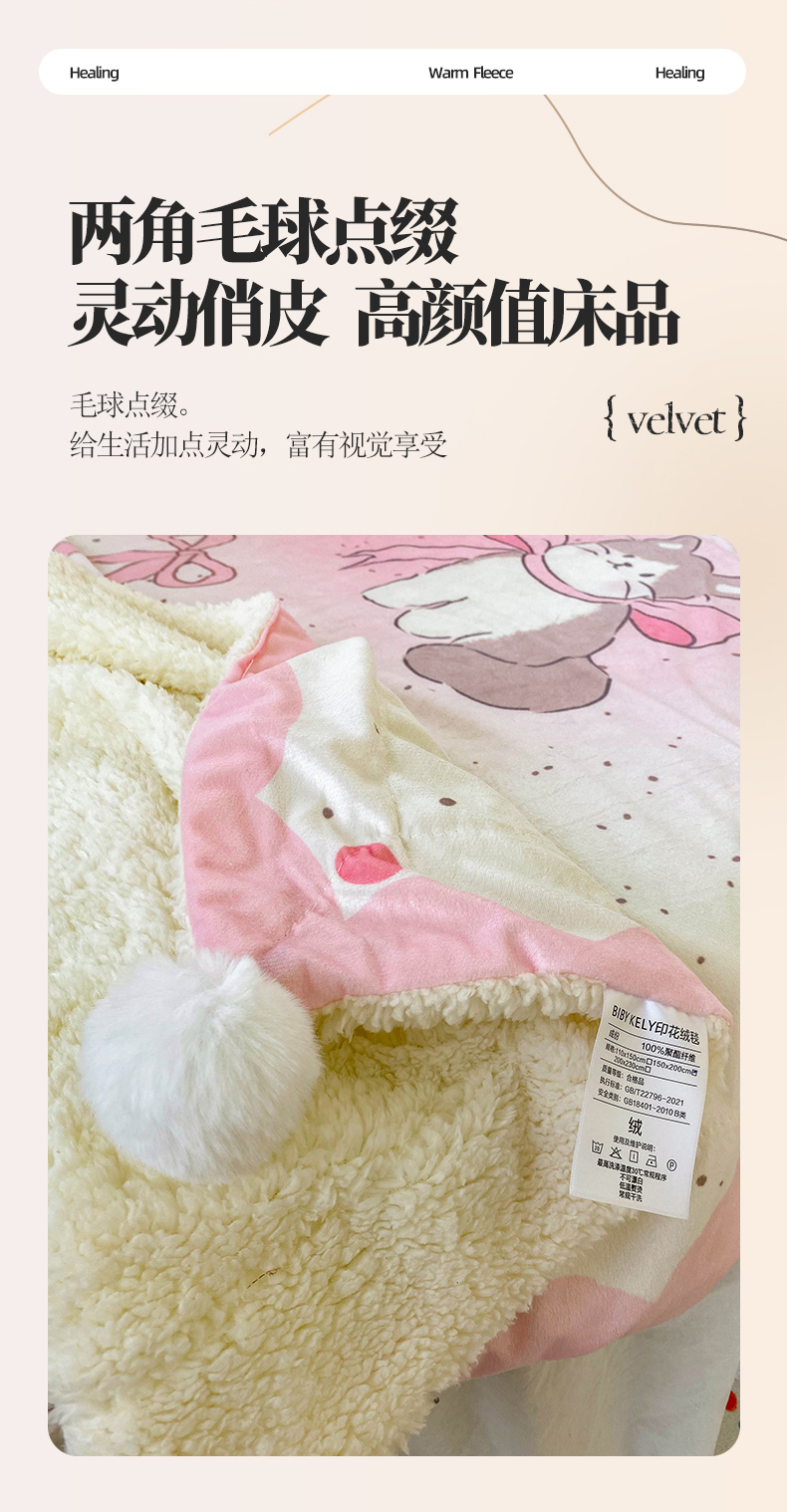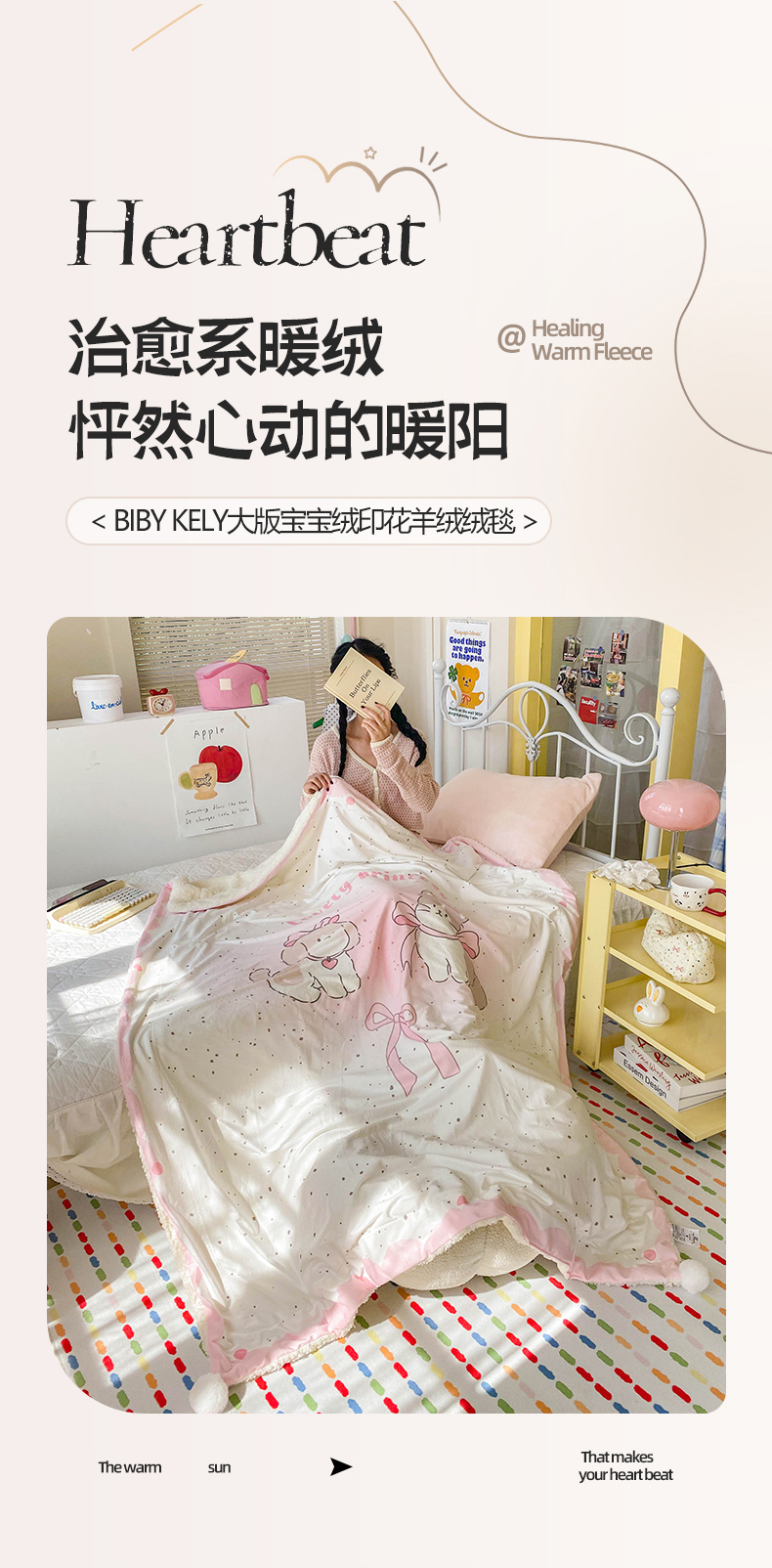 潮邦创意家居 2025新款印花大版羊羔绒球-BIBY KELY系列羊绒绒毯 可爱小公主