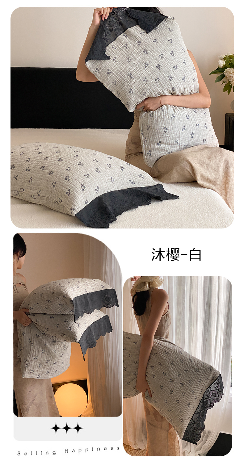 商品名称:麻依 2024新款法式四层纱布枕套花边款 沐樱-白
