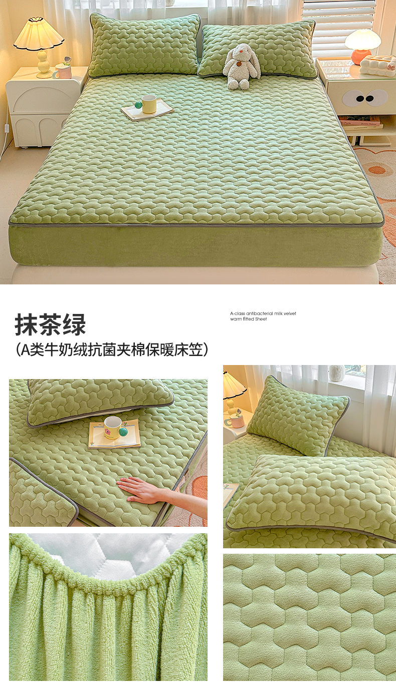 商品名称:曼之夏 2024新款A类牛奶绒抗菌夹棉保暖床笠 抹茶绿