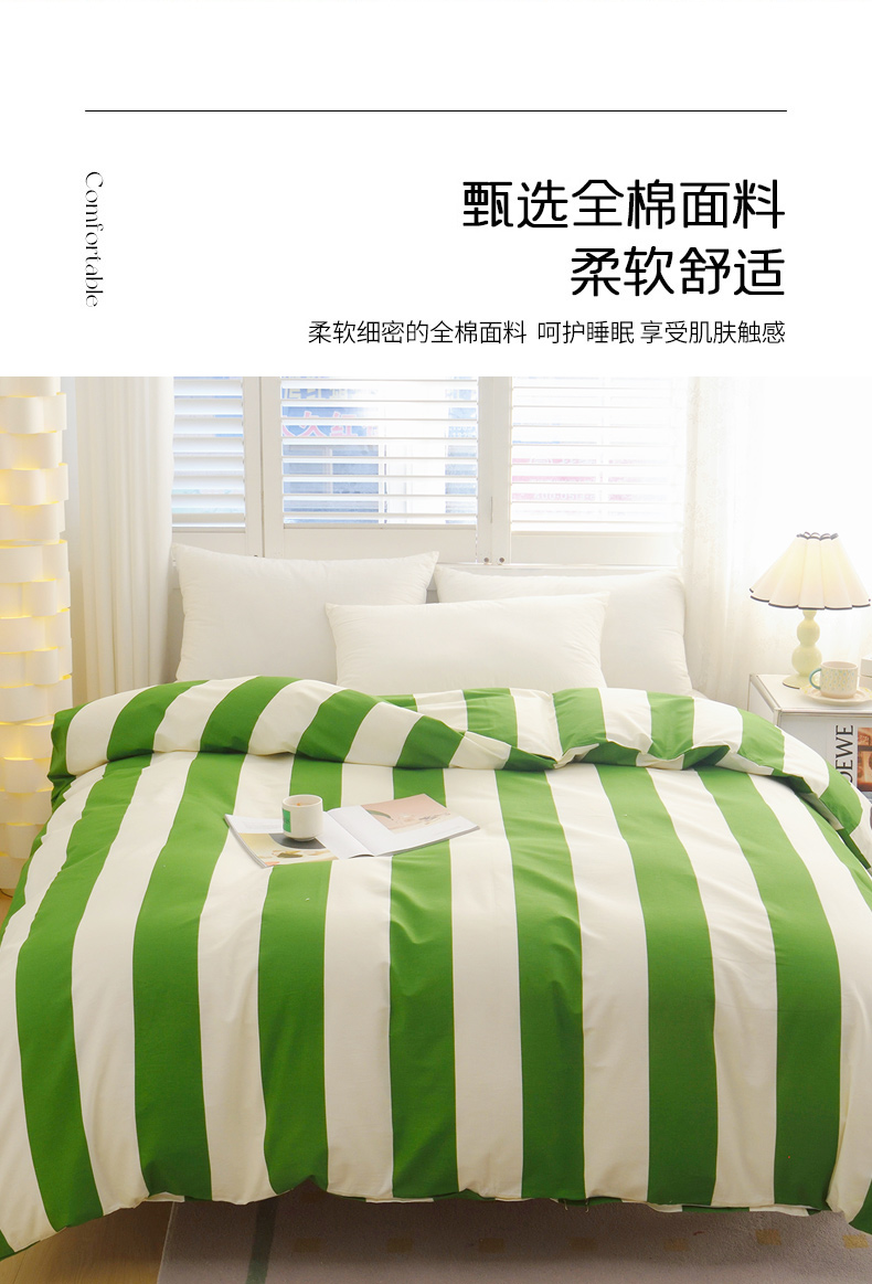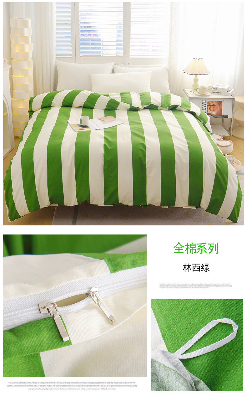 (总)启优 全棉被套纯棉被套小清新纯色全棉单件被套,林西红,秘境粉,秘境灰,林西绿,秘境黑,秘境绿,黑绿条纹,五彩世界,七彩条纹,黑白条纹,条纹紫绿