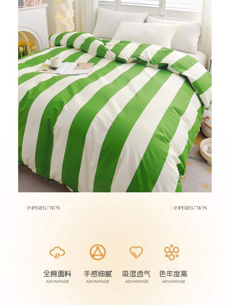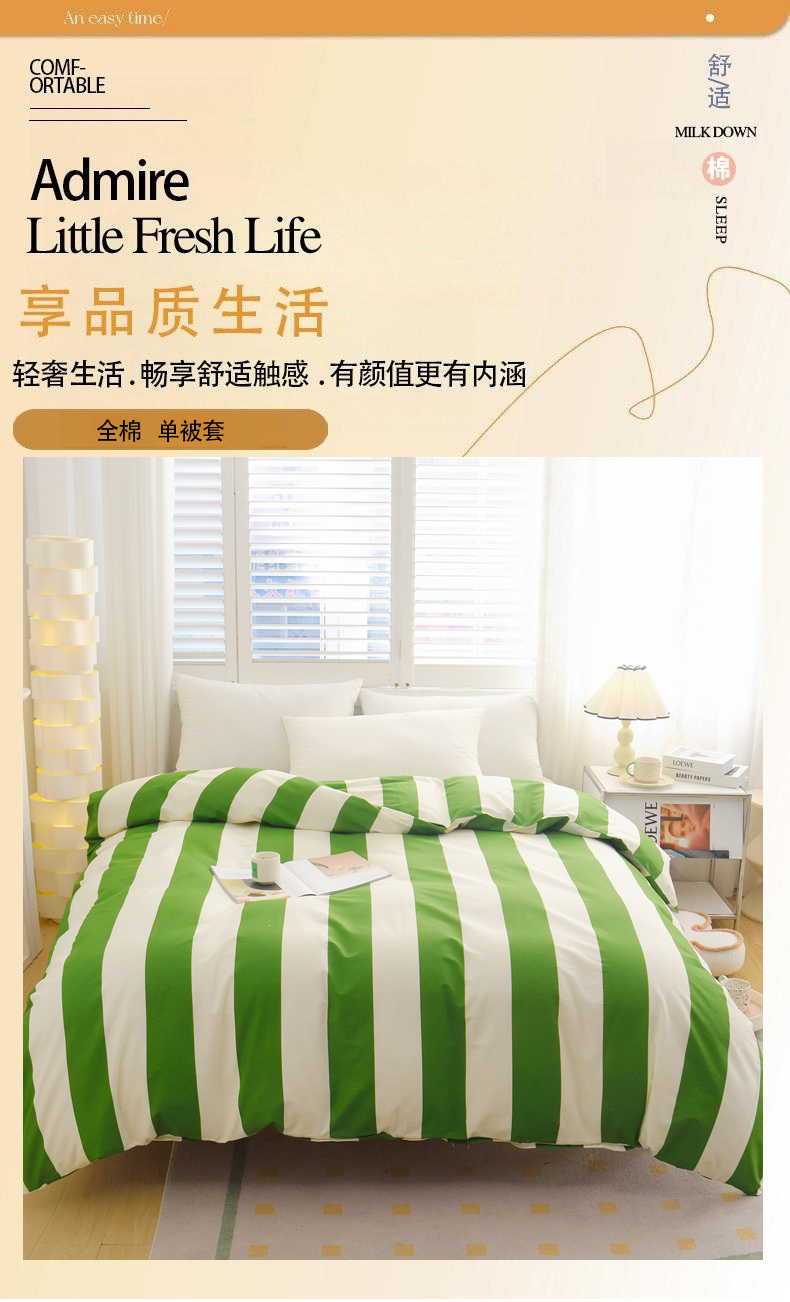 (总)启优 新款全棉被套纯棉被套小清新纯色全棉单件被套,黑白条纹,黑绿条纹,林西红,林西绿,秘境粉,秘境黑,秘境灰,秘境桔,秘境绿,七彩条纹,条纹紫绿,五彩世界