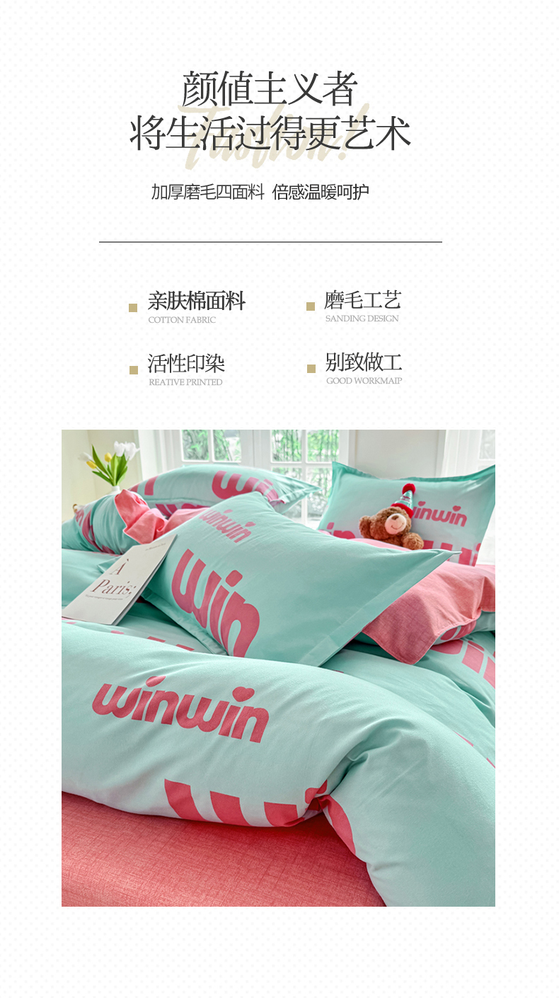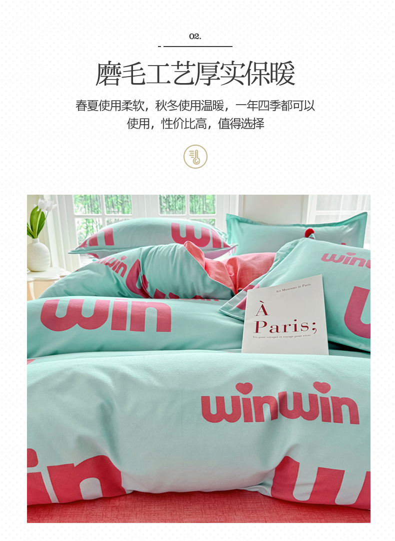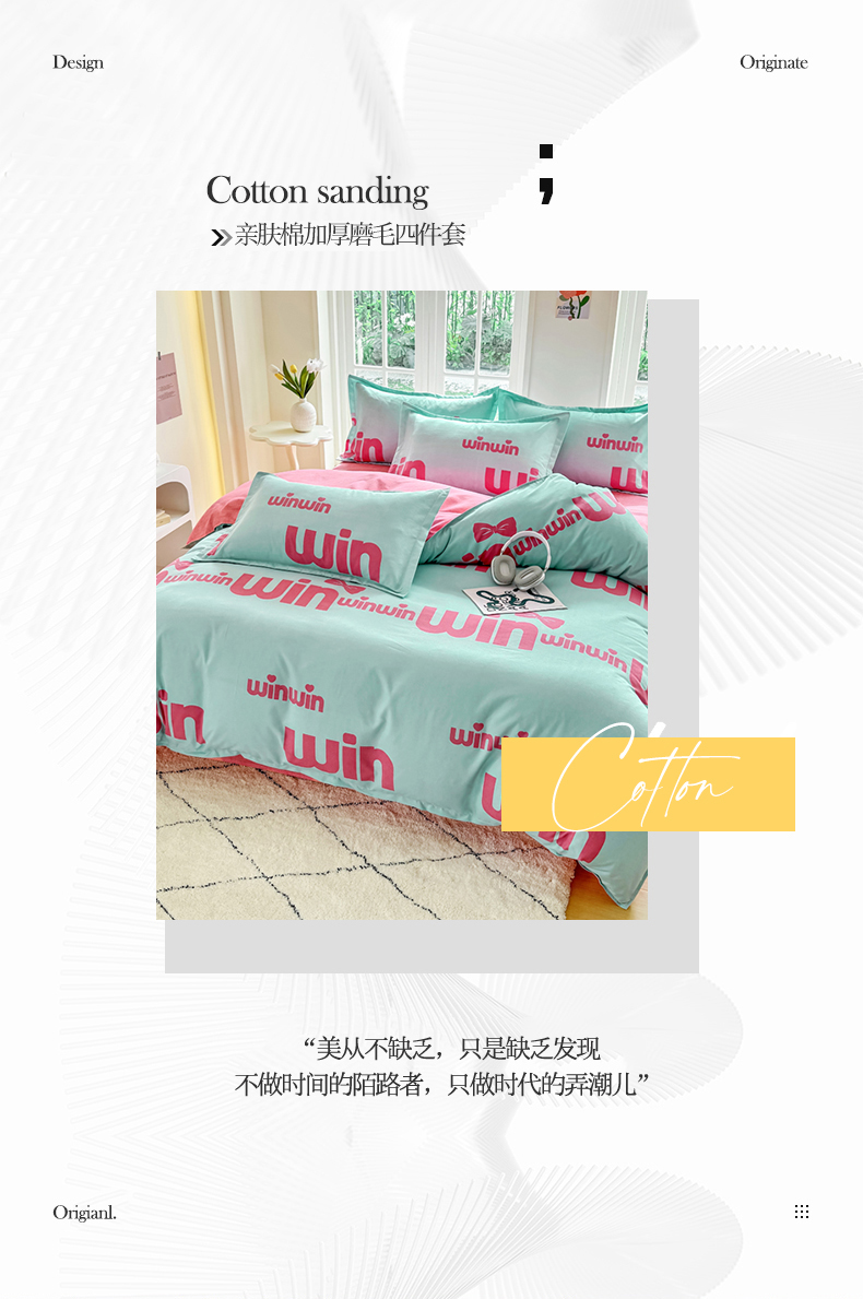 当前位置: 91家纺网 > 商品网购 > 床品套件 > 四件套 > 普通磨毛四件套 > 正莱欣 2025新品加厚生态棉磨毛四件套高克重植物羊绒床单款床笠款四件套大量现货 时尚乐园-兰