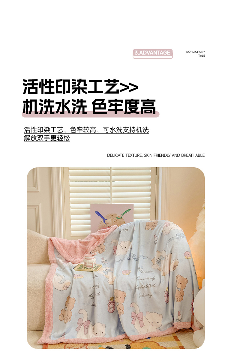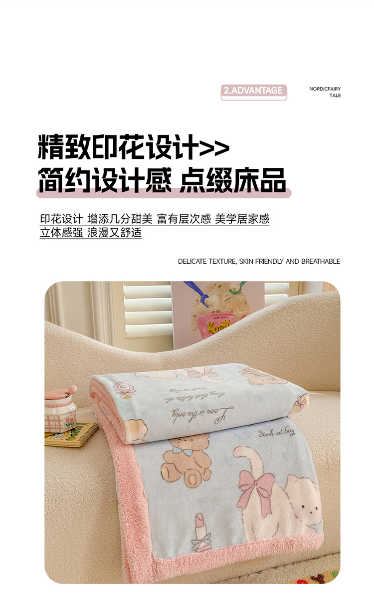 商品名称:眷恋家纺 2024新款高克重牛奶绒印花羊羔绒毛毯毯子 猫咪与熊