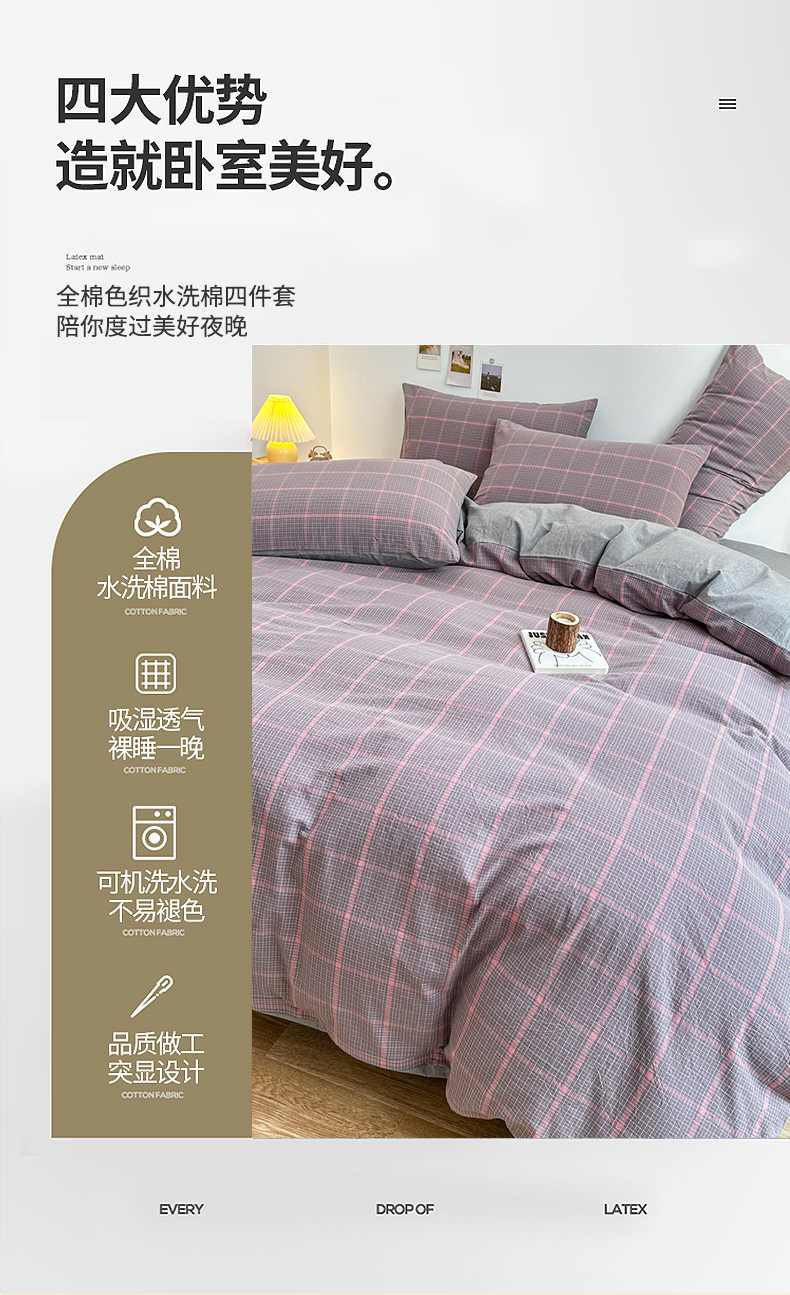(总)美梦莱 2023新款A类全棉色织水洗棉四件套(支持一件代发)