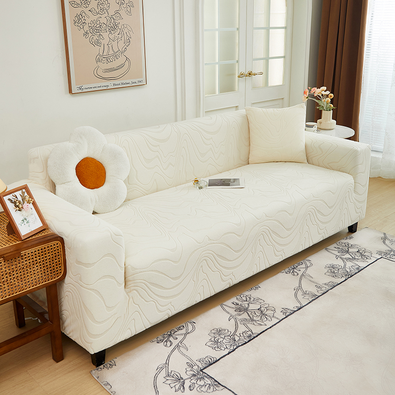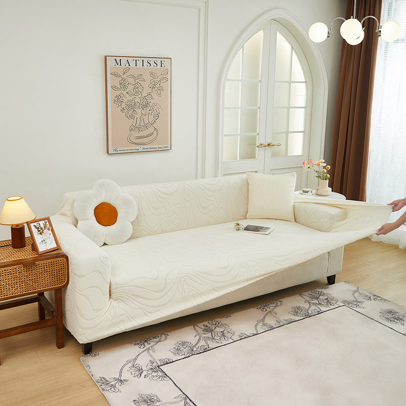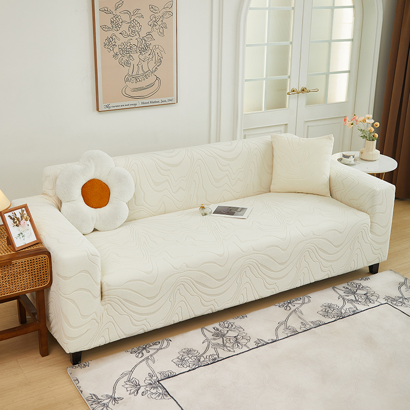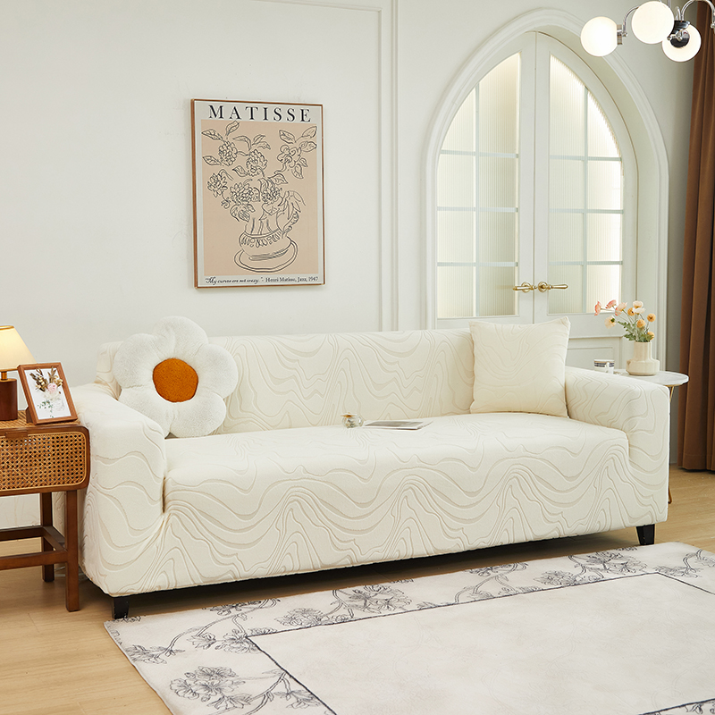 丝绮鹿 2024新款曲意松紧款沙发套(三人图) 米白