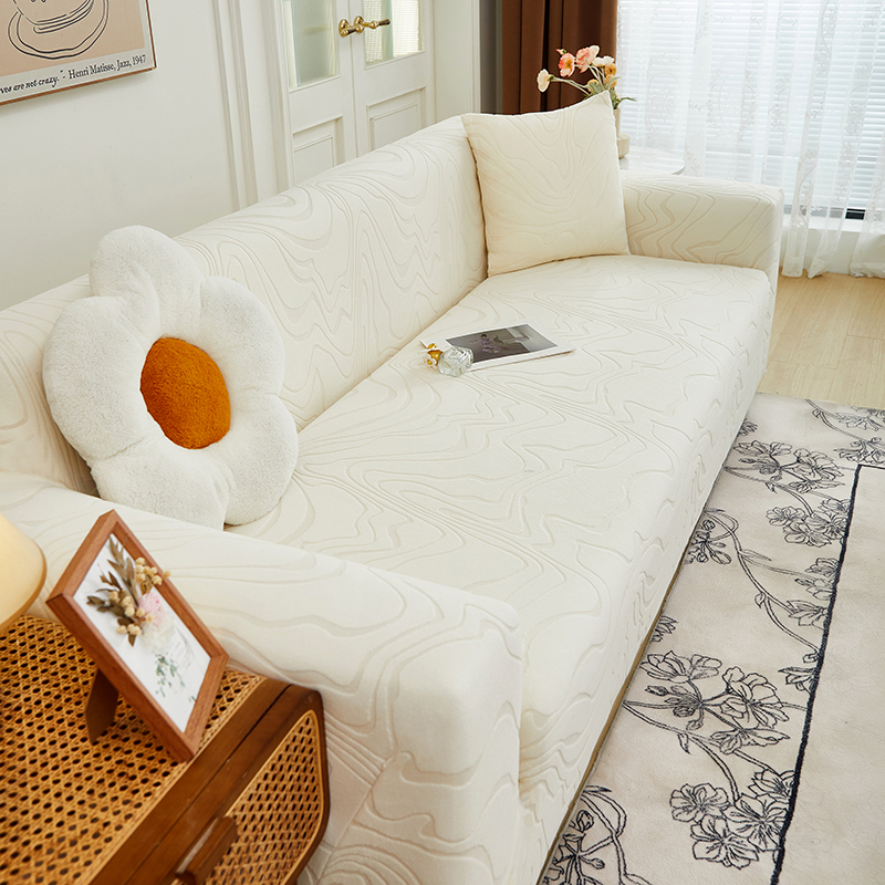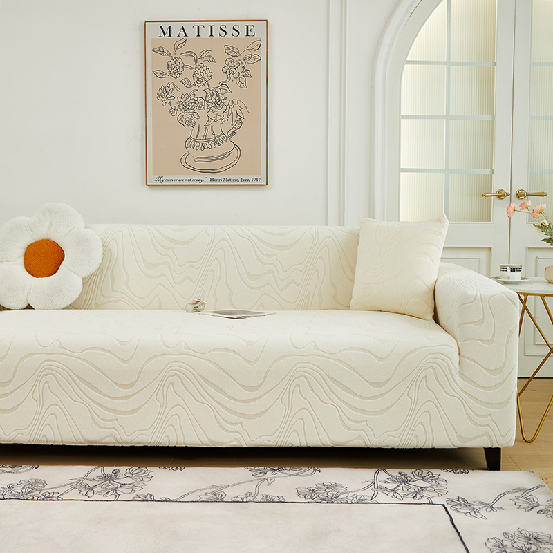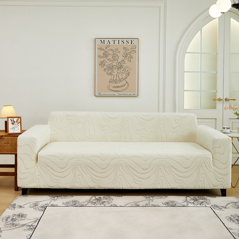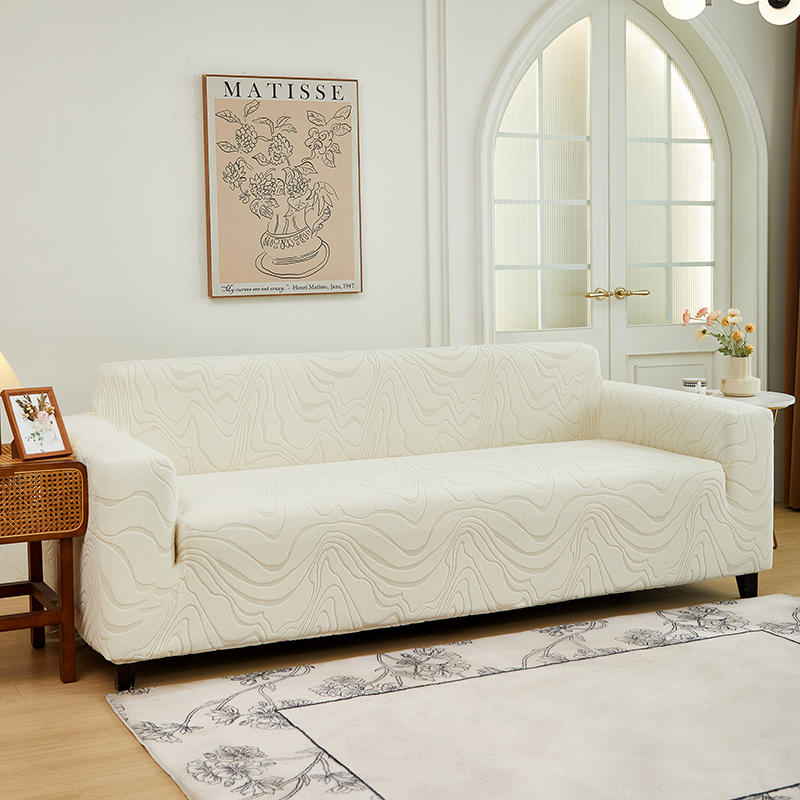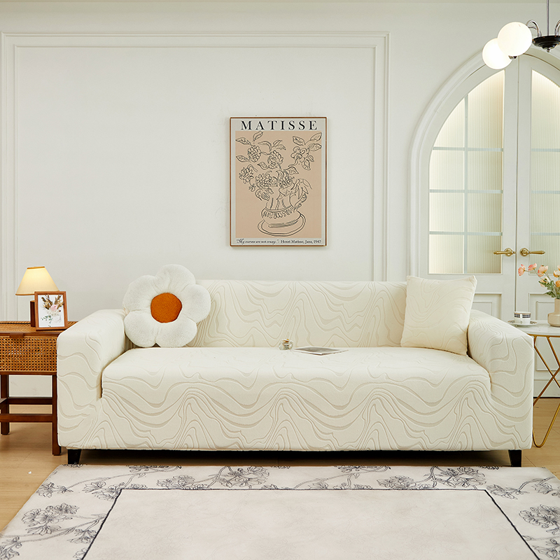 商品名称:丝绮鹿 2024新款曲意松紧款沙发套(三人图) 米白