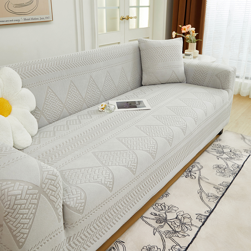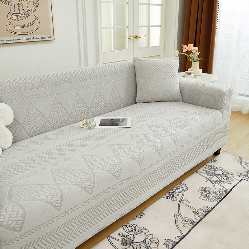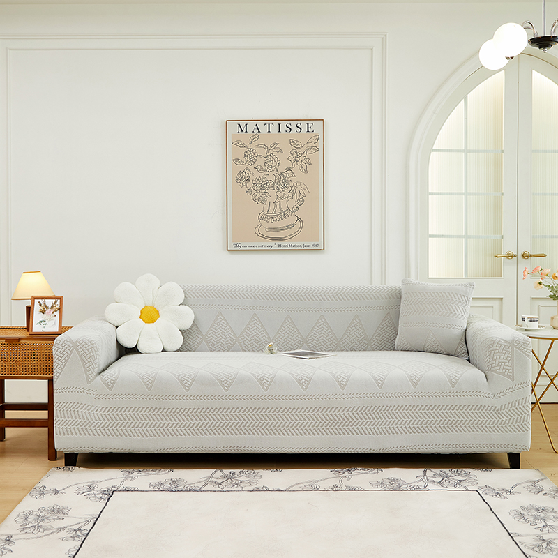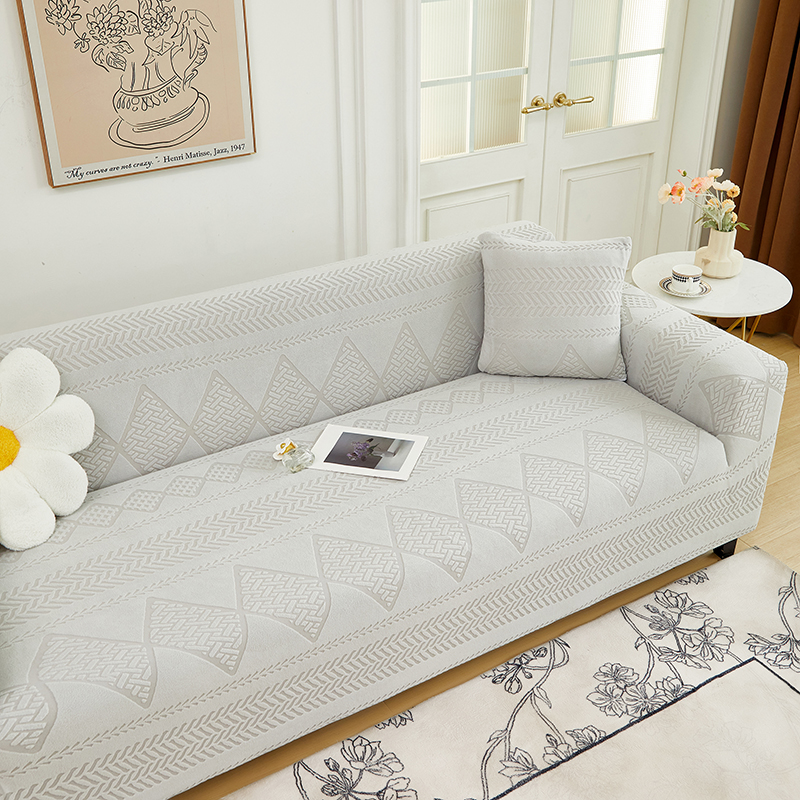 丝绮鹿 2024新款菲亚松紧款沙发套(三人图) 浅灰