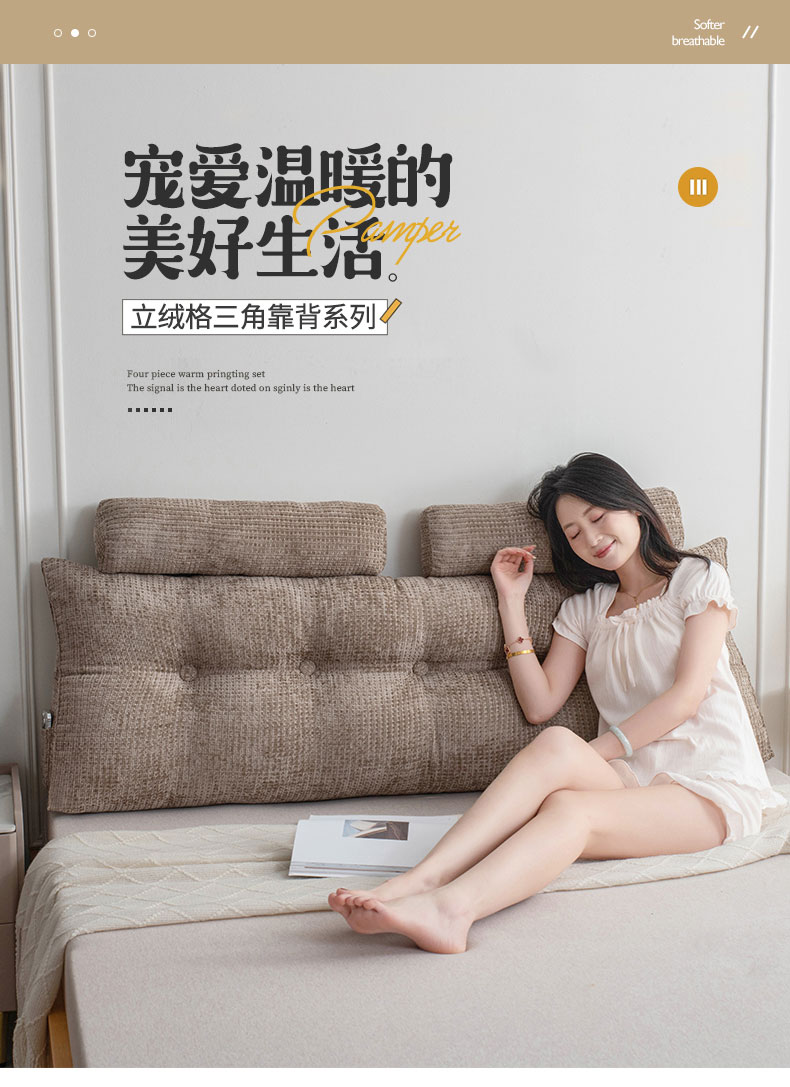 (总)一兰家纺 2024新款泰迪绒三角靠垫床头大靠背腰靠沙发靠背可拆洗-楠妮系列,楠妮-冰霉粉,楠妮-琥珀棕,楠妮-芥末黄,楠妮-咖啡,楠妮-破境白,楠妮-浅系灰,楠妮-蔚蓝