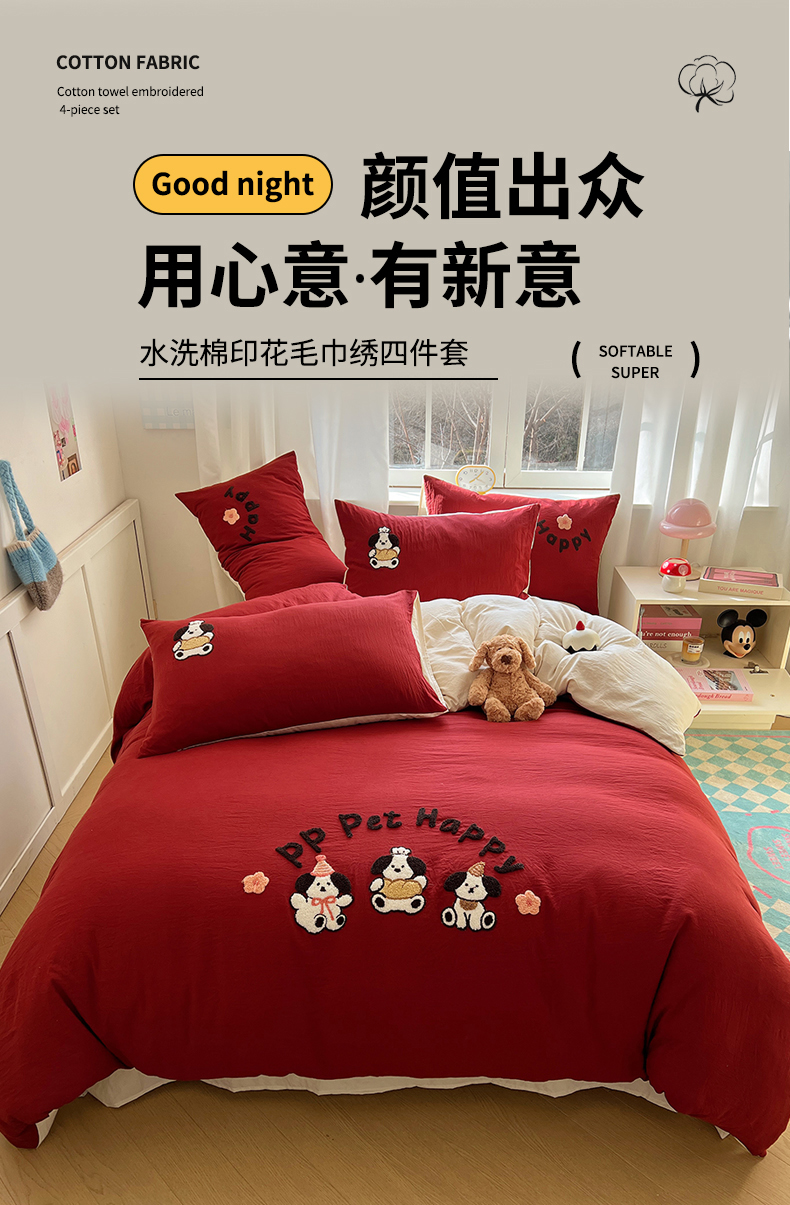 当前位置: 91家纺网 > 商品网购 > 床品套件 > 四件套 > 水洗棉四件套 > 优兰朵 2025新款A类水洗棉毛巾绣四件套-厨师安迪 厨师安迪-安可拉红