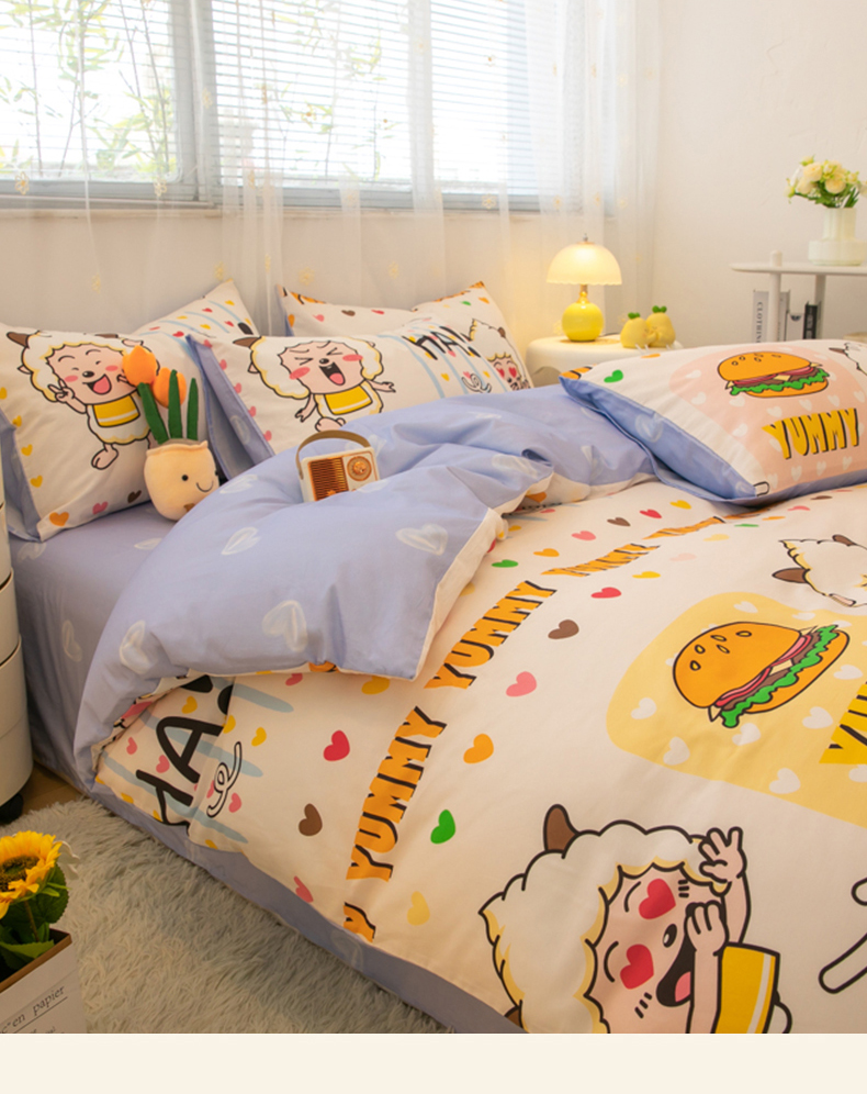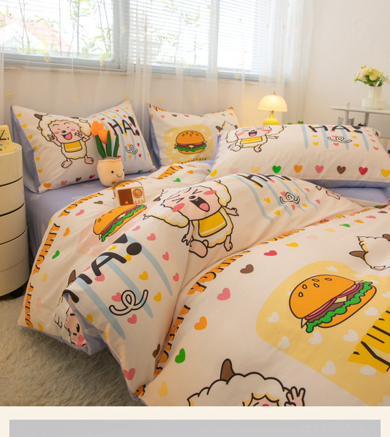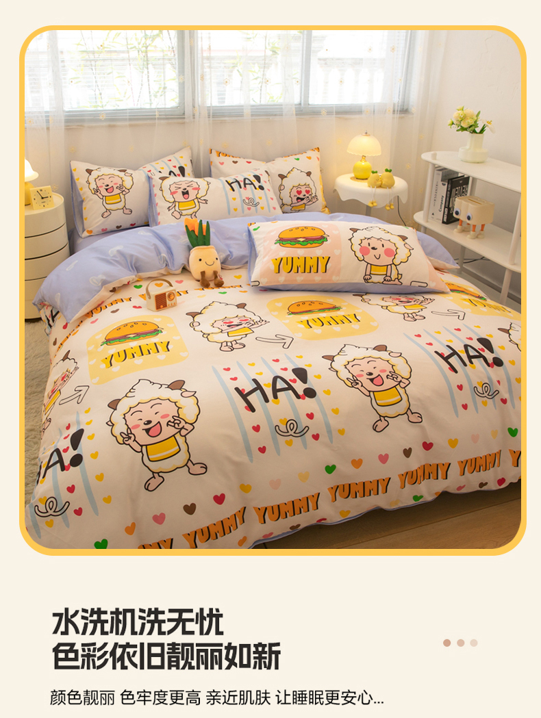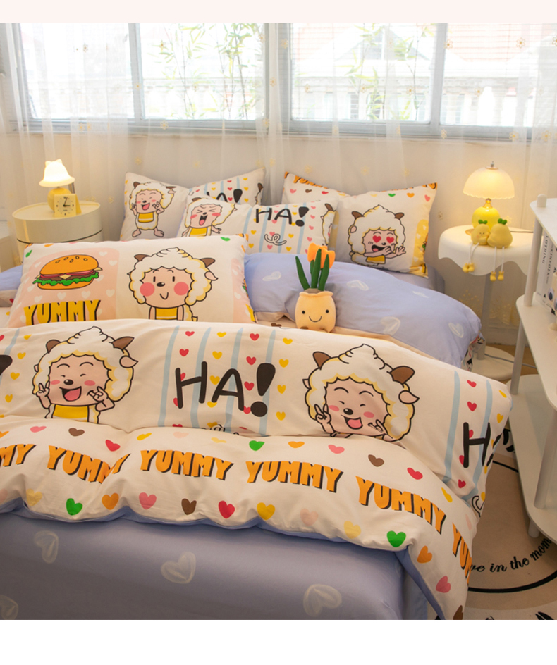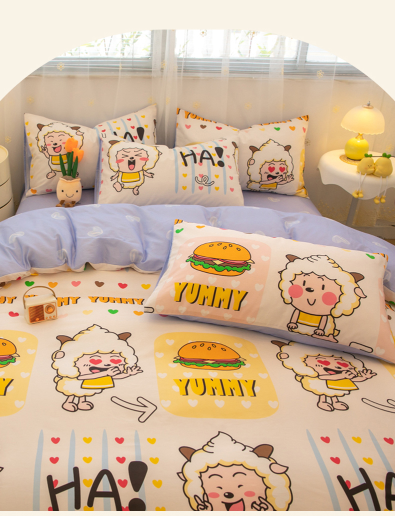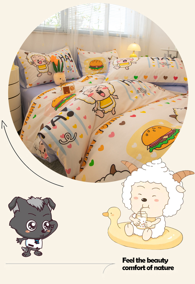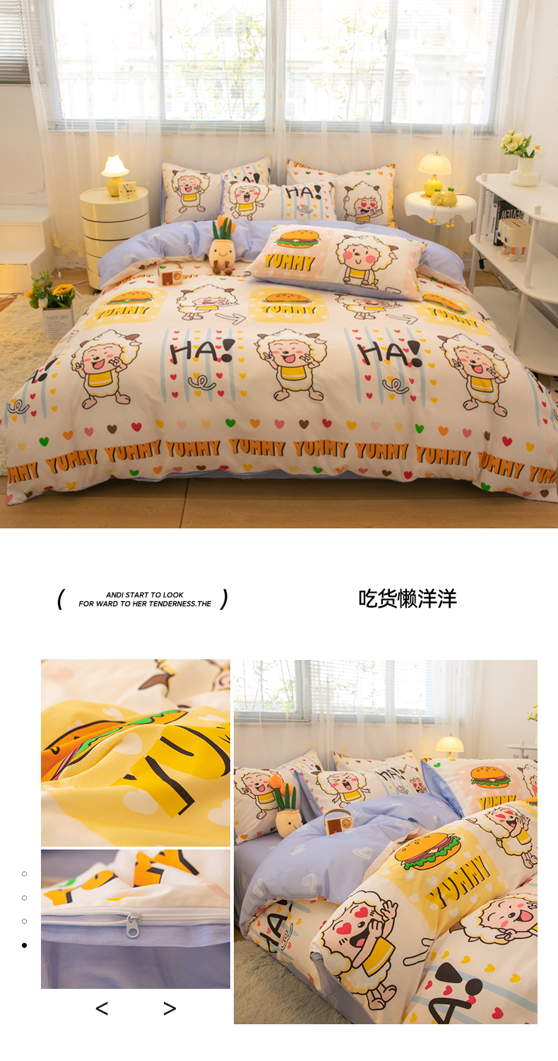 当前位置: 91家纺网 > 商品网购 > 床品套件 > 四件套 > 全棉普通四件套 > 简宜家居(朝初家纺) 2025新款40支斜纹12868纯棉全棉喜羊羊灰太狼系列四件套 吃货懒洋洋