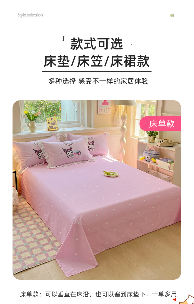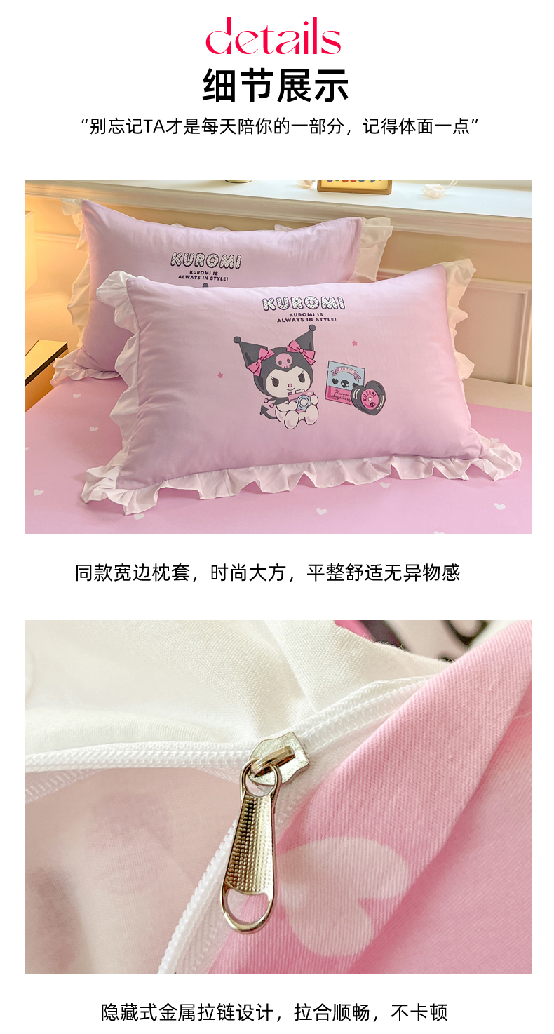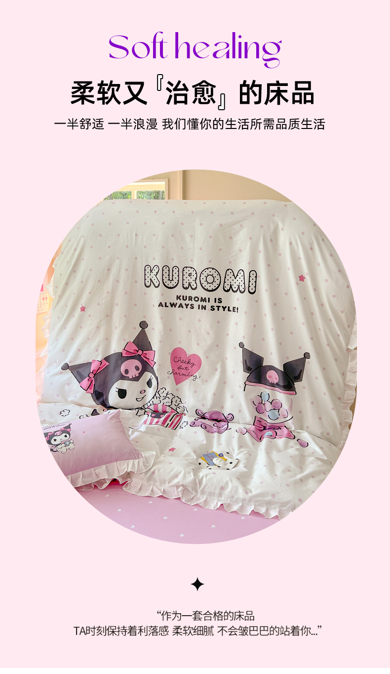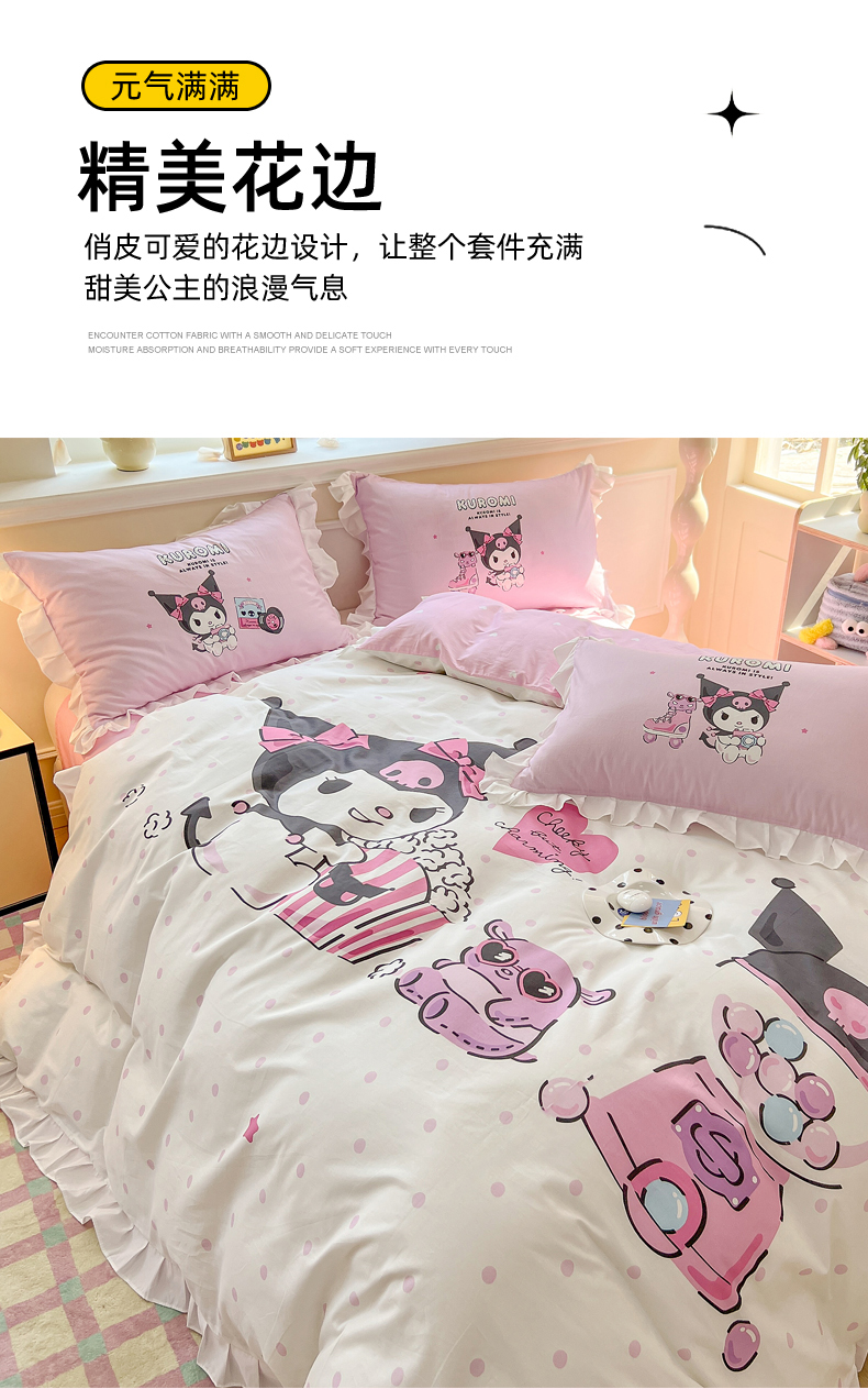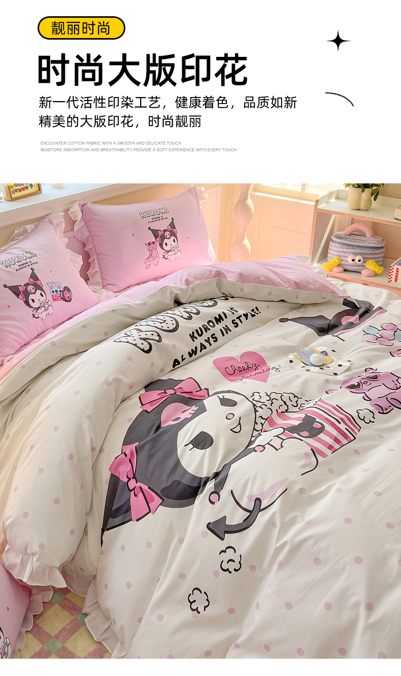 当前位置: 91家纺网 > 商品网购 > 床品套件 > 四件套 > 全棉普通四件套 > 玉元坊 2025年新款三丽鸥系列数码印花纯棉全棉床裙三件套四件套-花边款式 爆米花
