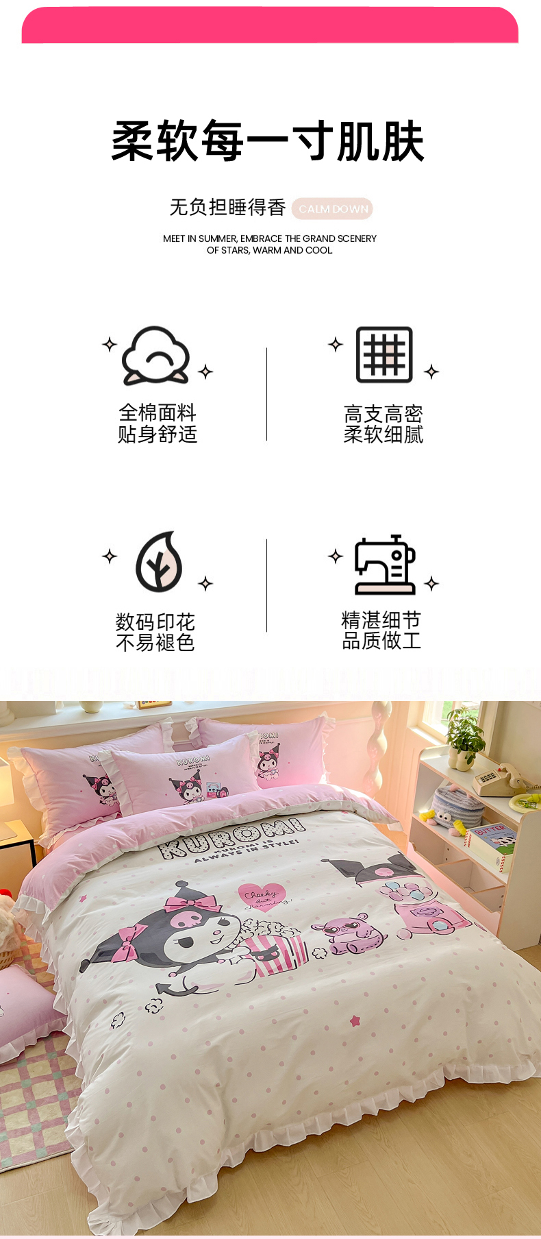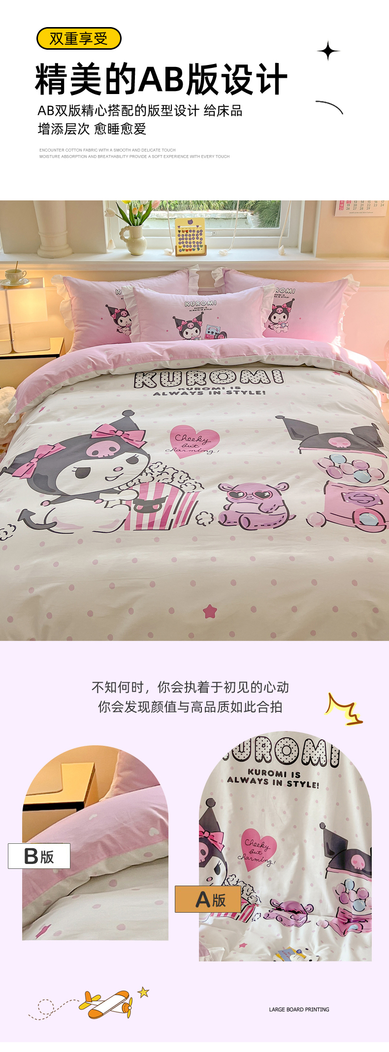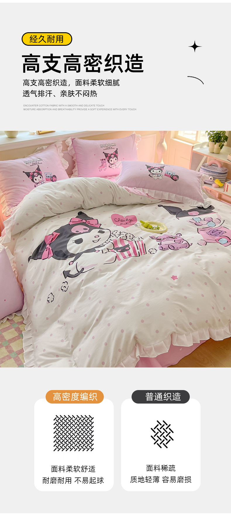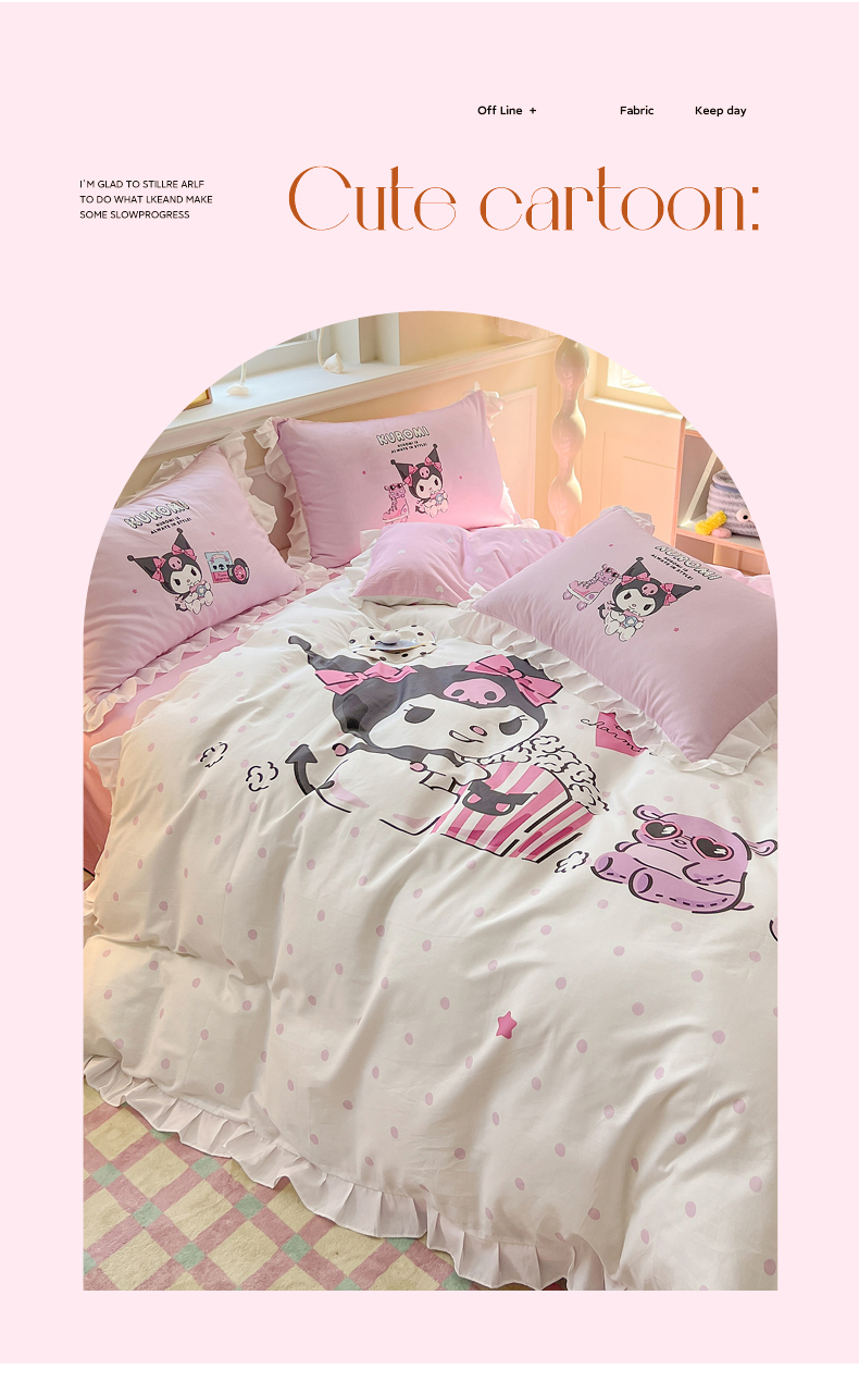 当前位置: 91家纺网 > 商品网购 > 床品套件 > 四件套 > 全棉普通四件套 > 玉元坊 2025年新款三丽鸥系列数码印花纯棉全棉床裙三件套四件套-花边款式 爆米花